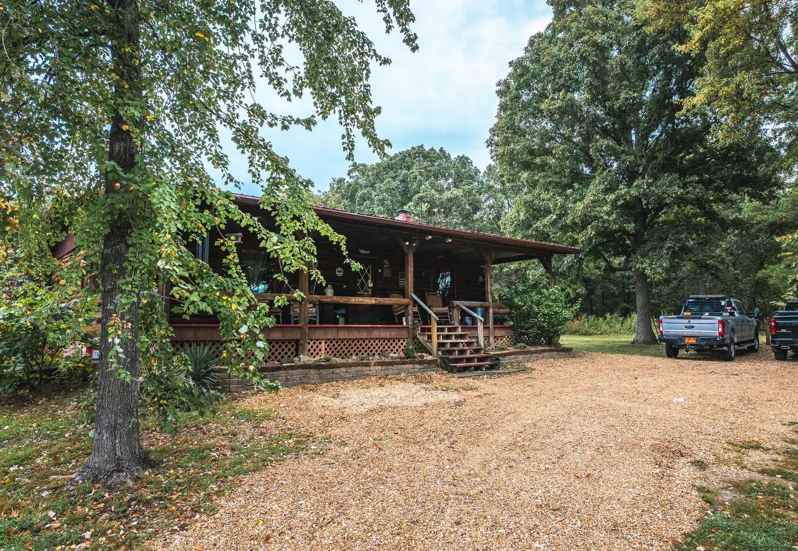 Welcome to The Cabin at Bucks Acres, a custom 3-bedroom, 2-bath, 1,680 sq. ft. retreat nestled on 13.5 park-like acres in the heart of Missouri’s floating capital. This property is a true outdoorsman’s paradise, offering both seclusion and convenience, just 10 minutes from Steelville and its famed rivers—the Courtois, Huzzah, and nearby Meramec. The centerpiece of the property is a beautiful 1-acre stocked pond, complete with a floating dock and bench for peaceful afternoons of fishing and relaxation. A second pond doubles as a prime watering hole and an excellent bow-hunting location. Wildlife abounds here, with frequent sightings of deer, turkey, squirrels, and rabbits. The cabin is built to last with a durable metal roof and a warm, rustic interior accented by wood walls. A spacious basement features a large bedroom, full bathroom, and private walkout, perfect for guests or extended family. Outdoors, a trail system winds through the acreage for hiking or ATV riding, while the 40x40 insulated pole barn with concrete floors and electricity provides ample space for storage, hobbies, or a workshop. Set privately at the end of an easement road with minimal neighbors, this property combines seclusion with accessibility. Whether you’re looking for a full-time residence, a family getaway, or a sportsman’s basecamp, The Cabin at Bucks Acres offers it all—just an hour and a half from St. Louis.