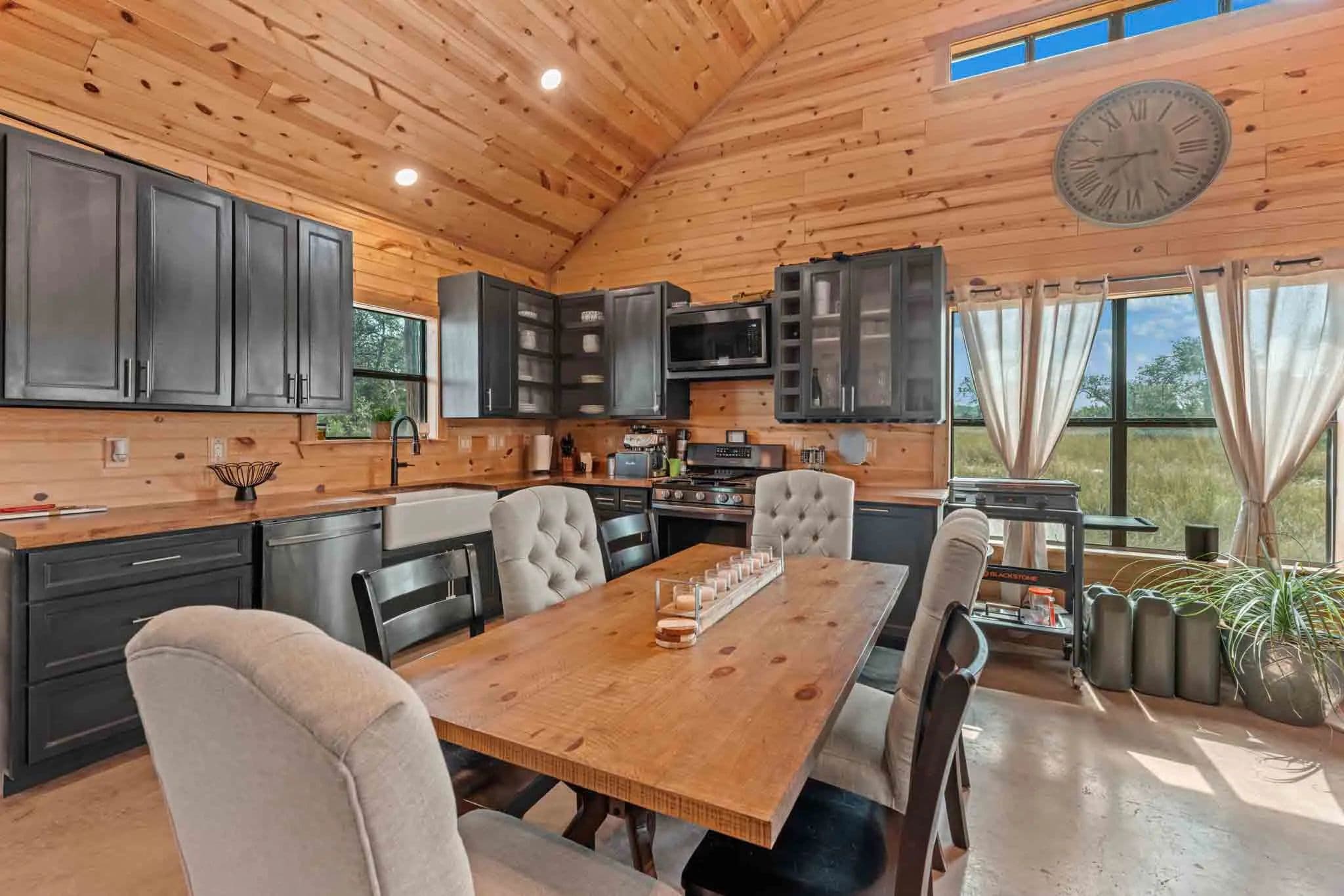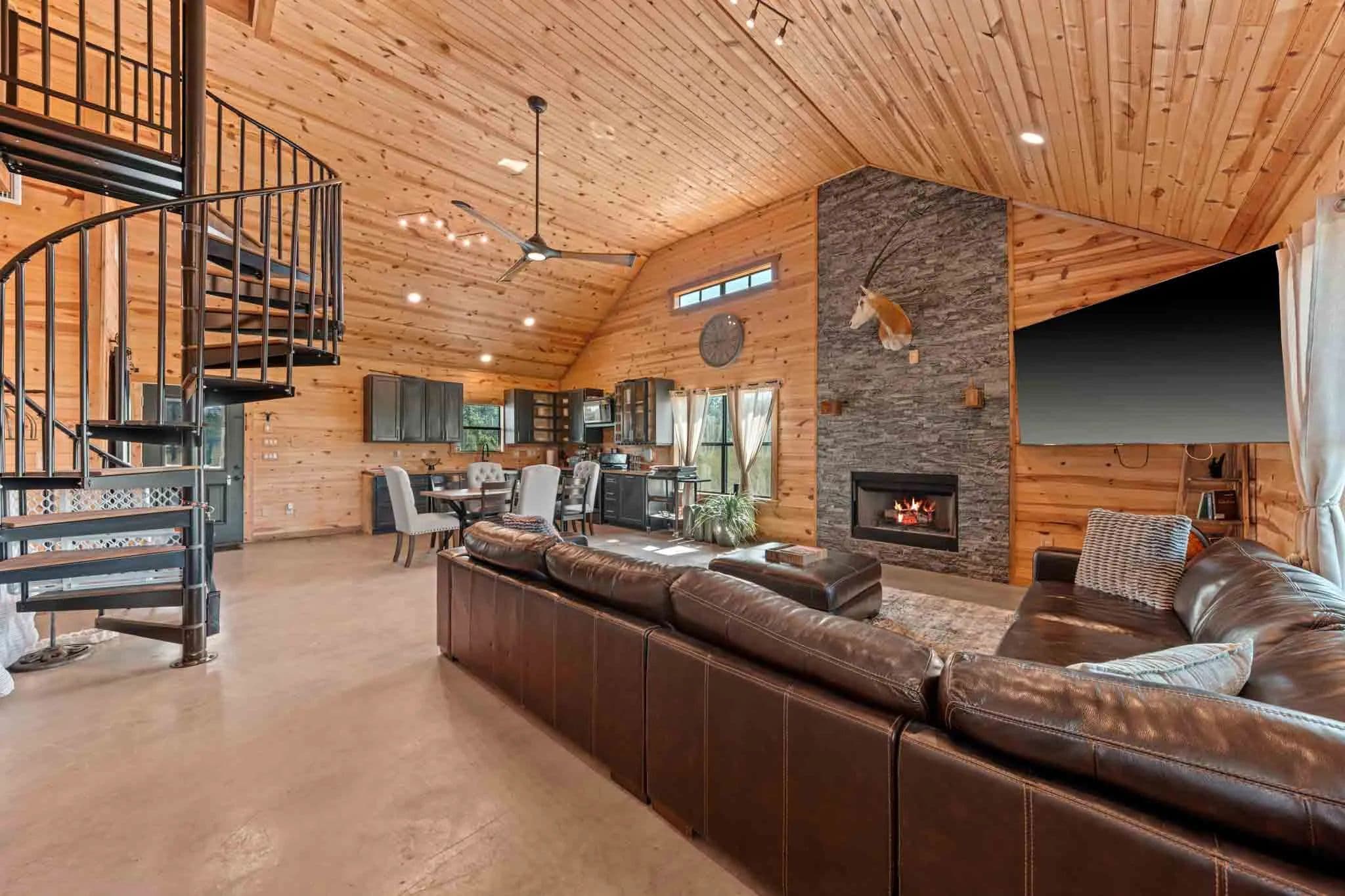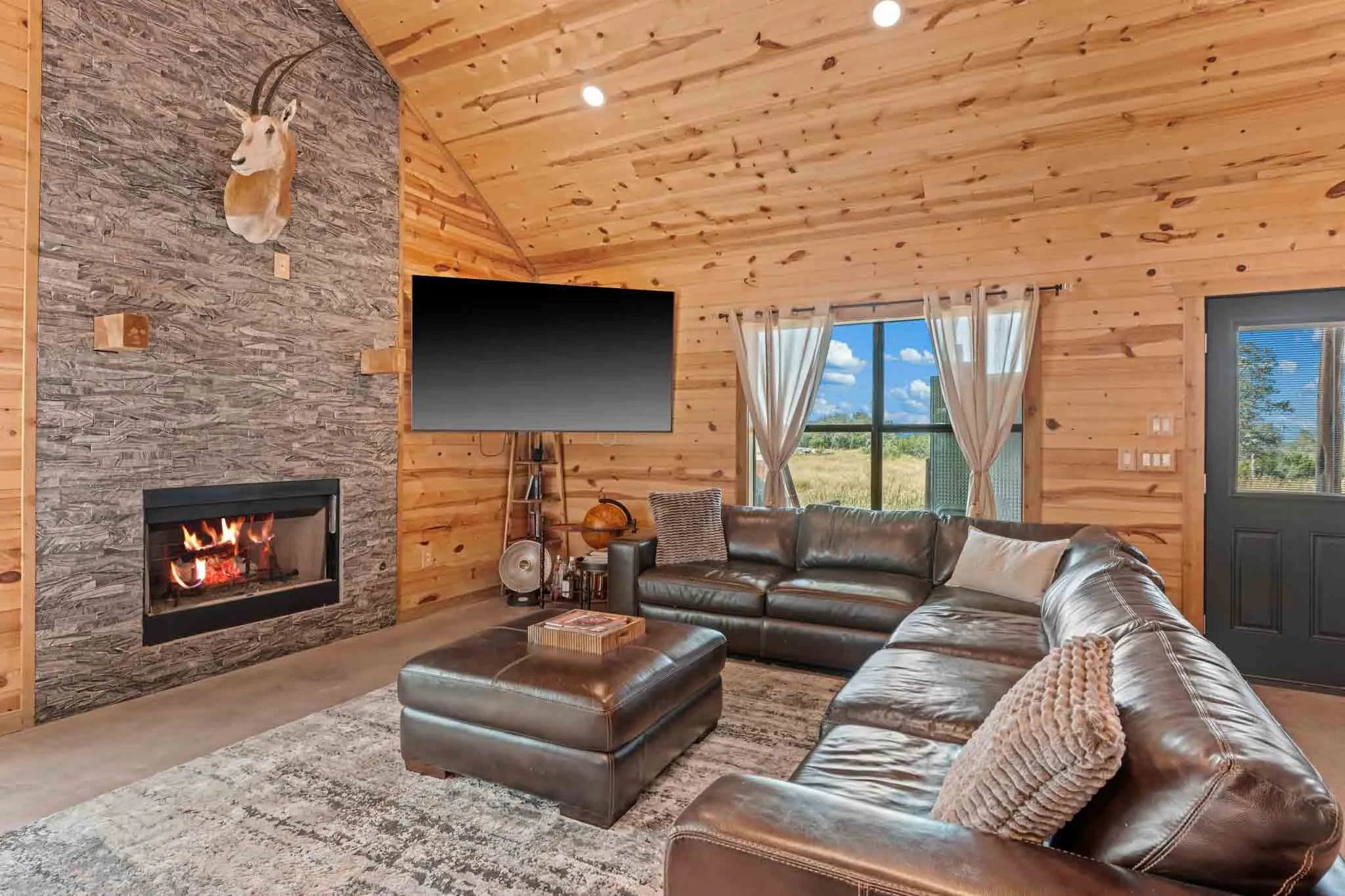 The property is enhanced by a fully appointed, furnished 1,392± sf cabin built in 2021, constructed from pine and cedar. The cabin features two bedrooms, two bathrooms, an upstairs loft, a spacious den, and a fully equipped kitchen, making it ideal for hosting family and friends.