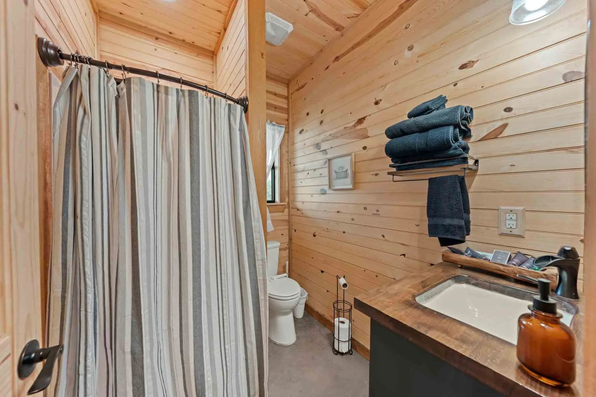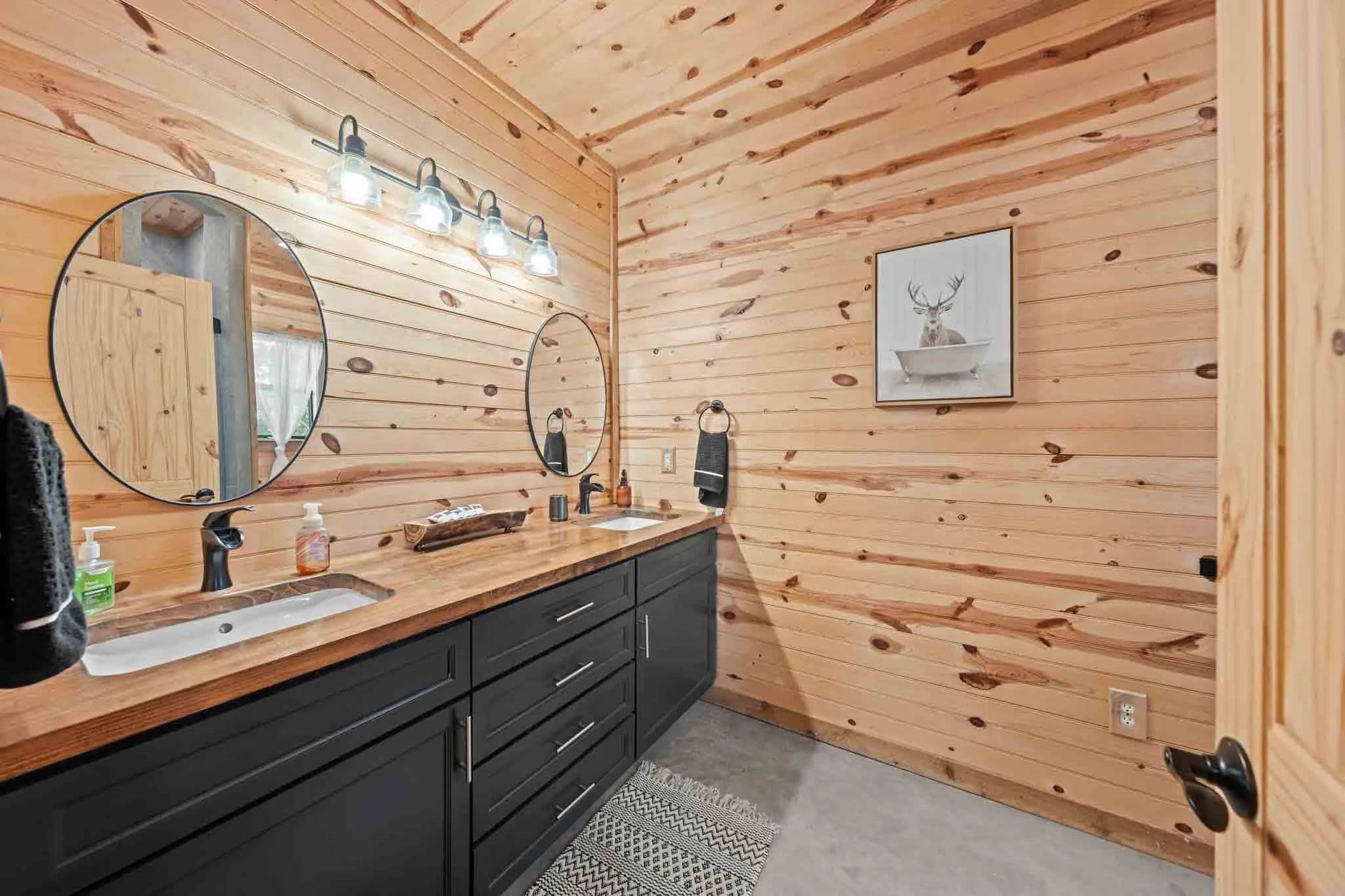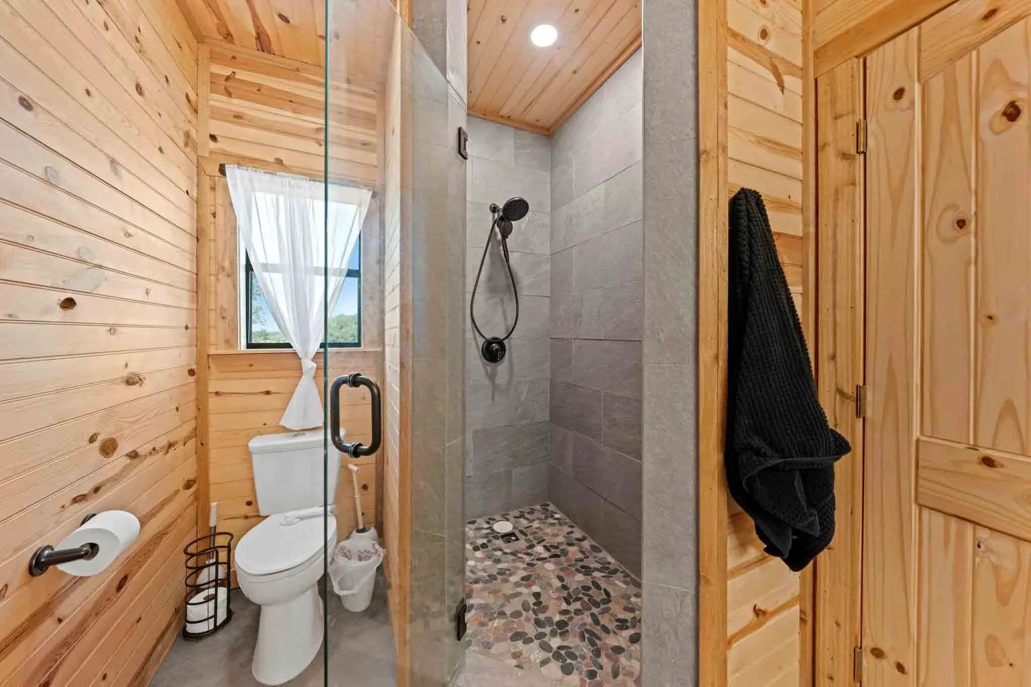 The property is enhanced by a fully appointed, furnished 1,392± sf cabin built in 2021, constructed from pine and cedar. The cabin features two bedrooms, two bathrooms, an upstairs loft, a spacious den, and a fully equipped kitchen, making it ideal for hosting family and friends.