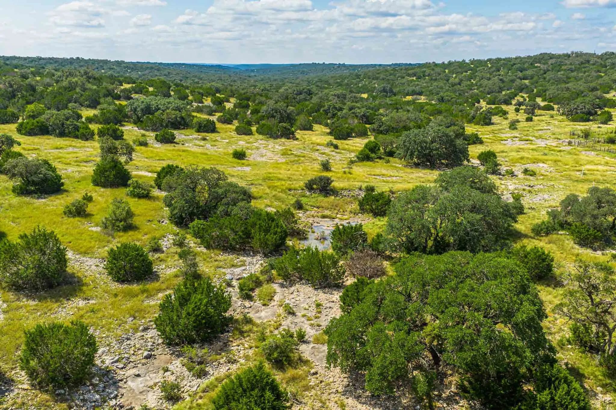 The ranch features a balanced mix of live oak, shin oak, and cedar, with the added character of pinyon pine—rare for this part of the Hill Country. The dry East Prong of the Nueces River bisects the property, creating an appealing mix of ridges, draws, and rolling terrain. Excellent tree cover provides ideal habitat for wildlife, and the elevation changes deliver long-range views from multiple vantage points.