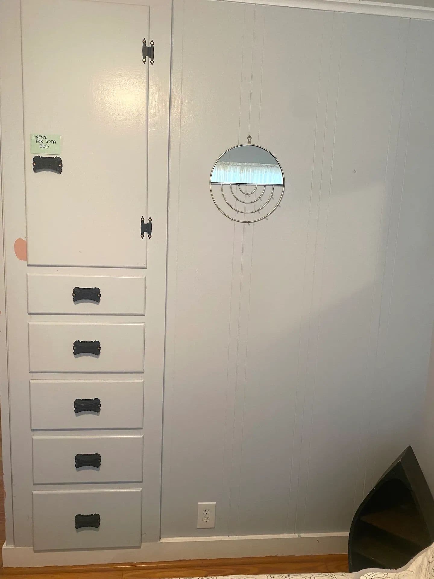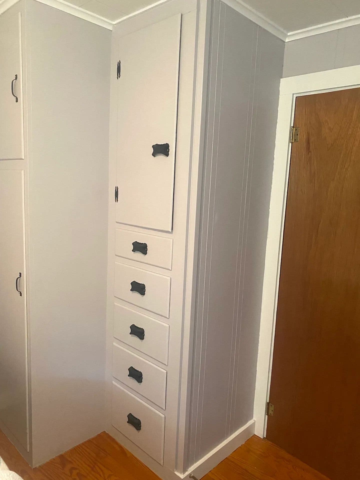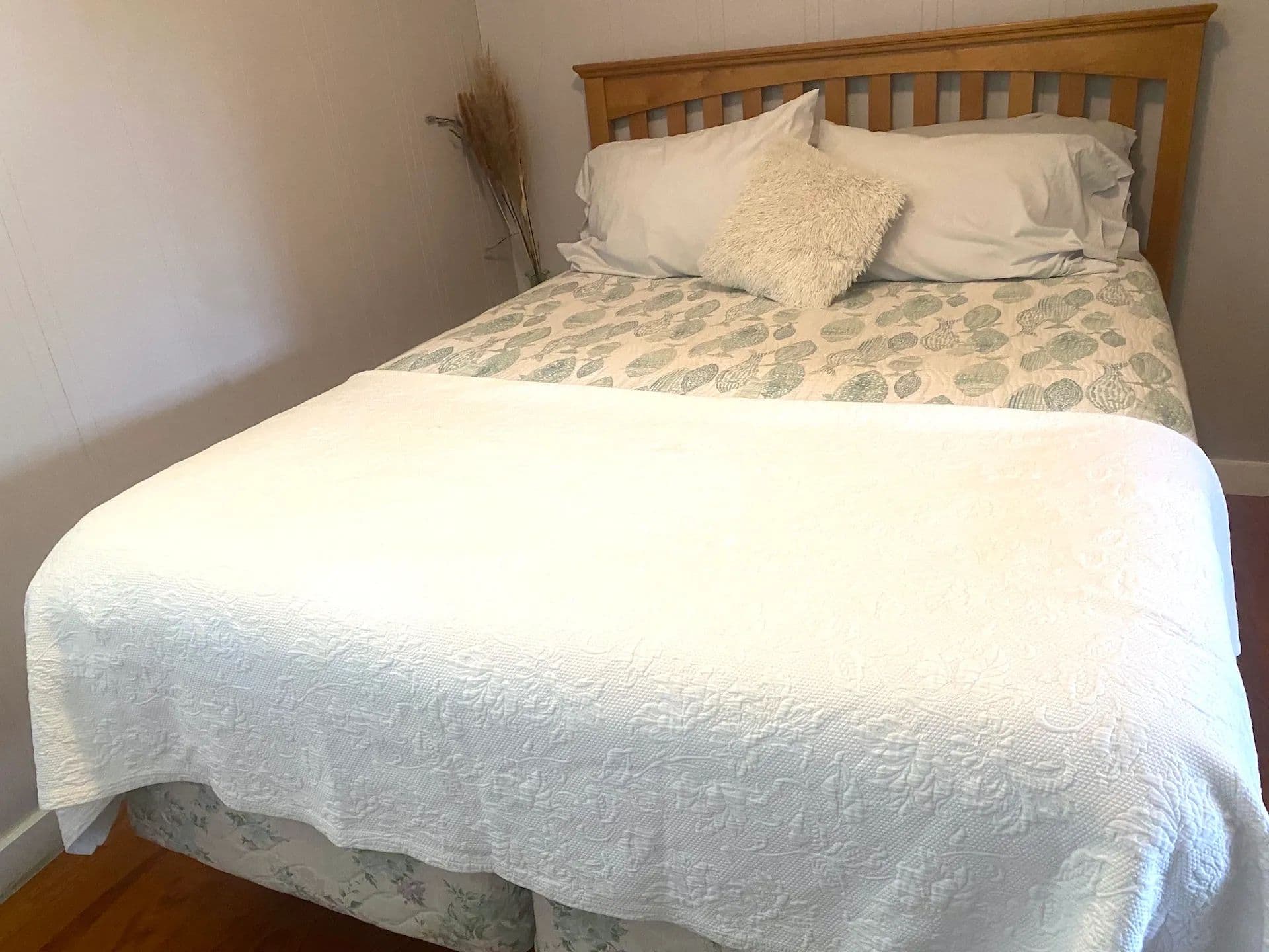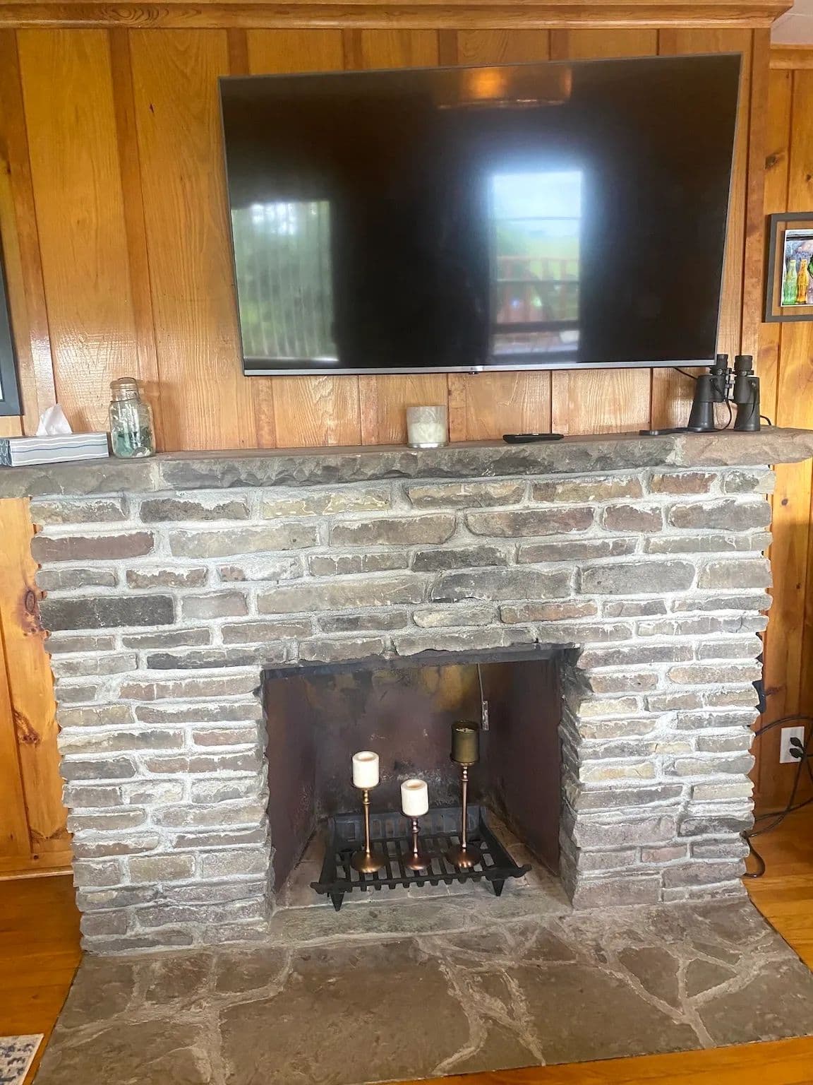 Inside, you’ll find stunning hardwood floors throughout and cozy knotty pine walls giving the cottage a warm and inviting feel. The spacious living area is anchored by a beautiful stone-laid fireplace ideal for keeping the cottage toasty on cooler days, while a new mini-split system provides extra heat and air conditioning year-round. Large windows allow abundant natural light to stream through. The kitchen offers plenty of countertop space, a breakfast bar, and new vinyl laminate floors. Three sizable bedrooms, some with built-in dressers, provide ample space for family and guests. The home also includes one full bathroom. The home has been freshly painted throughout making it truly move-in ready.