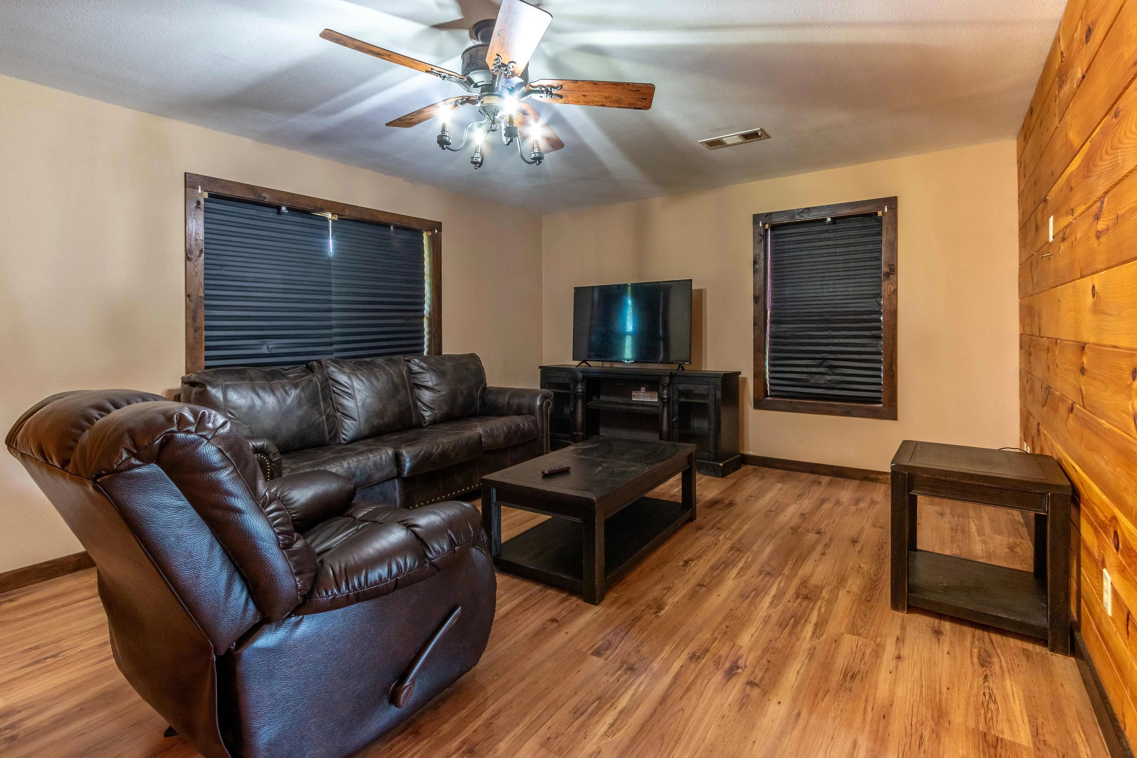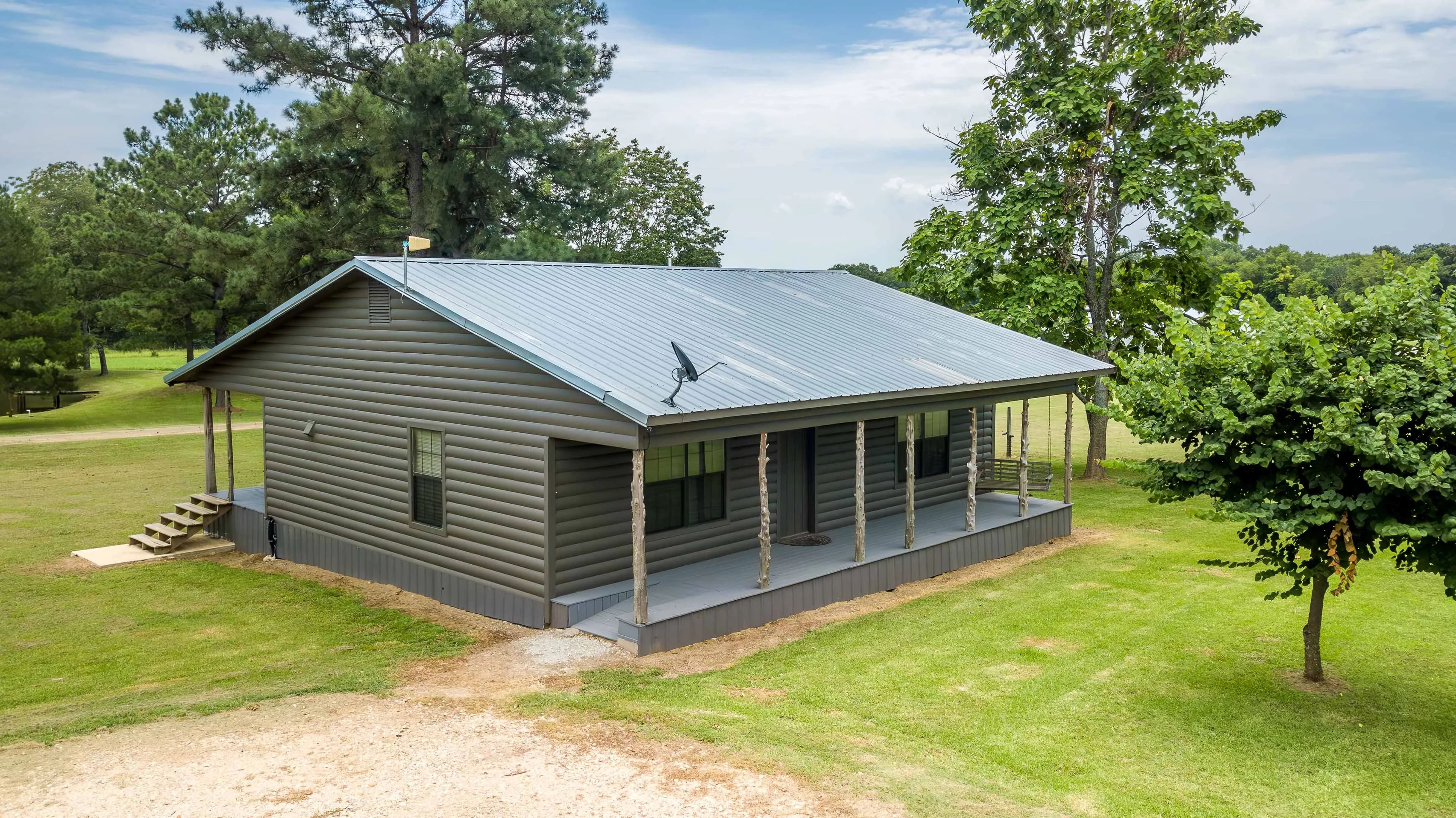 1,250± sq. ft. log cabin with two bedrooms, a full kitchen, and office space—perfect for a peaceful residence or on-site manager housing.