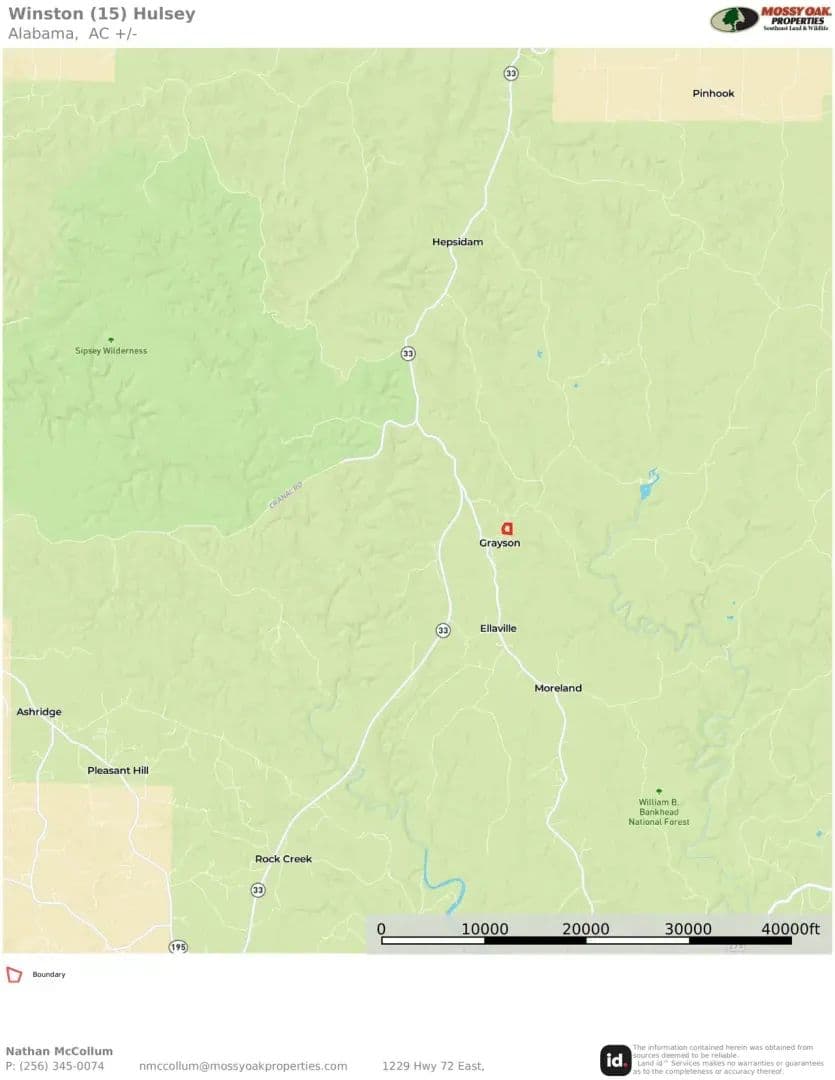 Located approximately 20 minutes from Moulton, 20 minutes from Double Springs, and just over an hour from Huntsville.
