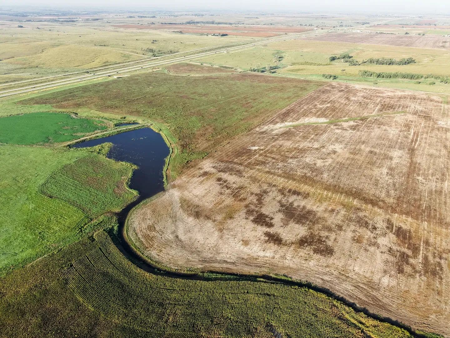 Convenient location, nearby utilities and a scenic 4 acre pond makes this an ideal building site. There is a water well and electricity already on site. Post Rock Rural Water District #4 water line runs through the land and fiber optic cable runs along 195th Street. Build closer to the outbuildings or near the pond. There are several outbuildings including a sizable red barn. A pipe corral is located just west of the barn and would work great for horses or small number of livestock. The driveway leading into the property is located less than 500 feet from Highway 40 and 2 miles from the on ramp of Interstate 70.