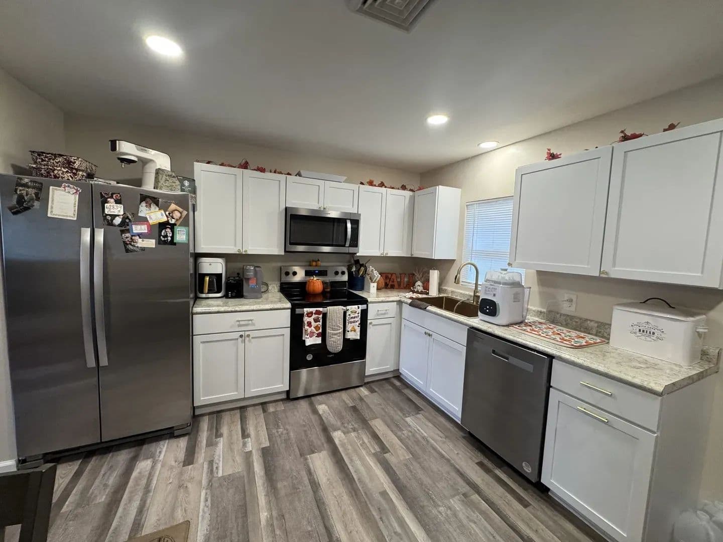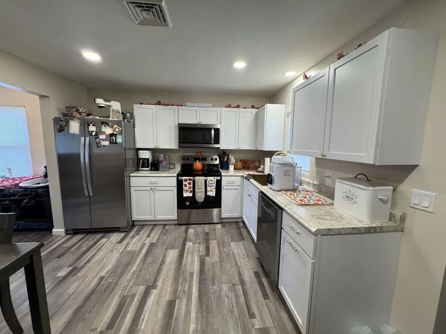 The exterior shines with a new roof, siding, soffit, house wrap, windows, a welcoming front porch, and a freshly painted back porch. Step inside to find all-new electrical, plumbing, HVAC, water heater, insulation, drywall, paint, lighting, flooring, bathrooms, and a stunning kitchen featuring brand-new cabinets, modern finishes, and a complete 2024 appliance package.