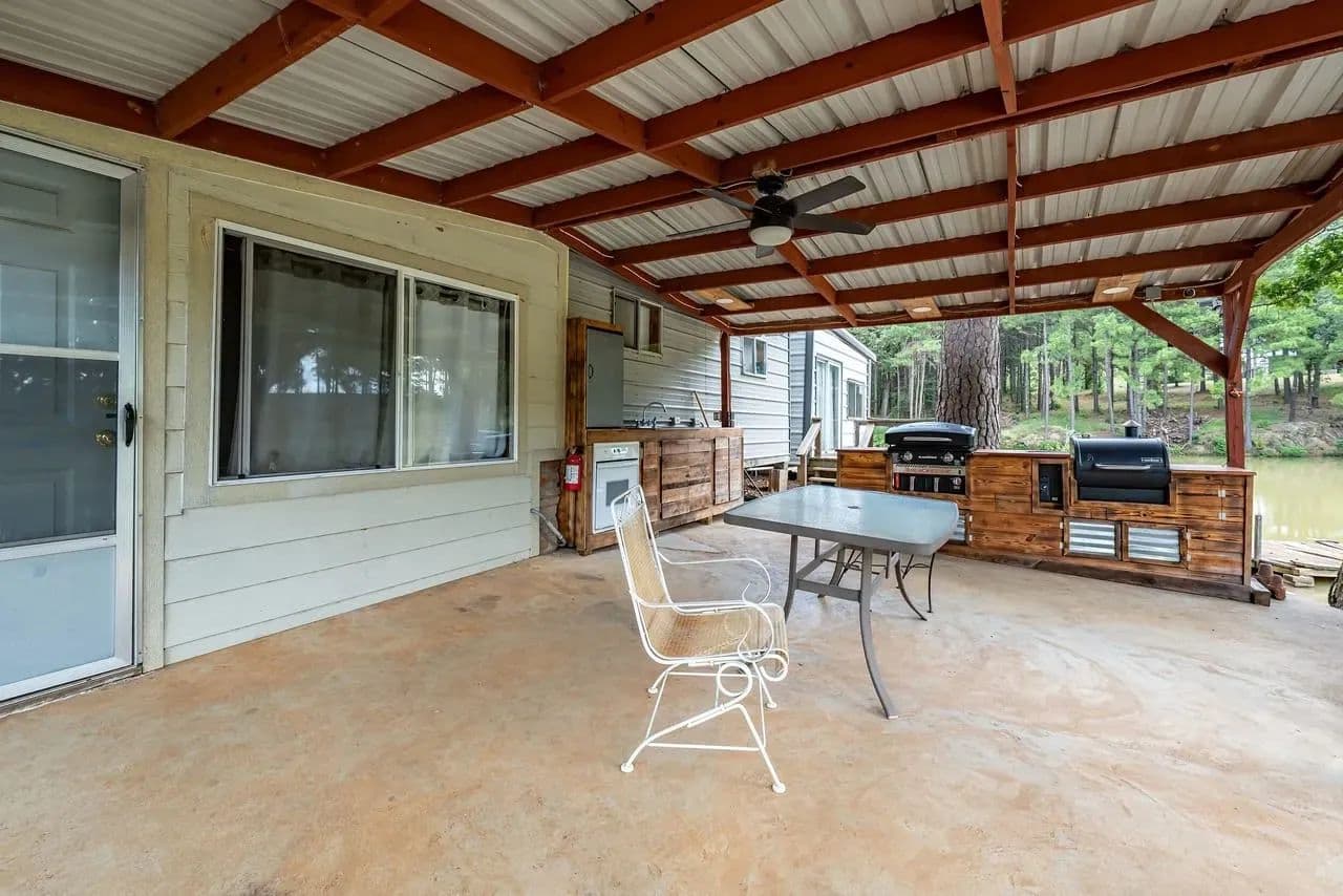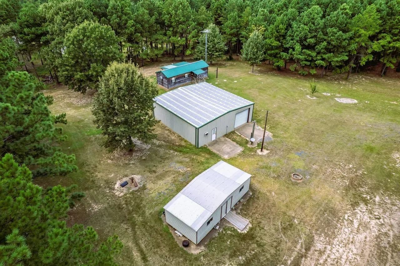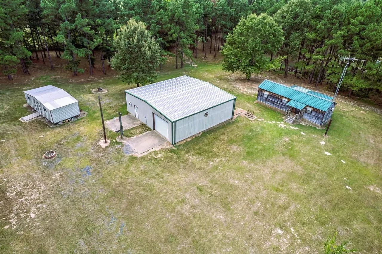 Wonderful Stay-Cation family compound or income producing AirBnb on 12.54 scenic acres with FOUR cabins, huge shop, overlooking large pond in Jacksonville, Tx. Ready-to-go with most furnishings to convey, with mini-splits and/or window AC, fishing, ATV trails, gun range, deer feeders, possible zipline, and outdoor kitchen and grills overlooking the pond with concrete spillway. All cabins are 1 BR, 1 Bath. (602 SF, 448 SF, 504 SF, & 364 SF). Two entrances to property with main entry having rustic cabin with covered back deck overlooking the pond and cabins by the pond as well as 30x50 shop with apt and washer/dryer. Shop with concrete floor, insulated, with electric and equipment is available for optional purchase for interested buyers. Second entry is closest to highway and before creek and goes down a scenic path to the two cabins by pond with covered deck and outdoor kitchen and grills. ATV trails run throughout property, on both sides of pond. Call today before this rustic retreat is gone!