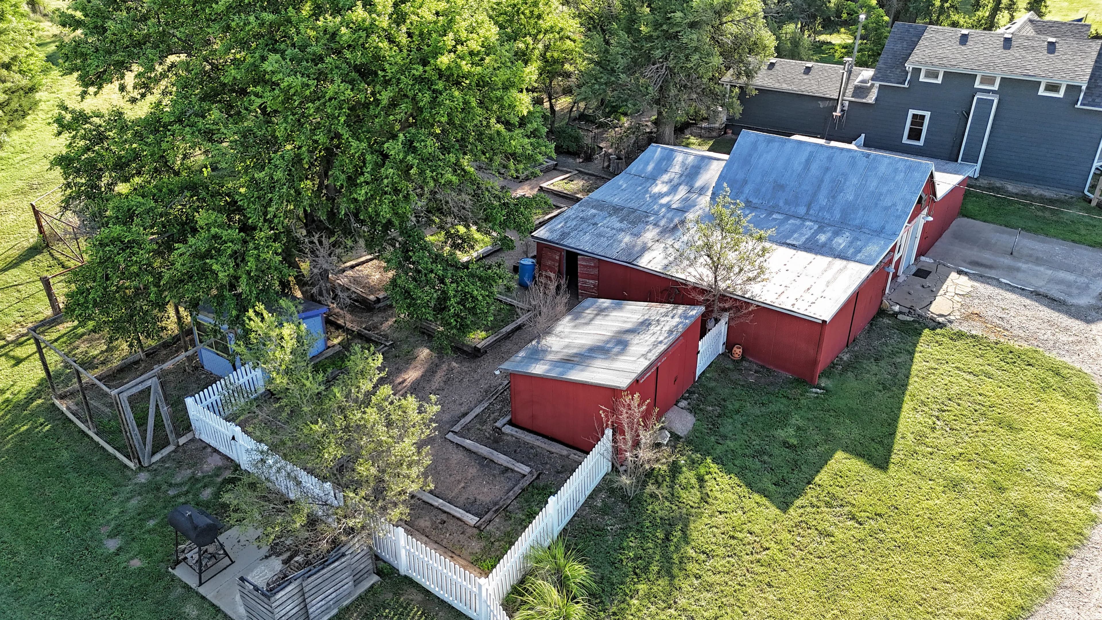 The fenced garden area with raised beds and a charming chicken coop invites your green thumb and love for farm-fresh living.