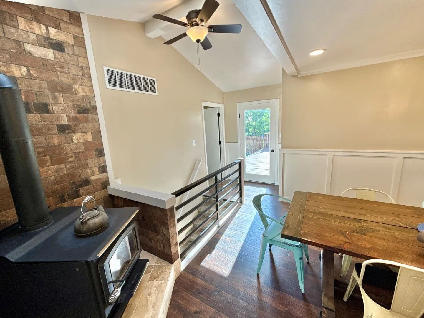 On those cold winter nights you can light up the woodburning stove. Step outside to a large porch perfect for soaking in breathtaking sunrises.