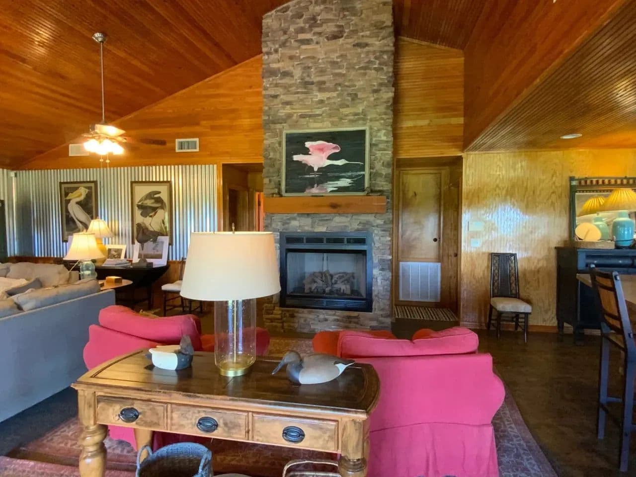 The Catahoula Lake Lodge is an elevated cabin style lodge with two bedrooms and two full bathrooms. The open area great room and kitchen provide family and guests with ample room to relax and enjoy the beautiful views of Catahoula Lake and the abundant waterfowl that utilize this rich environment, particularly in winter during the waterfowl migration, but also year round flights of neotropical migratory birds like Tanager’s, Warblers, Buntings, and more.