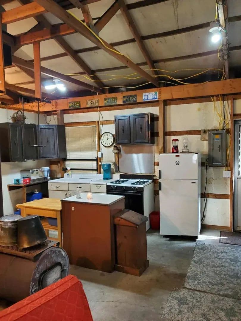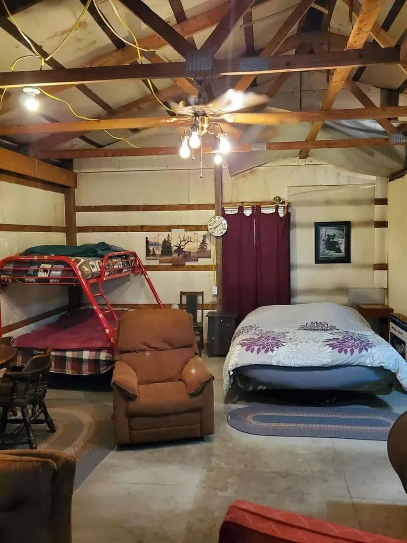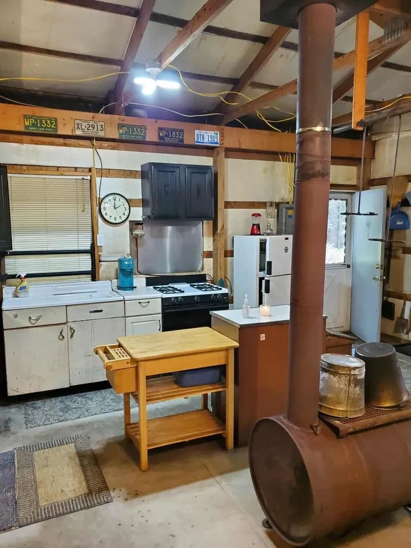 Comfortable Setup: Kitchen, bunks for sleeping, bathroom with septic system