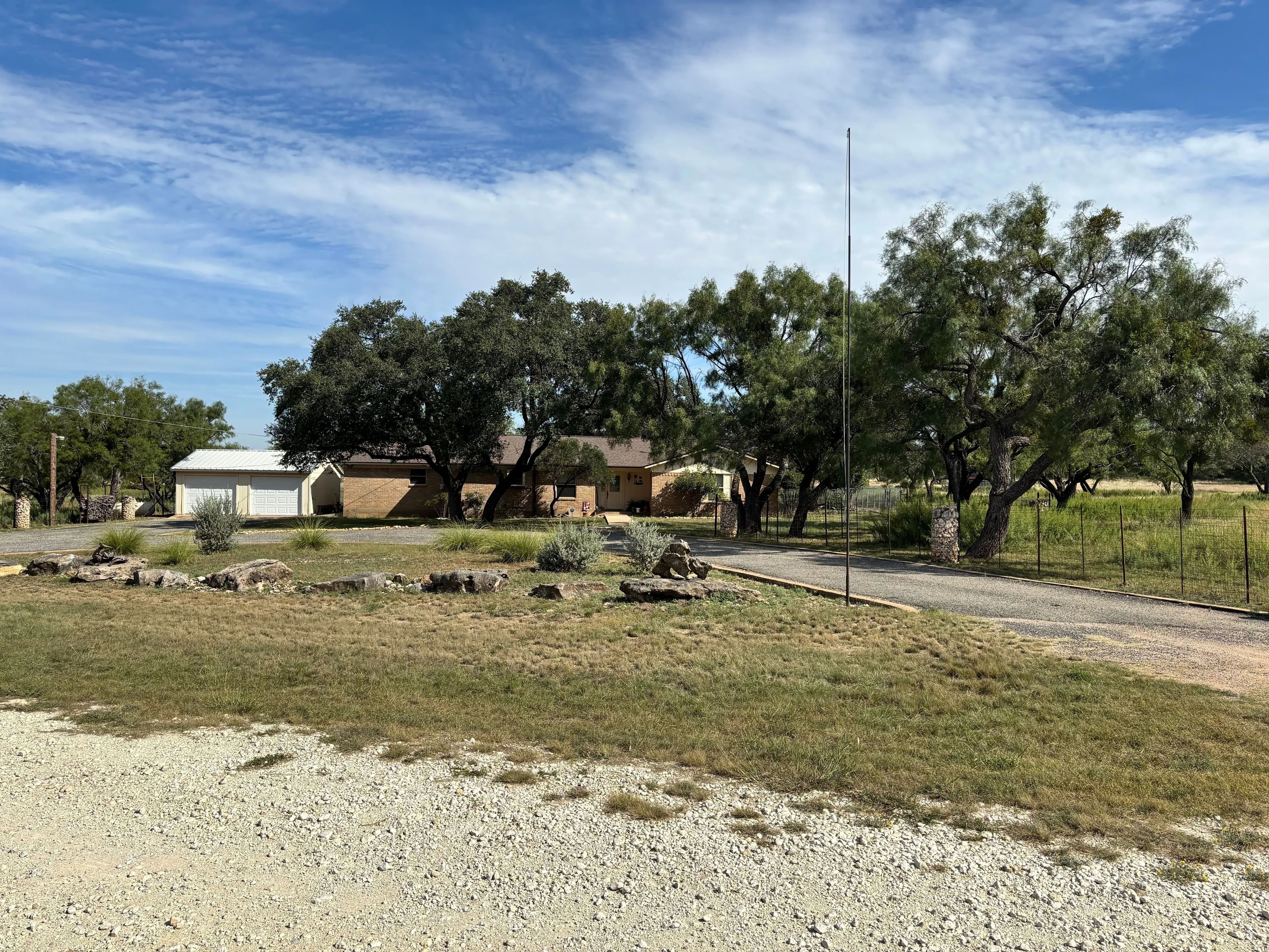 WOW: 23+ beautiful live oak acres just outside of Brady. It has a 3/2 home with a wood burning stove, a 2-car storage space and a 2-car detached garage. A large patio provides an entertainment area. Just right for country living with space for wildlife and livestock. $450,000