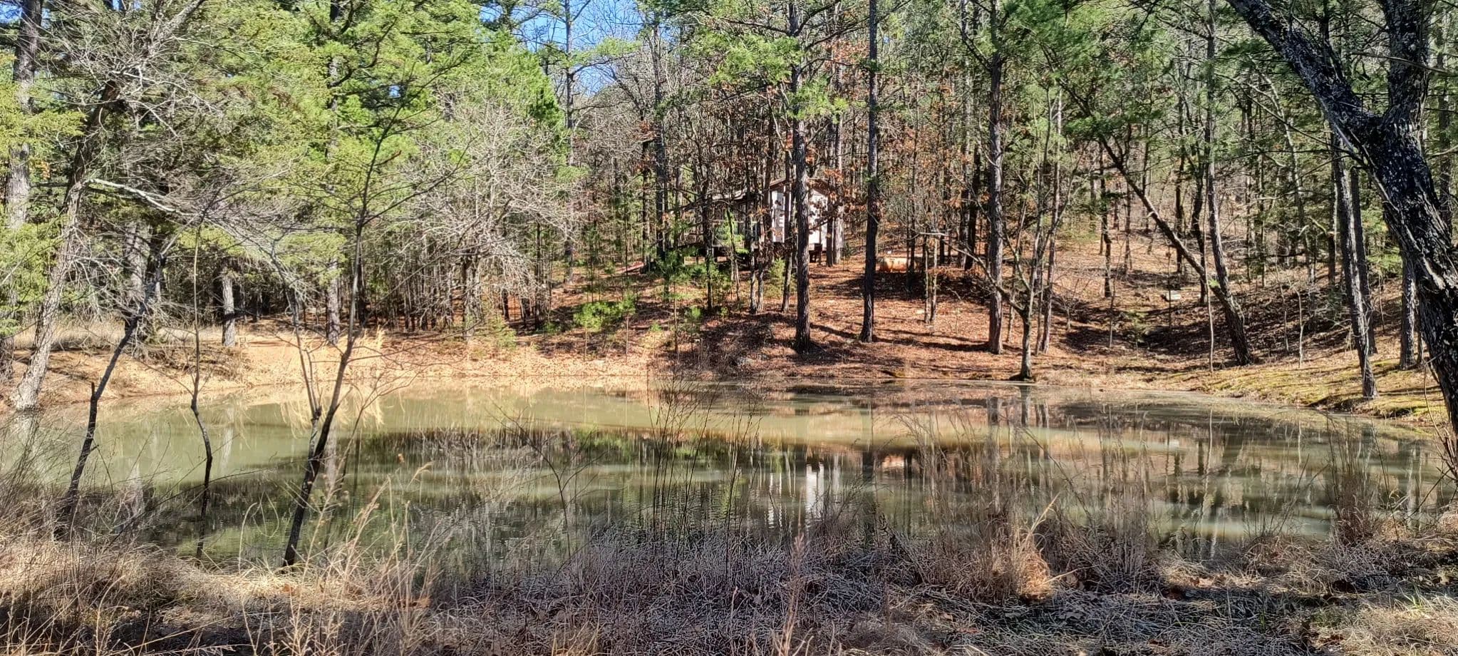 Escape to your own private retreat at 27546 E Reservation Rd (also known as 5121 Bittle Lane) in Daisy, Oklahoma. This beautiful property offers 40 acres of mostly timber featuring a mix of pine, oak, and cedar, plus about 2± acres of cleared, landscaped grounds with crepe myrtles and peach trees surrounding the homesite. A spring-fed pond adds natural beauty and utility.