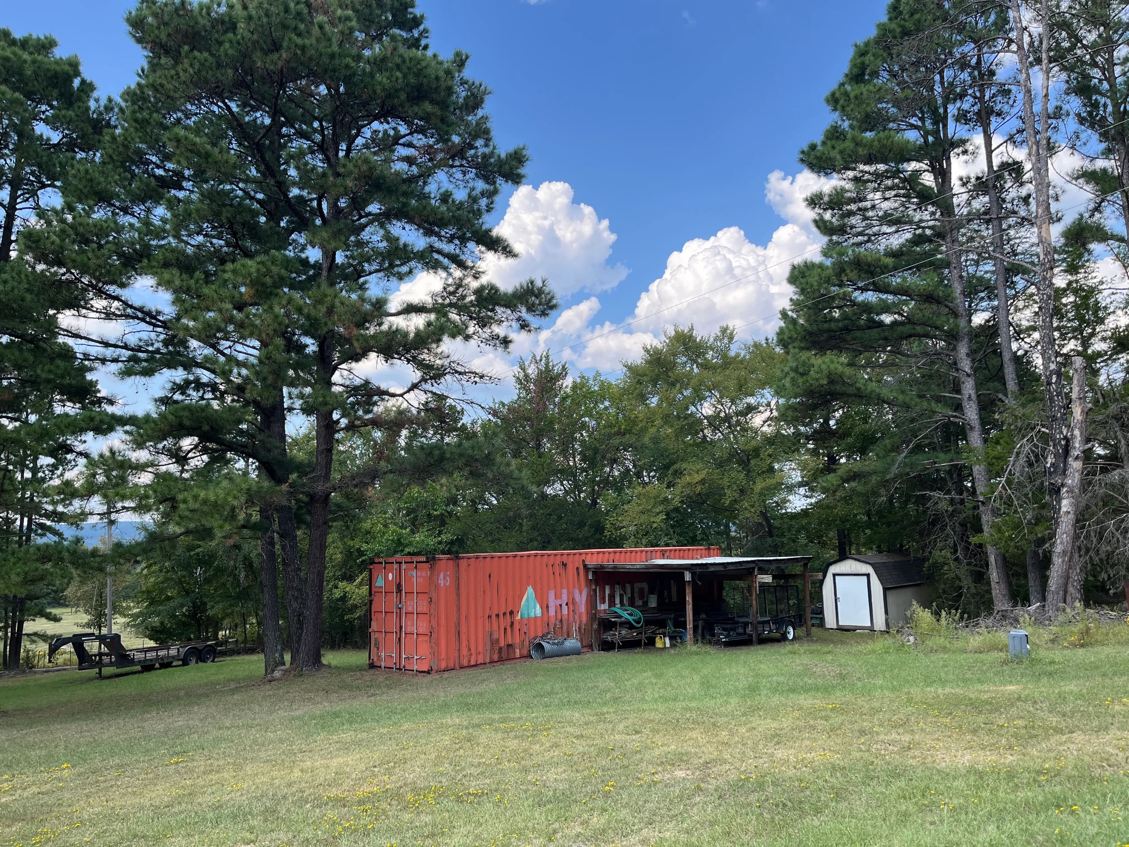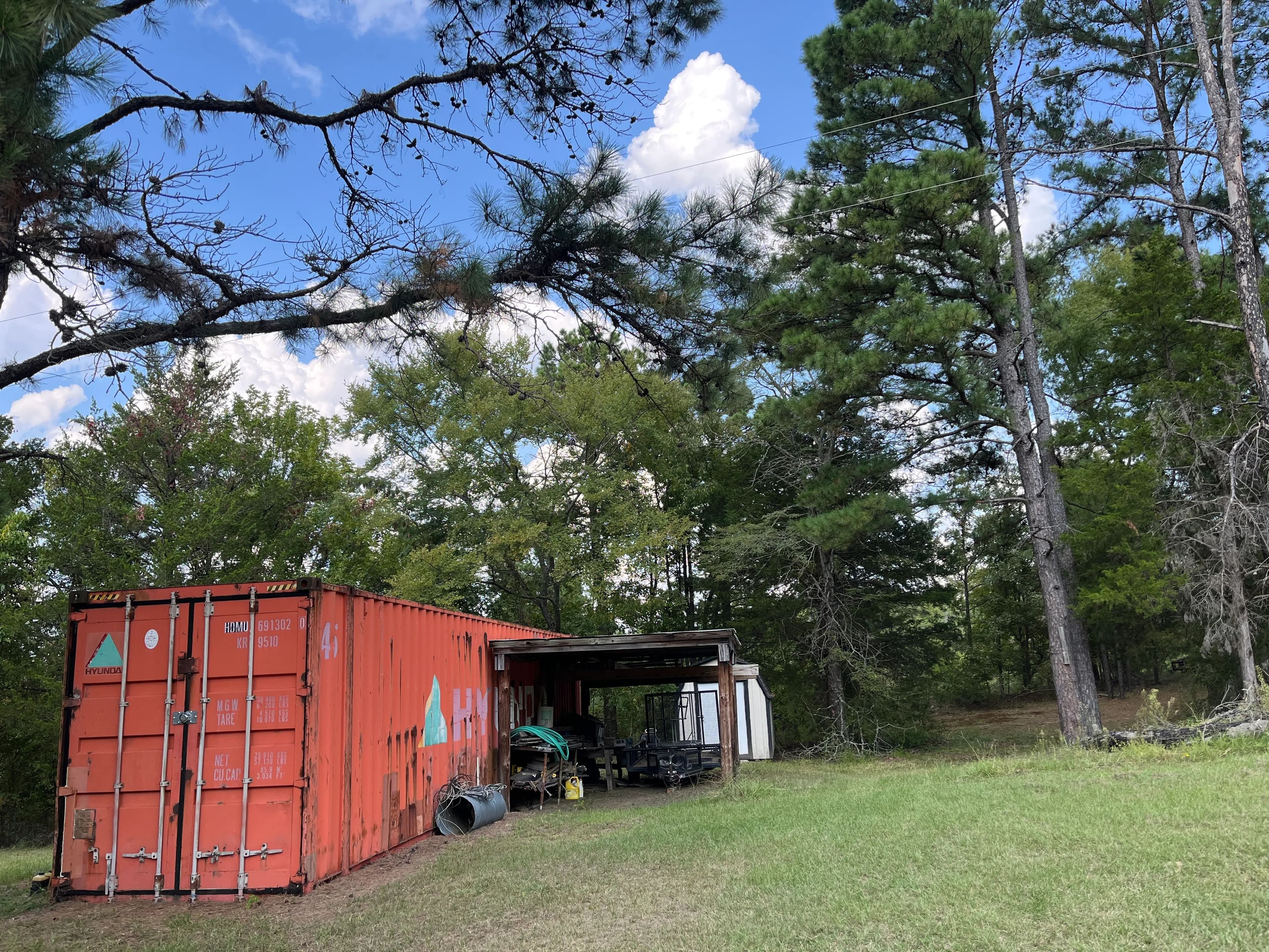 53 ft. storage container with open lean-to and electricity