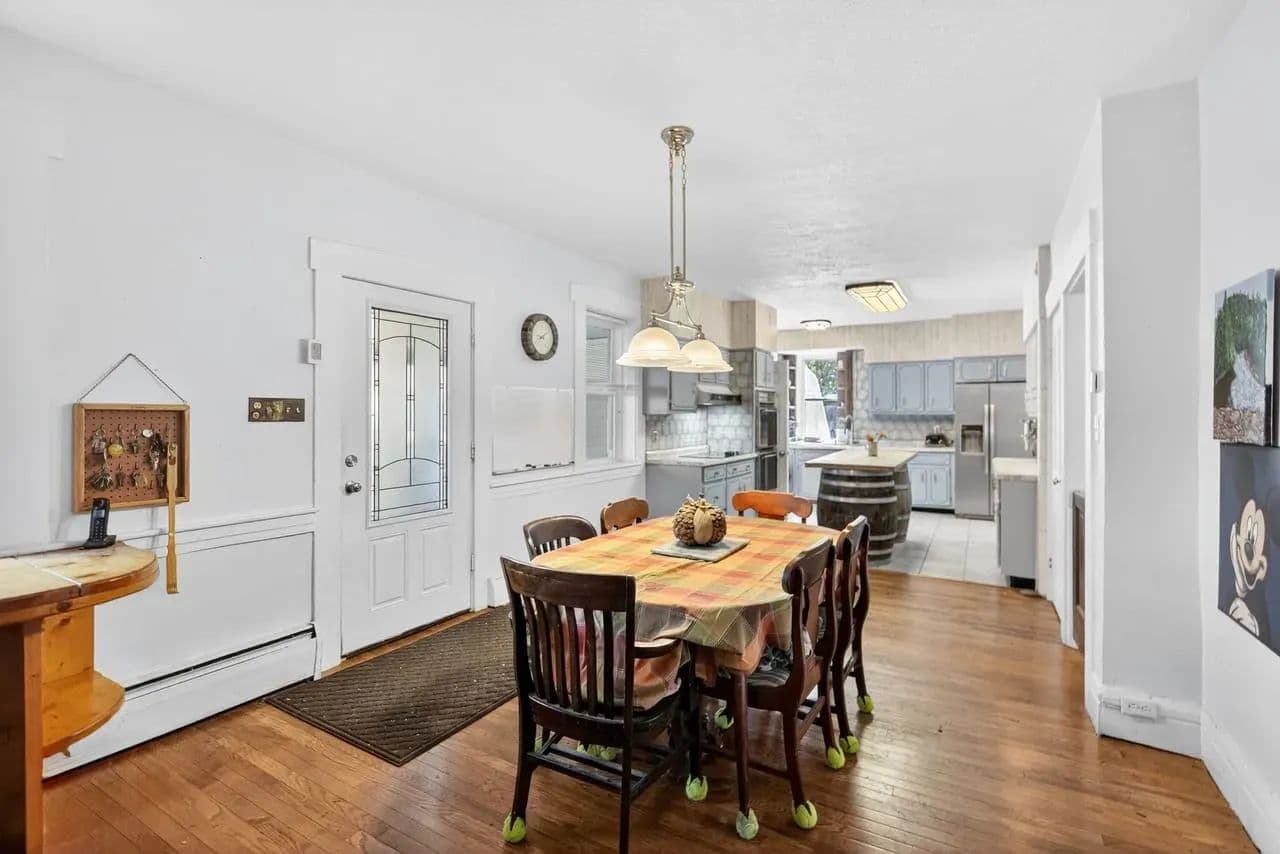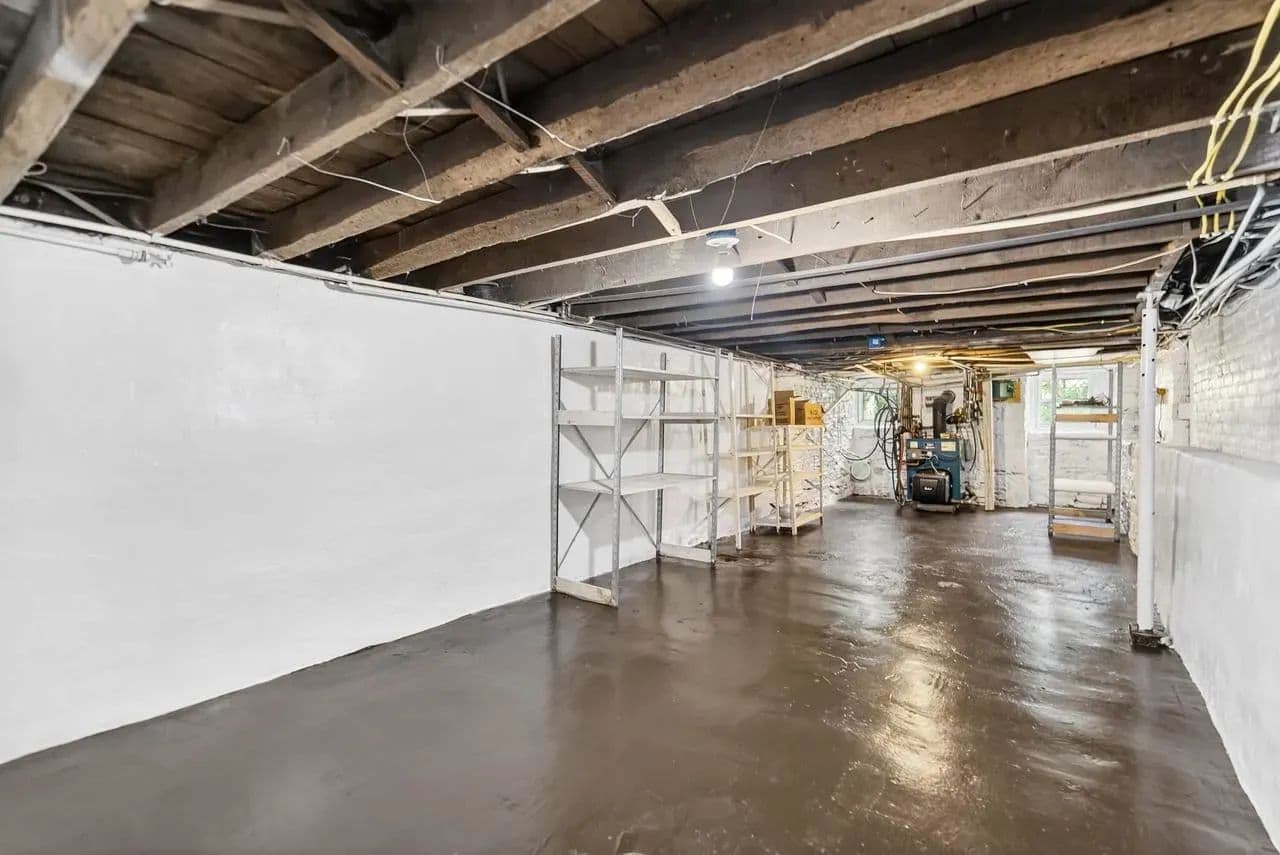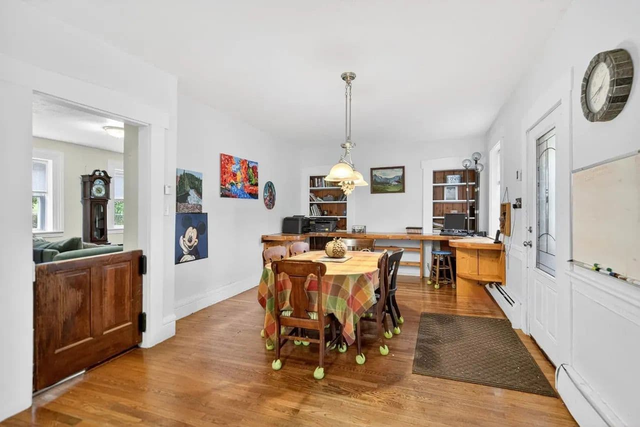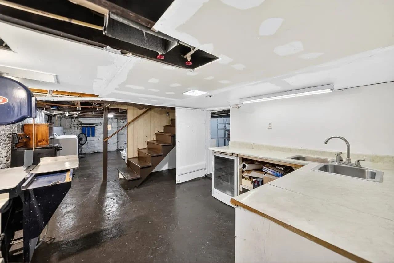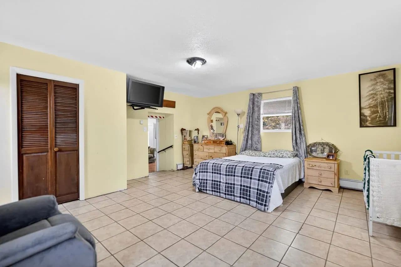 Upstairs, there are four additional bedrooms plus an insulated, unfinished attic for storage. The basement offers a kitchenette for canning, winemaking, or extra prep space. Utilities include hot water, oil-fired heat with dual 275-gallon tanks, washer/dryer, and a whole-house three-stage Big Blue water filtration system.
