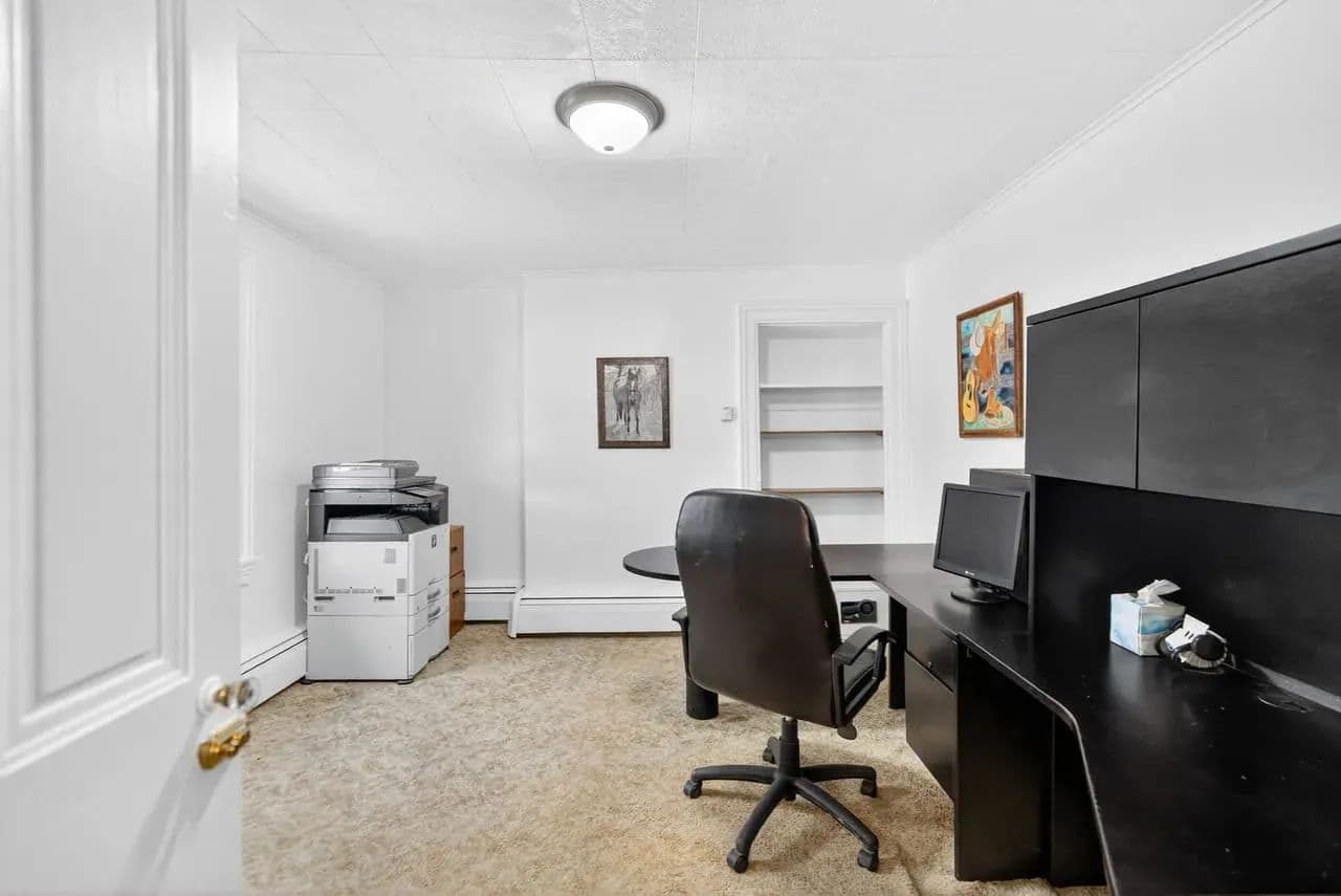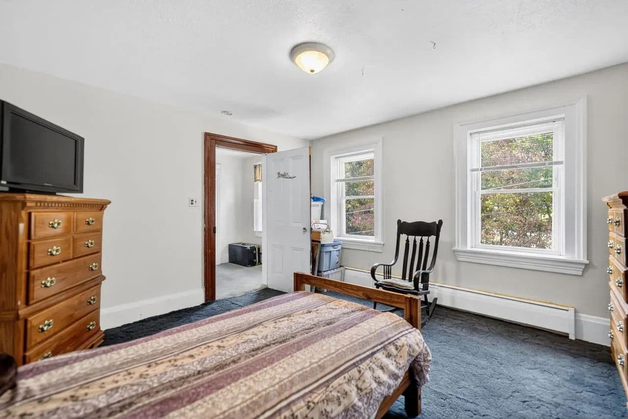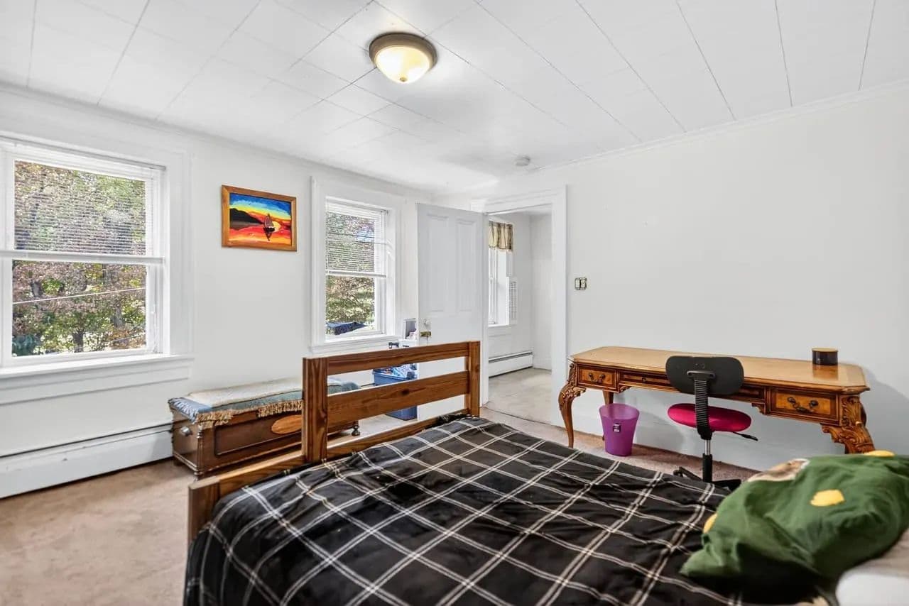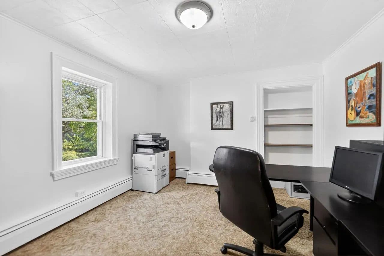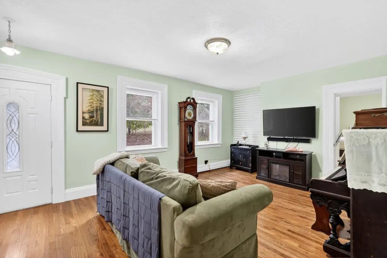 Upstairs, there are four additional bedrooms plus an insulated, unfinished attic for storage. The basement offers a kitchenette for canning, winemaking, or extra prep space. Utilities include hot water, oil-fired heat with dual 275-gallon tanks, washer/dryer, and a whole-house three-stage Big Blue water filtration system.