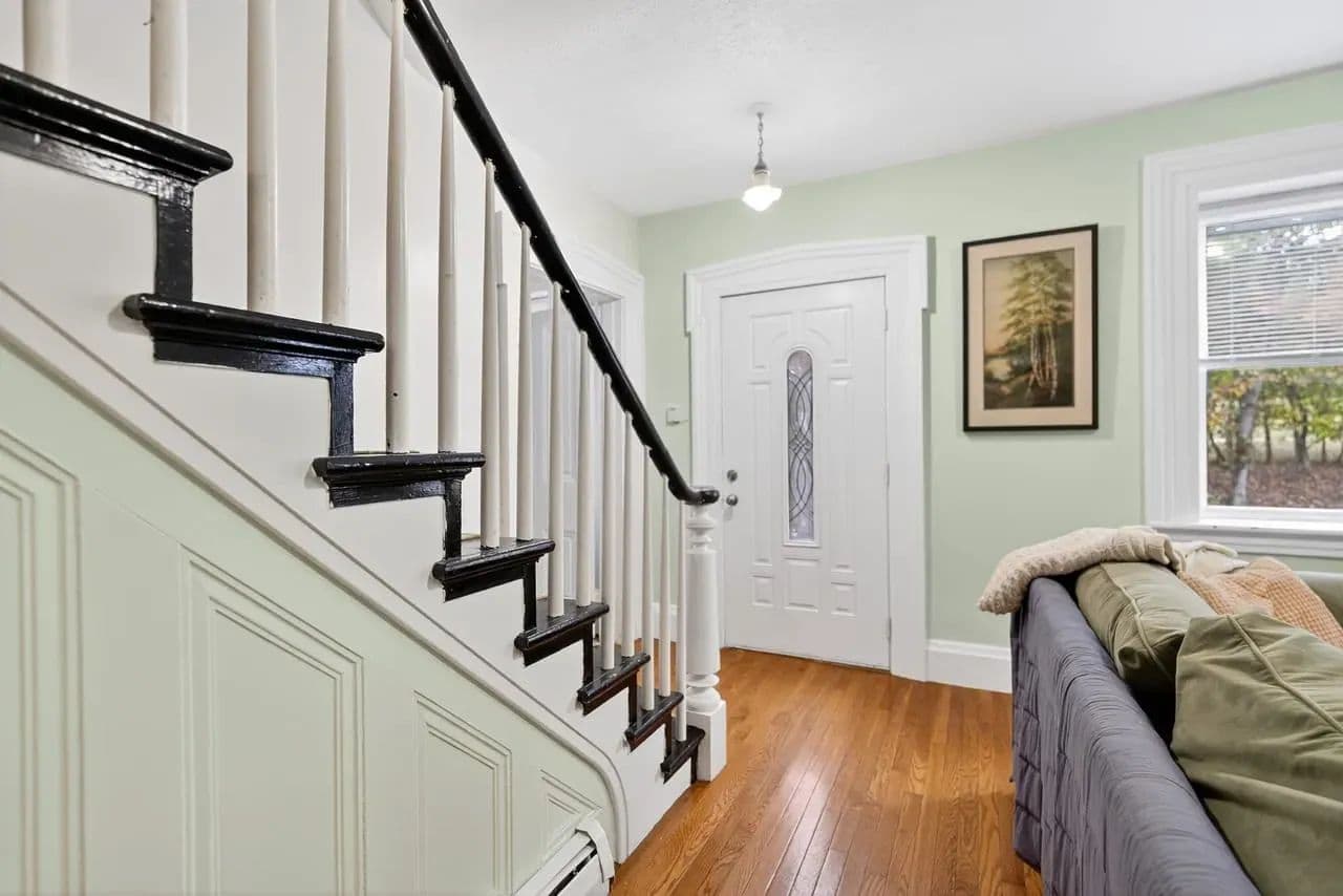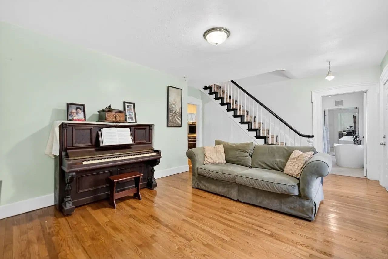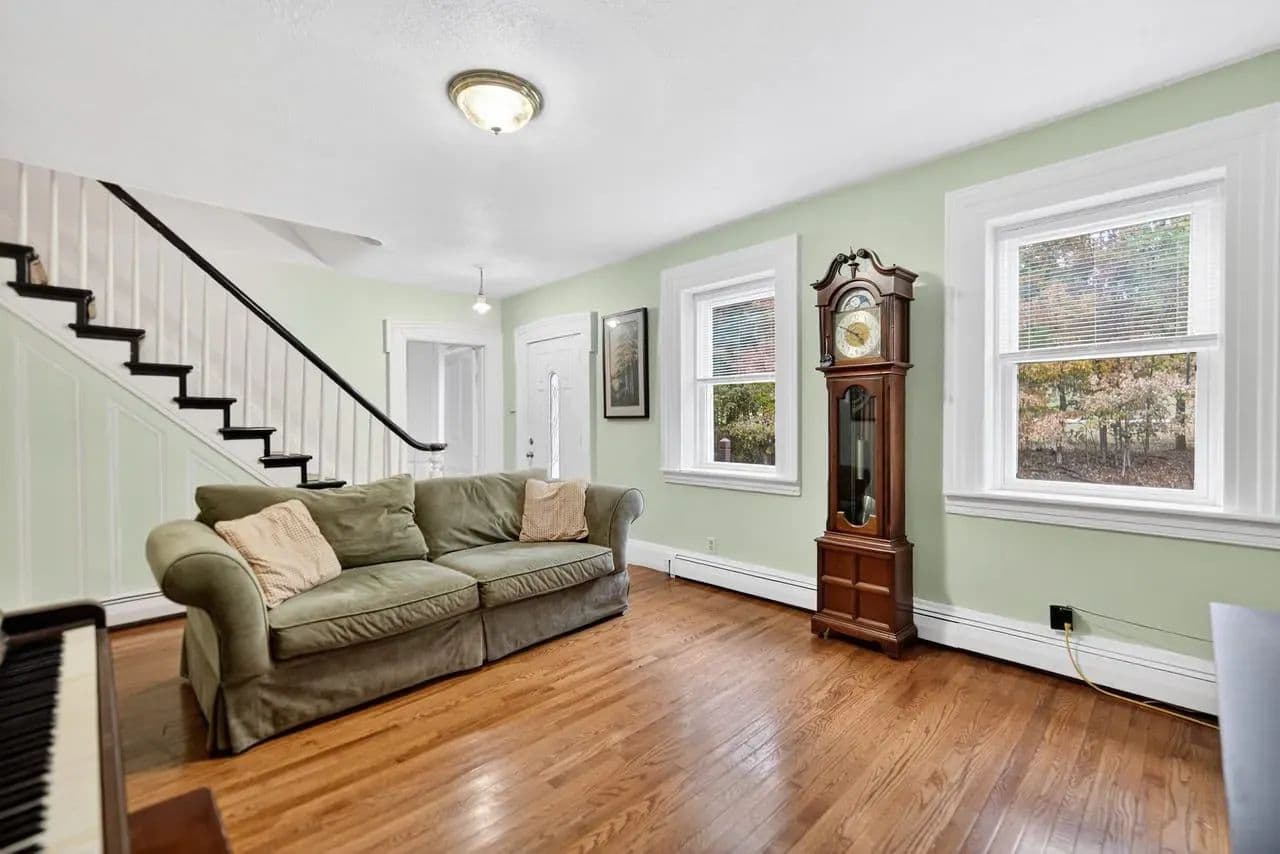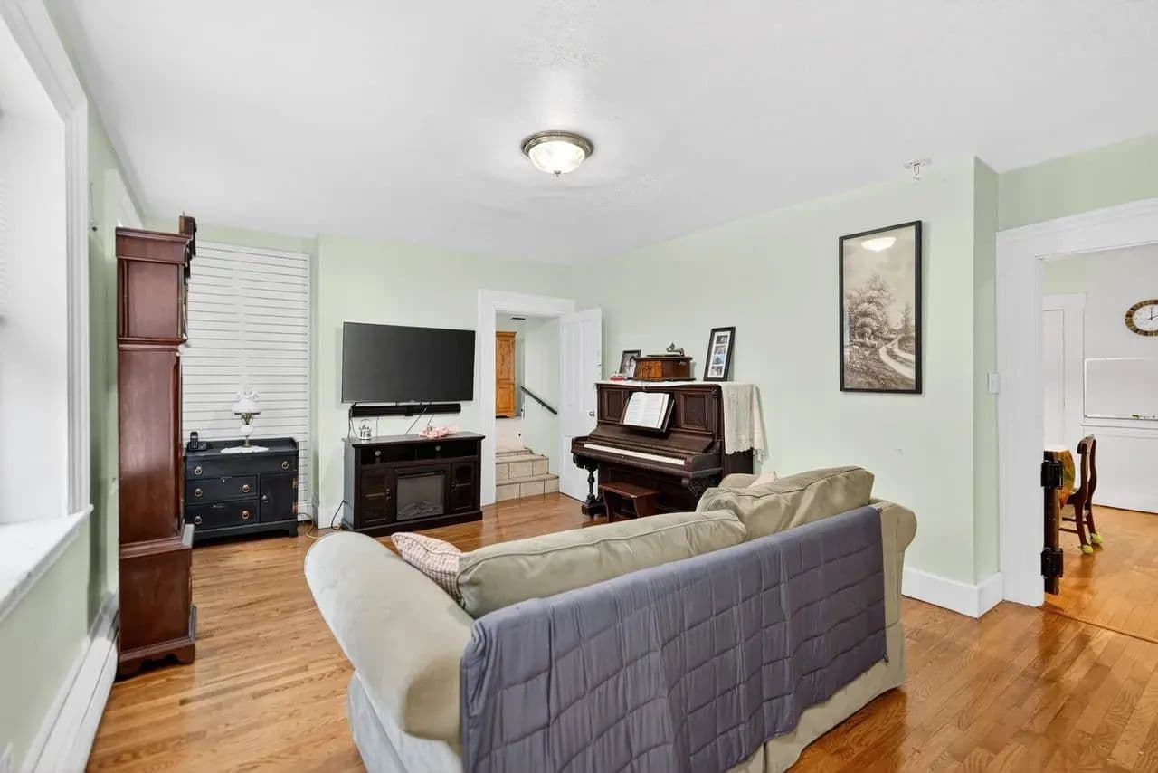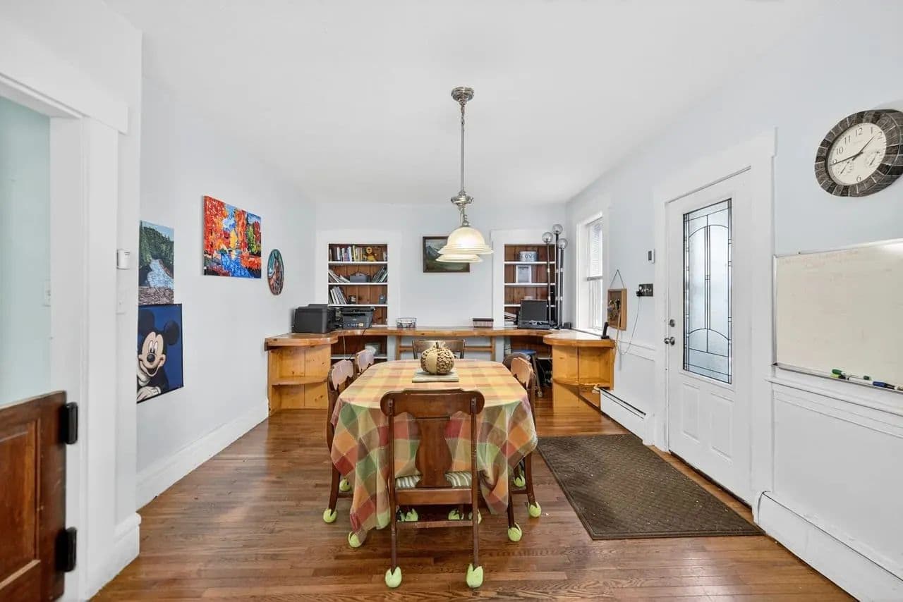 Upstairs, there are four additional bedrooms plus an insulated, unfinished attic for storage. The basement offers a kitchenette for canning, winemaking, or extra prep space. Utilities include hot water, oil-fired heat with dual 275-gallon tanks, washer/dryer, and a whole-house three-stage Big Blue water filtration system.