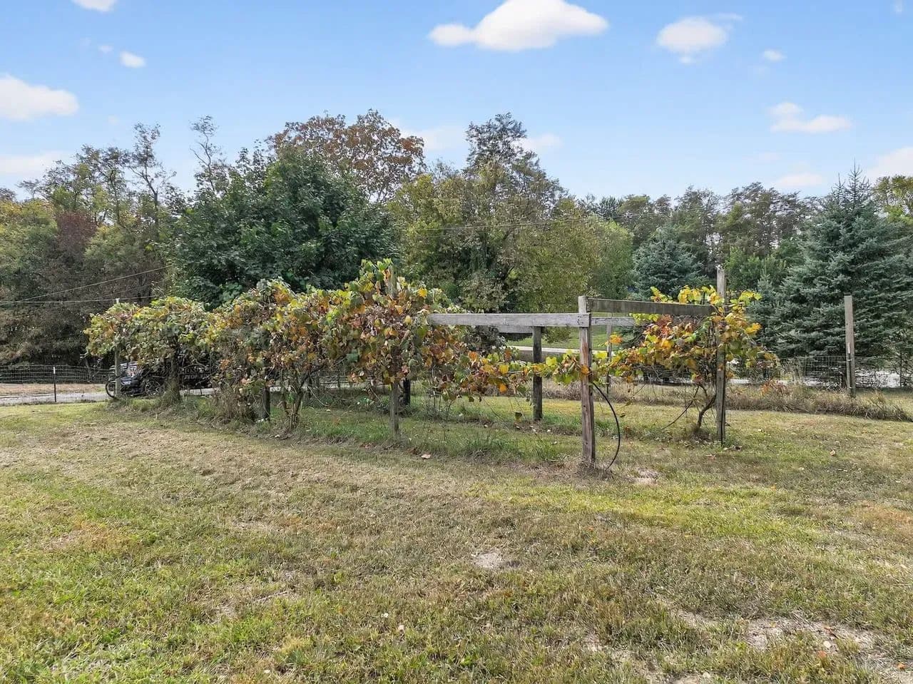 Established flower gardens previously used for production, including peonies, viburnum, lilac, zinnias, and grape arbor