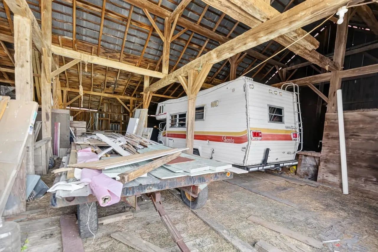 40' x 20' auto shop with 220 power, woodstove heat, and covered equipment storage