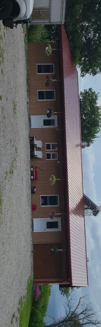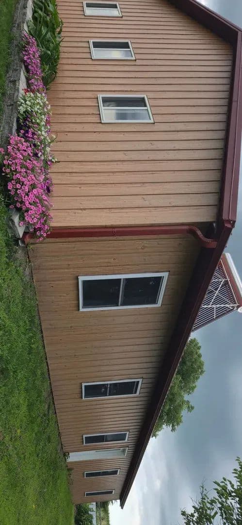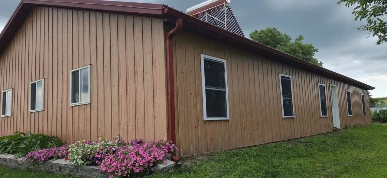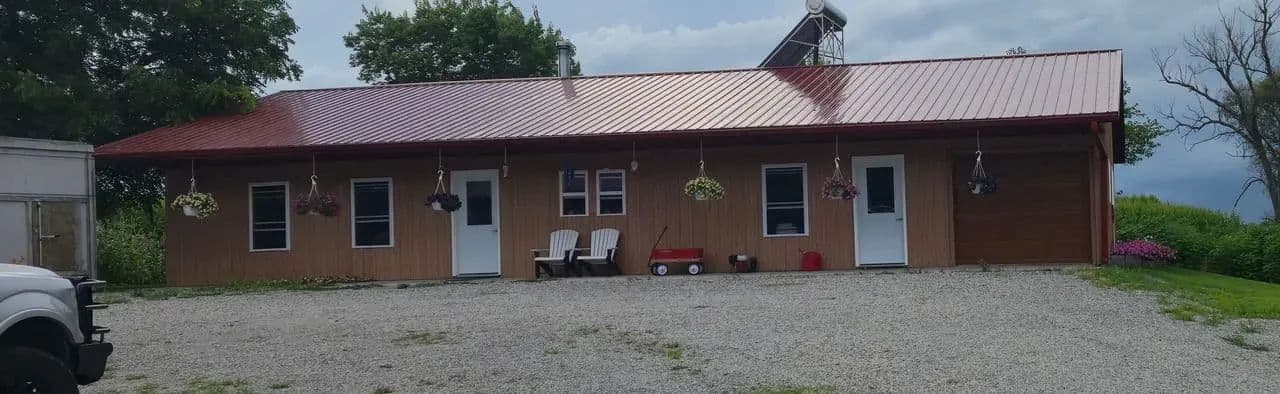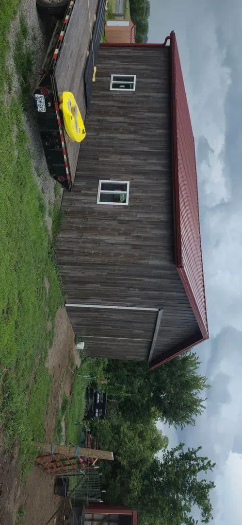 Sturdy and Stylish Exterior, The house boasts durable metal textured (wood grain) siding and roof, ensuring longevity and minimal maintenance, while also exuding a rustic charm that complements the surrounding landscape.