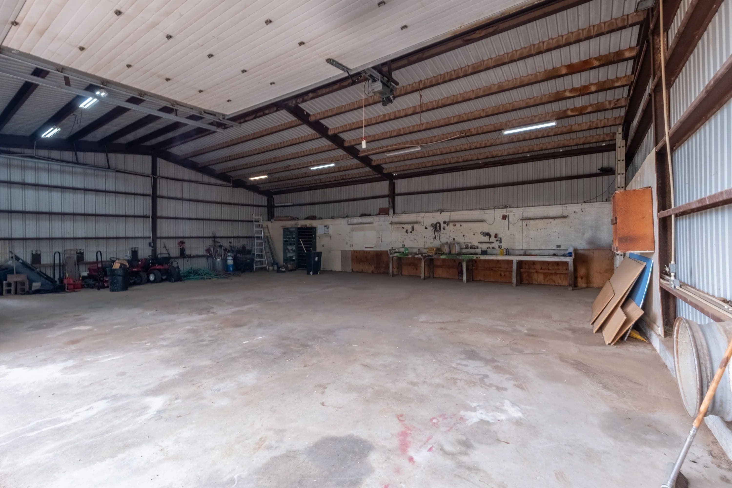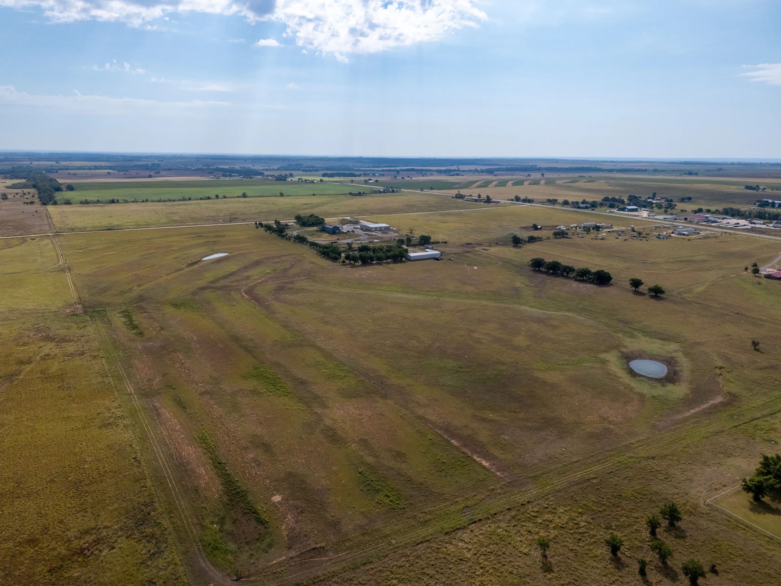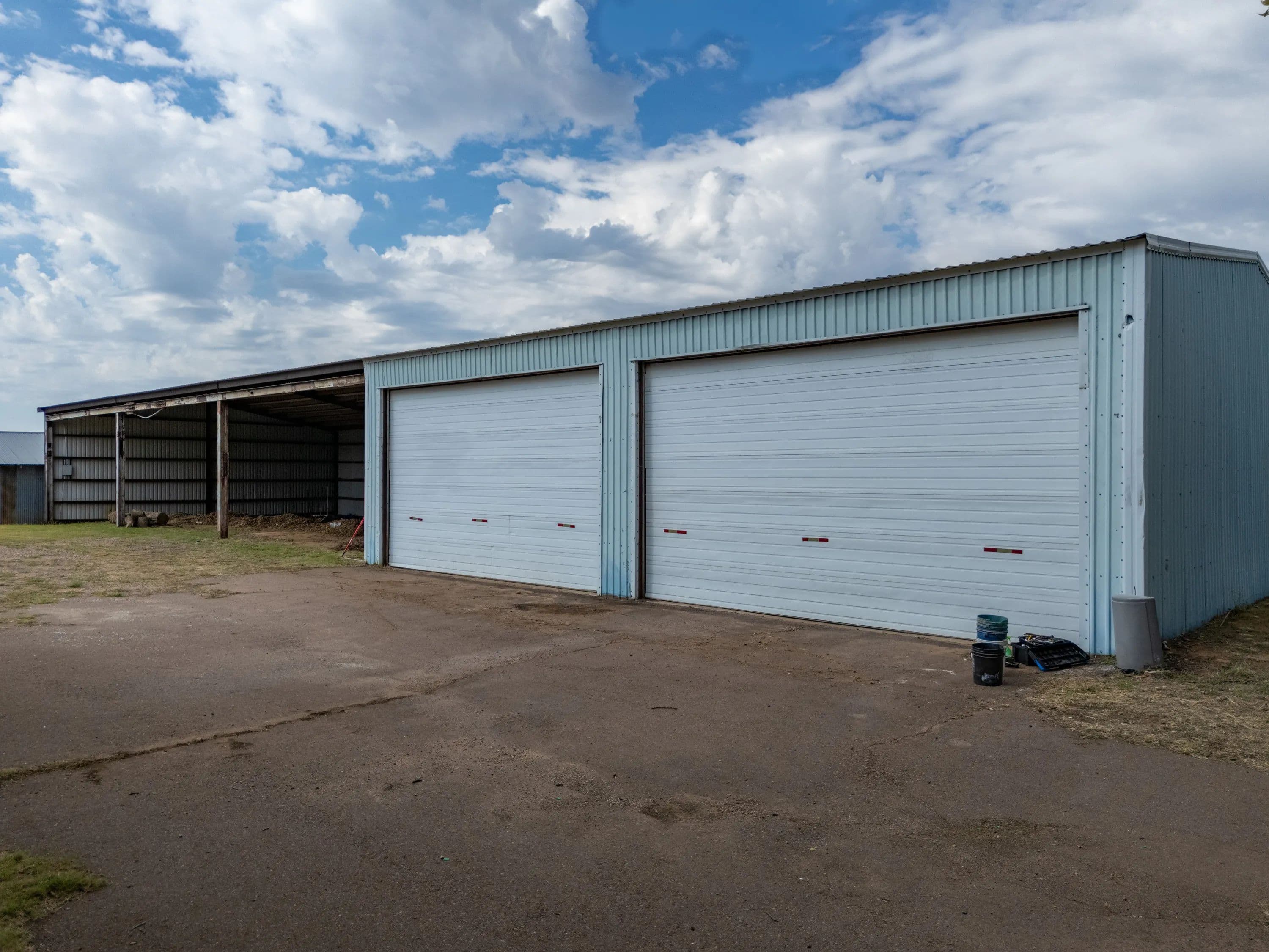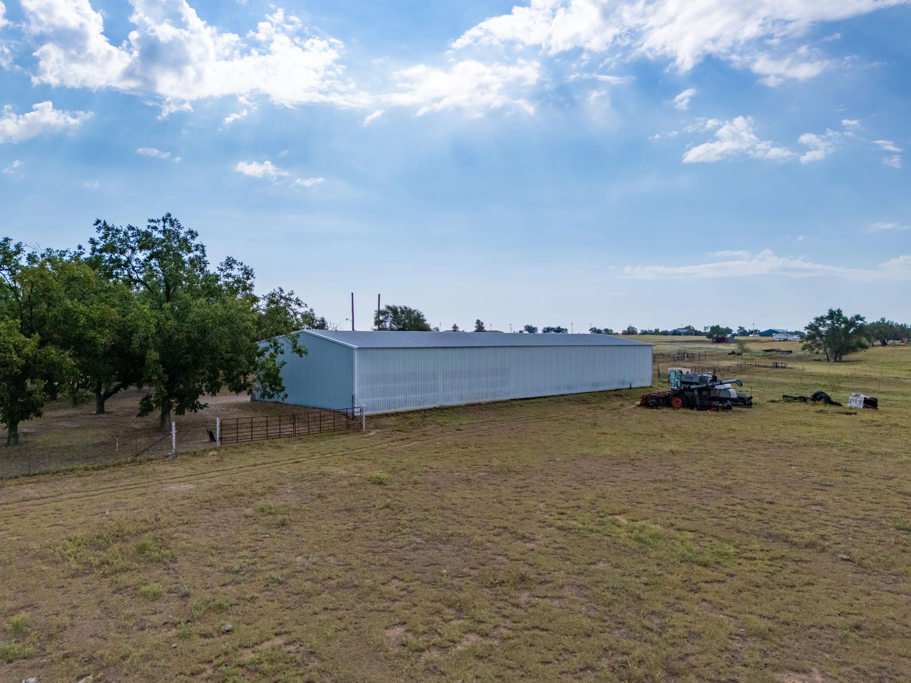 The property is well-suited for storing farm, ranch, or construction equipment, featuring five barns and outbuildings, including a 75’ x 40’ building with 13’ doors and an adjacent 50’ x 40’ shop with concrete floors.
