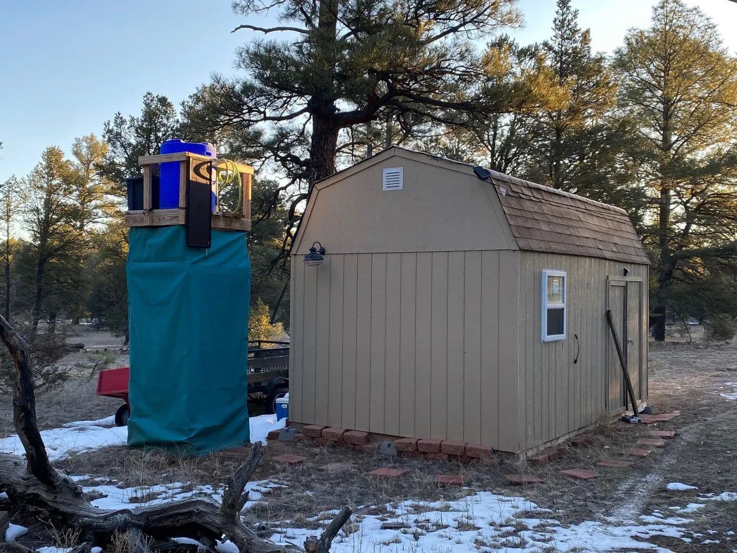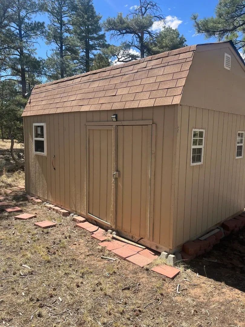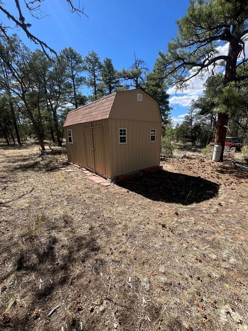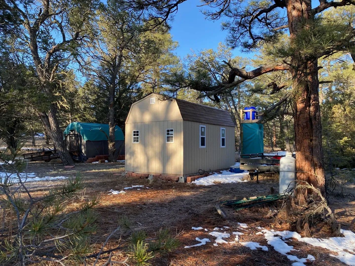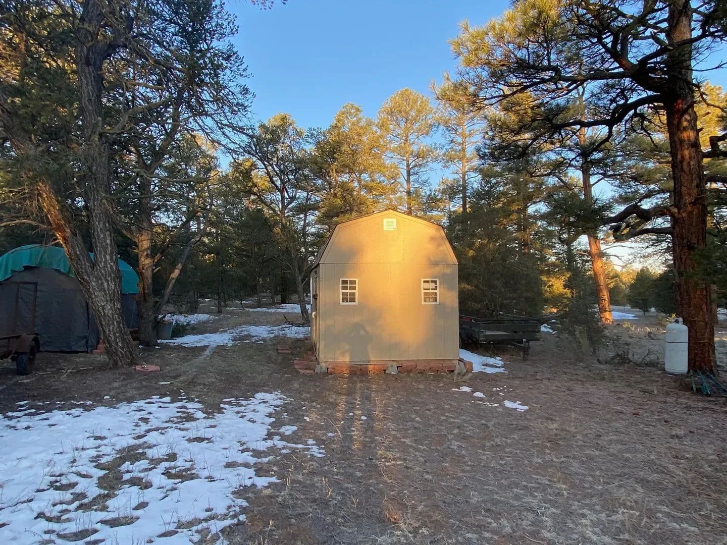 Improvements There is a small building that has been converted to a cabin. There is also a small portable garage next to it for storage. The acreage is fenced on three sides and fencing is on site for the fourth side.