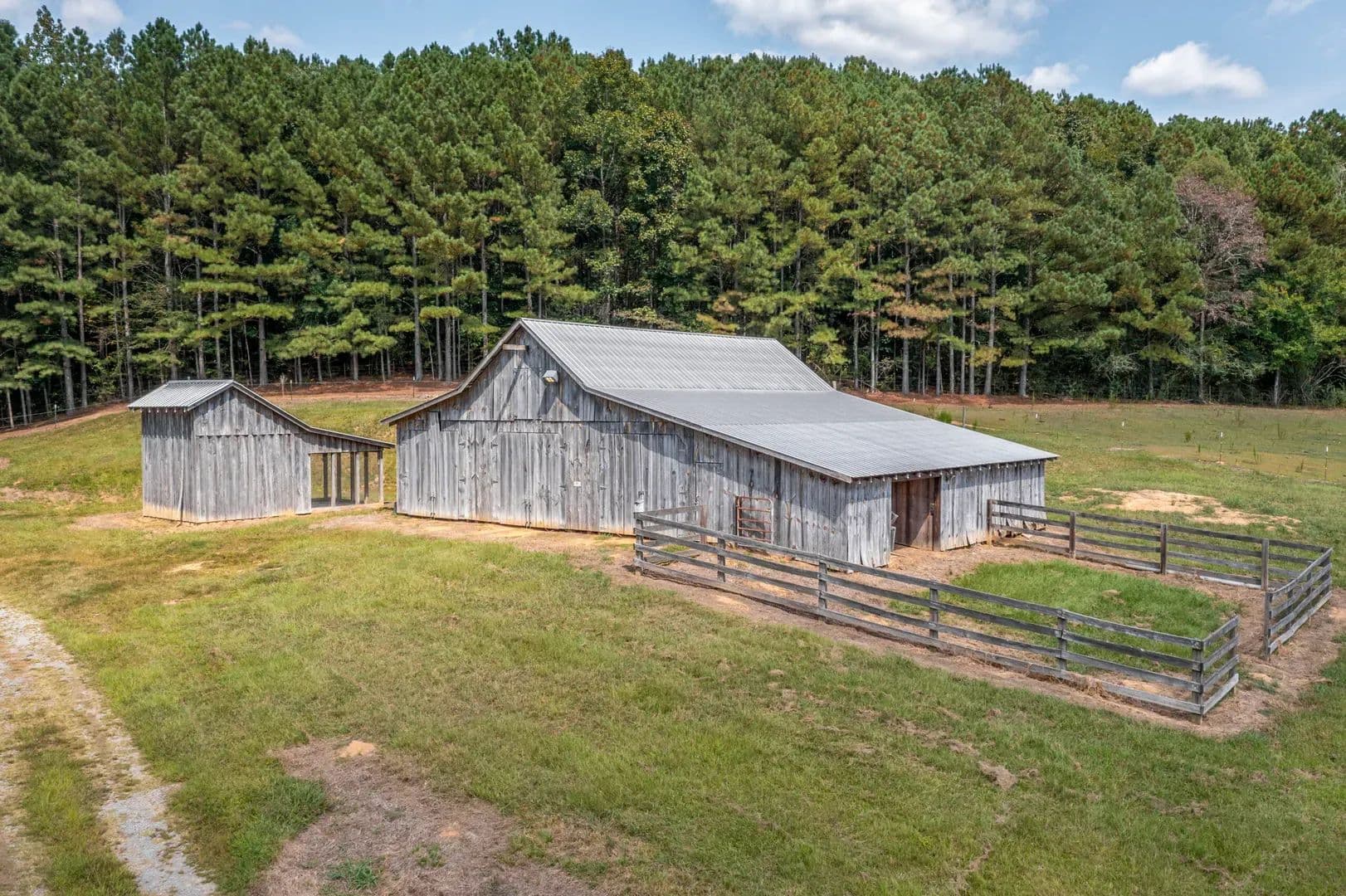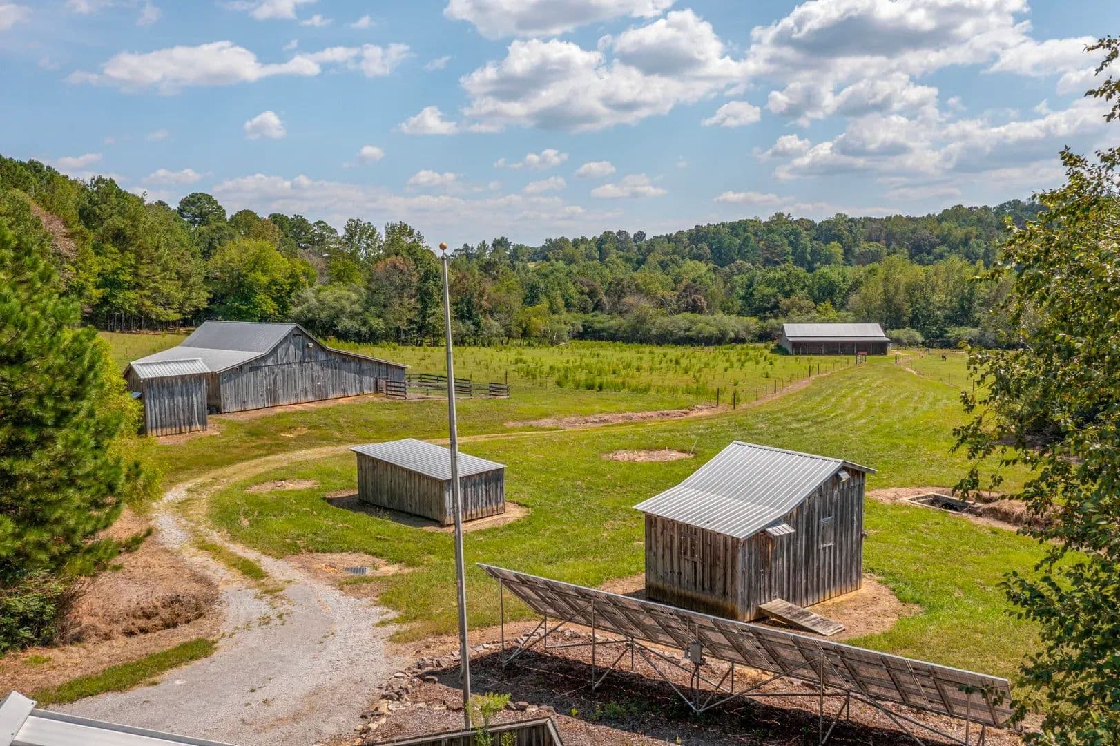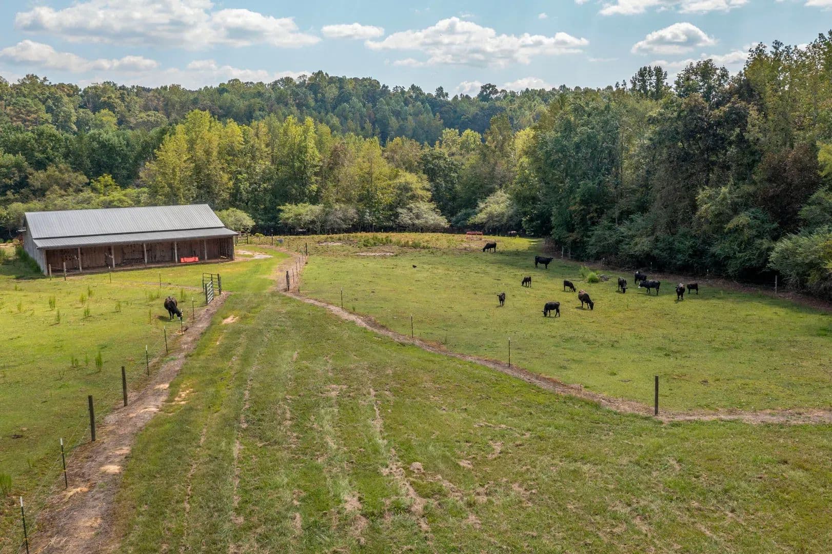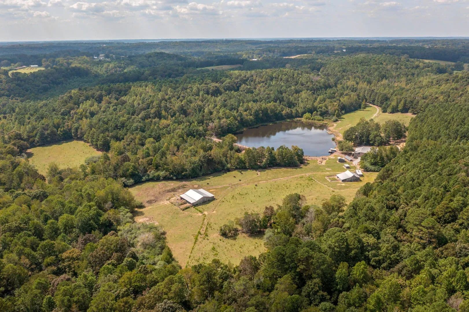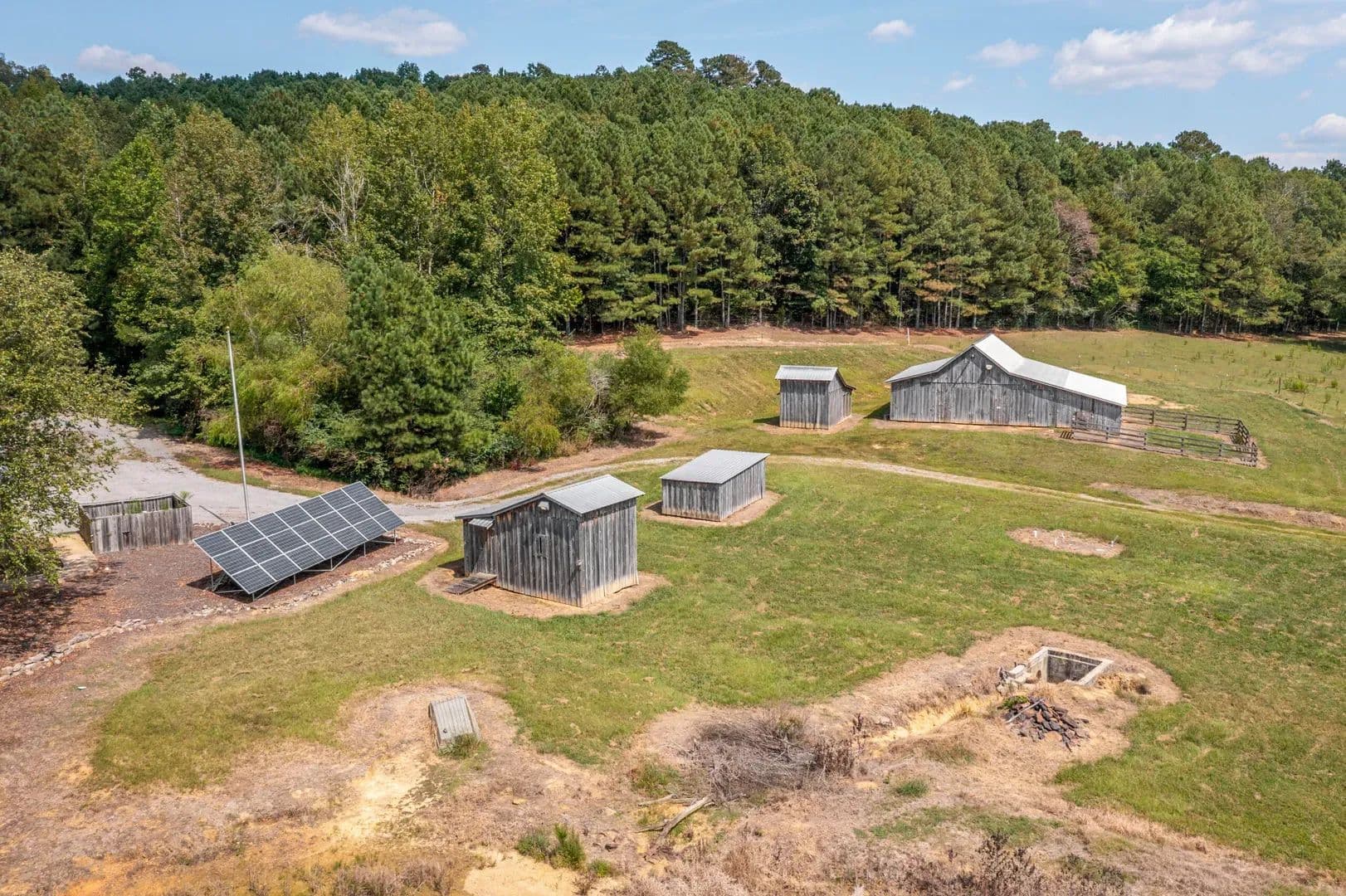 This property is 153 +/- acres of fortified off-grid ready living. Featuring a well built home, 2 car garage, multiple barns and buildings, a 5-acre lake, gated entry, high-security cameras, and reinforced doors and windows, this property is built for self-reliant peace of mind. Rustic yet resilient, it’s ready for modern independence in rural Cullman. Land The land is approximately 153+/- acres of rolling hills, timber, water, and pasture. Everything you need to have an operating cattle farm is present on the property. You enter the property and have a scenic half mile drive through the electronic gate and front pastures, past the lake, and arrive at the house.