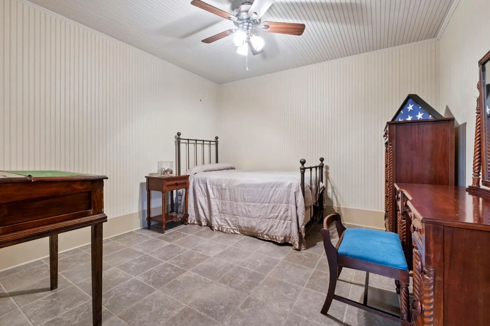 Improvements The centerpiece of the property is a 2,905 sq. ft. home built with 12-inch exterior walls for strength and efficiency. Security features include a coded front gate, high-quality camera system, and roll-down doors on all entry points. The home has 2 bedrooms and 2 bathrooms with quality finishes throughout. Inside the main bedroom, there is a concrete storm room, that has the ability to lock, and remain discreet if needed. Cypress, maple, pine, and walnut wood add warmth and character, while tile flooring offers durability and easy upkeep. Water is supplied by city water with the option to switch to well water. Power is from the city grid, backed up by solar and a generator. The generator has a buried propane supply. There are a total of 5 propane tanks on the property, 2 of which are buried. An indoor heated pool makes it enjoyable year-round.