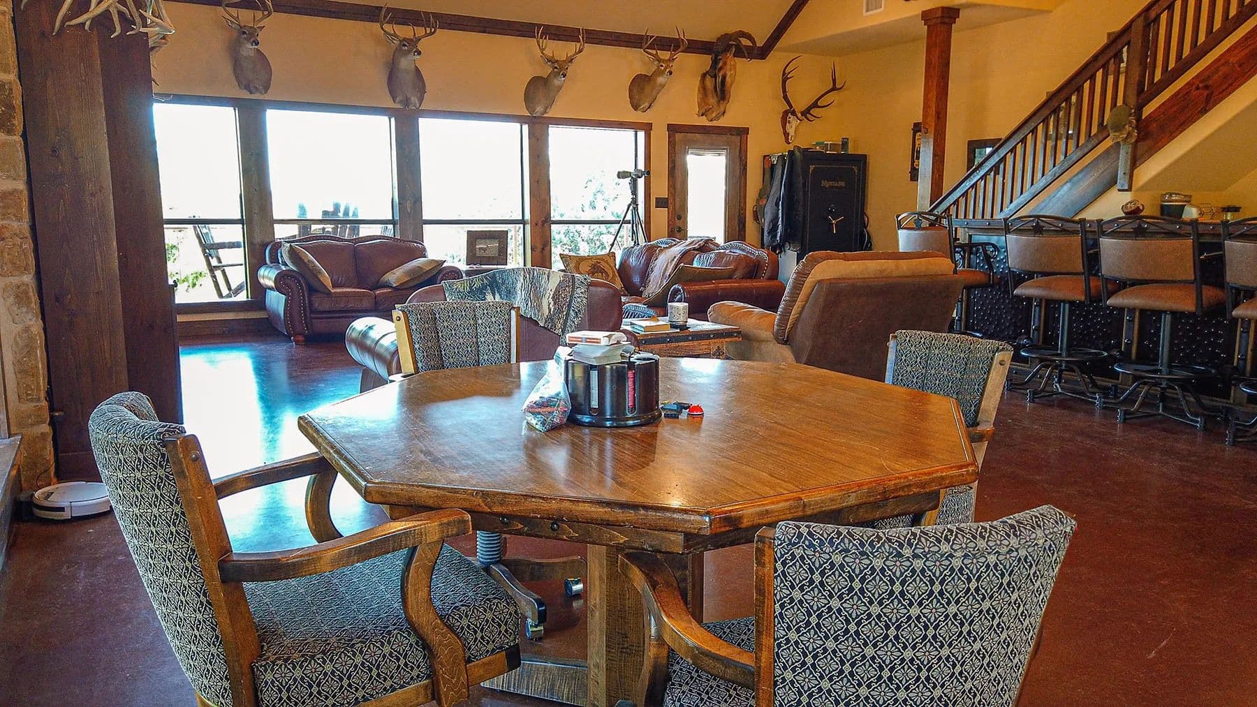 Multiple ponds, boat docks, and a reliable water treatment system ensure plentiful water and recreational opportunities. With a main lodge, bunkhouse, barns, and equipment facilities, the property is fully equipped for immediate enjoyment. This rare offering presents unmatched potential for recreational use, outfitting, hunting, and long-term investment, all in proximity to Dallas-Fort Worth.