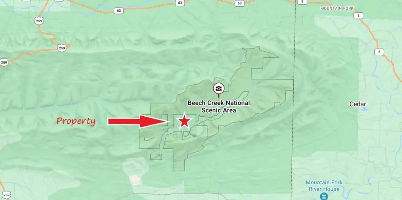 Unique opportunity to own 360 acres bordering Beech Creek National Scenic Area in the Quachita National Forest. Loaded with mature timber, there is potential here for a quick return on investment. Tall stands of pine stretch across the entire property, with beautiful Beech Creek flowing through the southern portion. Excellent hunting opportunities in an area known for producing large deer, bear and turkey. A true wilderness feel in an extremely remote location.