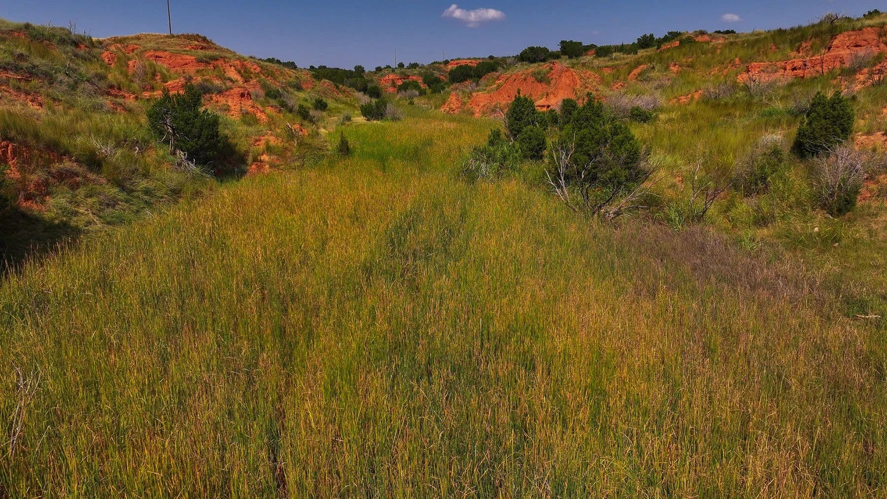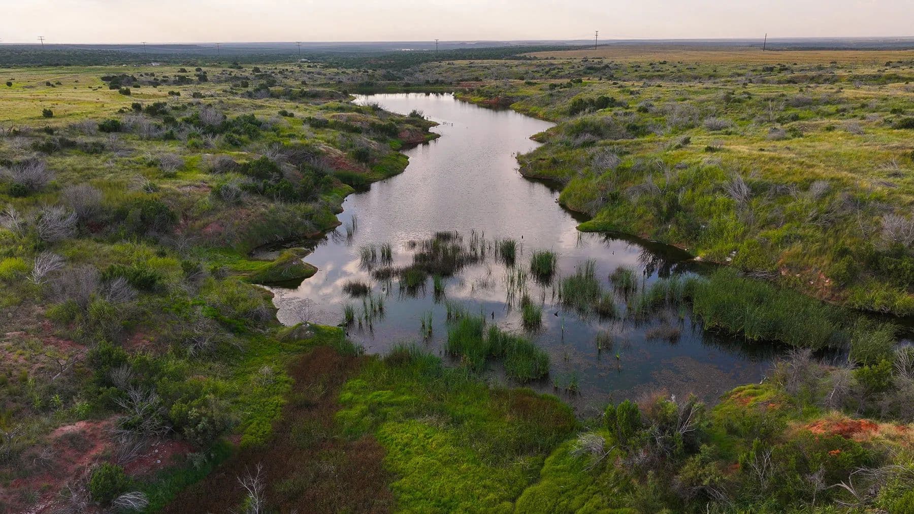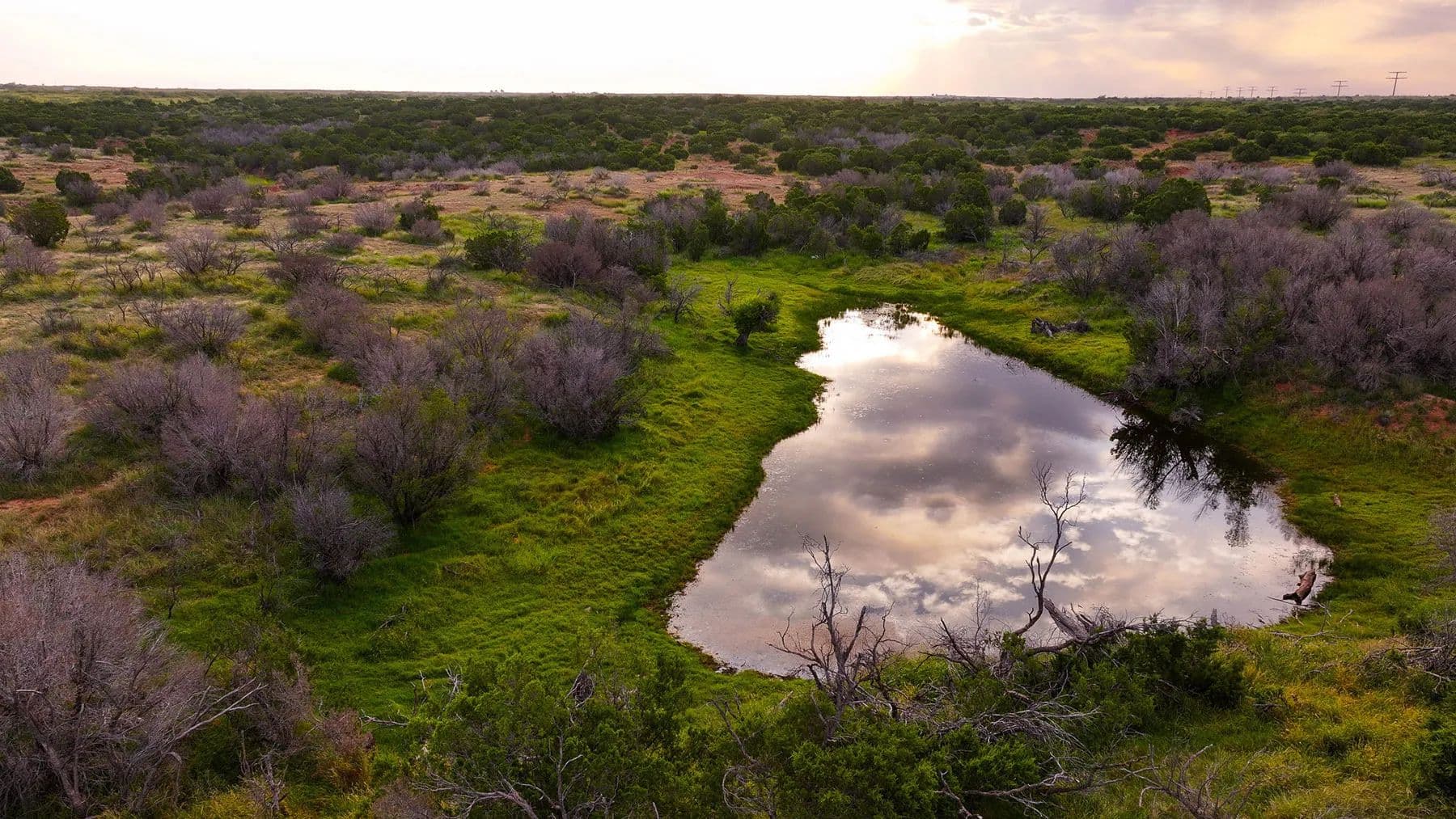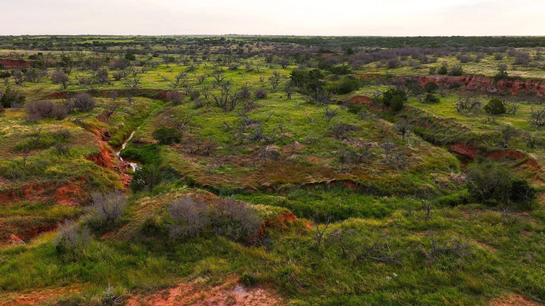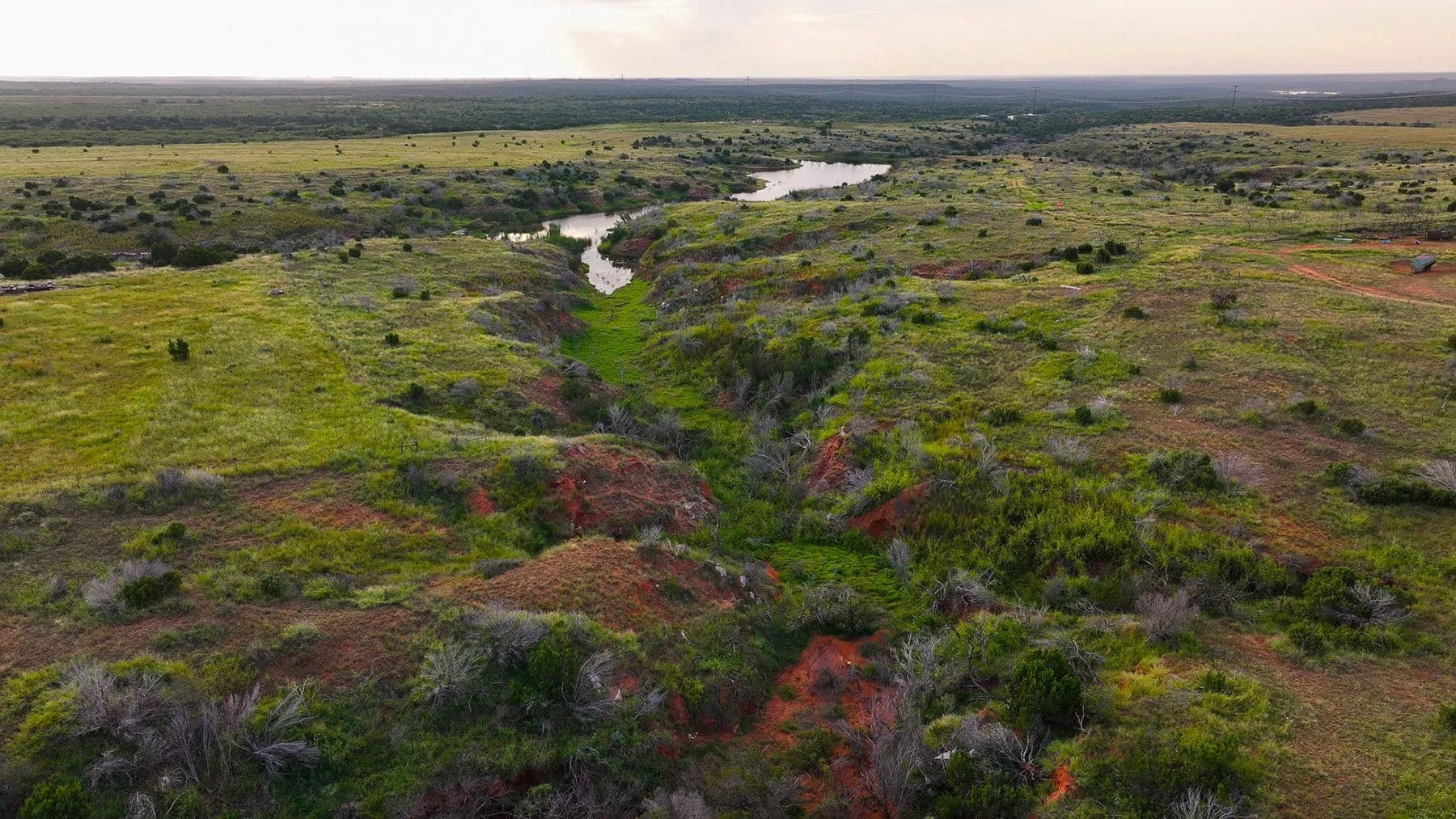 The ranch lies in classic upland country, where several picturesque draws cut through the landscape, creating natural corridors for wildlife and offering rich, productive bottomland. A thick cover of native brush and vegetation enhances the habitat, supporting healthy populations of whitetail deer, mule deer, turkey, quail, and other game species. This combination of water, cover, and food sources makes it a haven for hunters and nature enthusiasts.