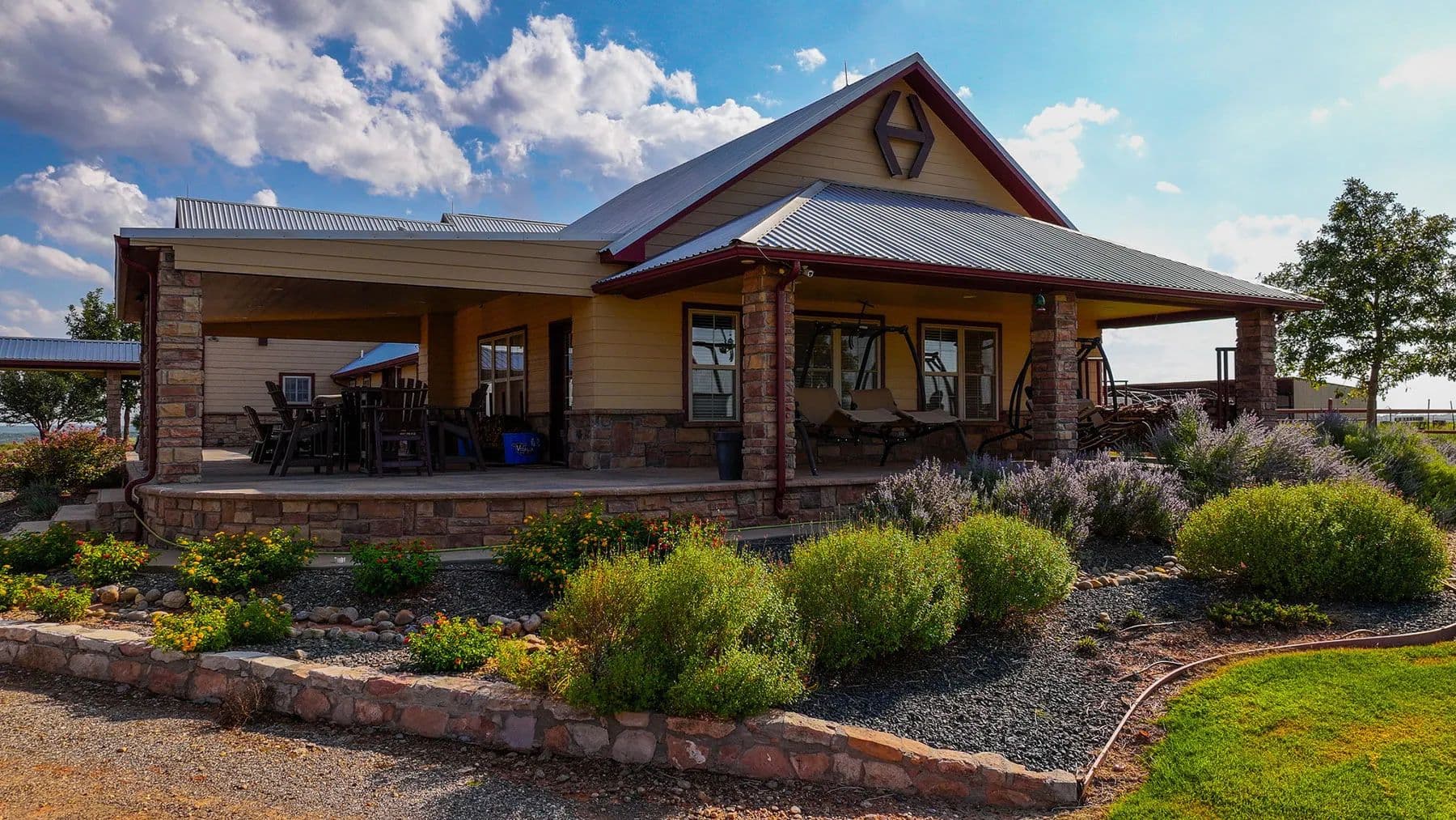 Improvements on the ranch are extensive and well thought-out, making the property turnkey for a wide range of uses. The main residence is an impressive country-style, two-story, four-bedroom, four-bathroom home designed with self-sufficiency and comfort in mind. Whether used as a family home or the centerpiece of a corporate retreat, it offers ample space and luxury in a serene rural setting. A separate bunkhouse accommodates guests or ranch hands, while two large shops offer abundant storage and workspace.