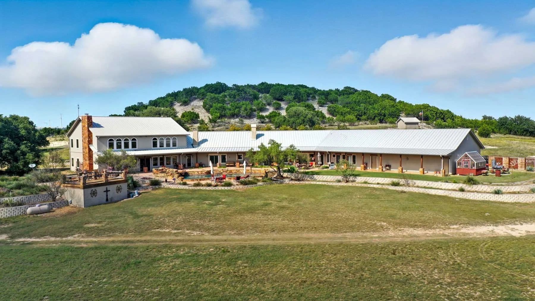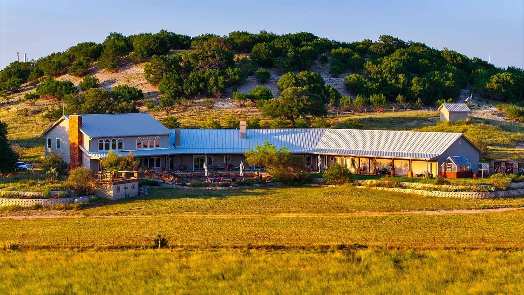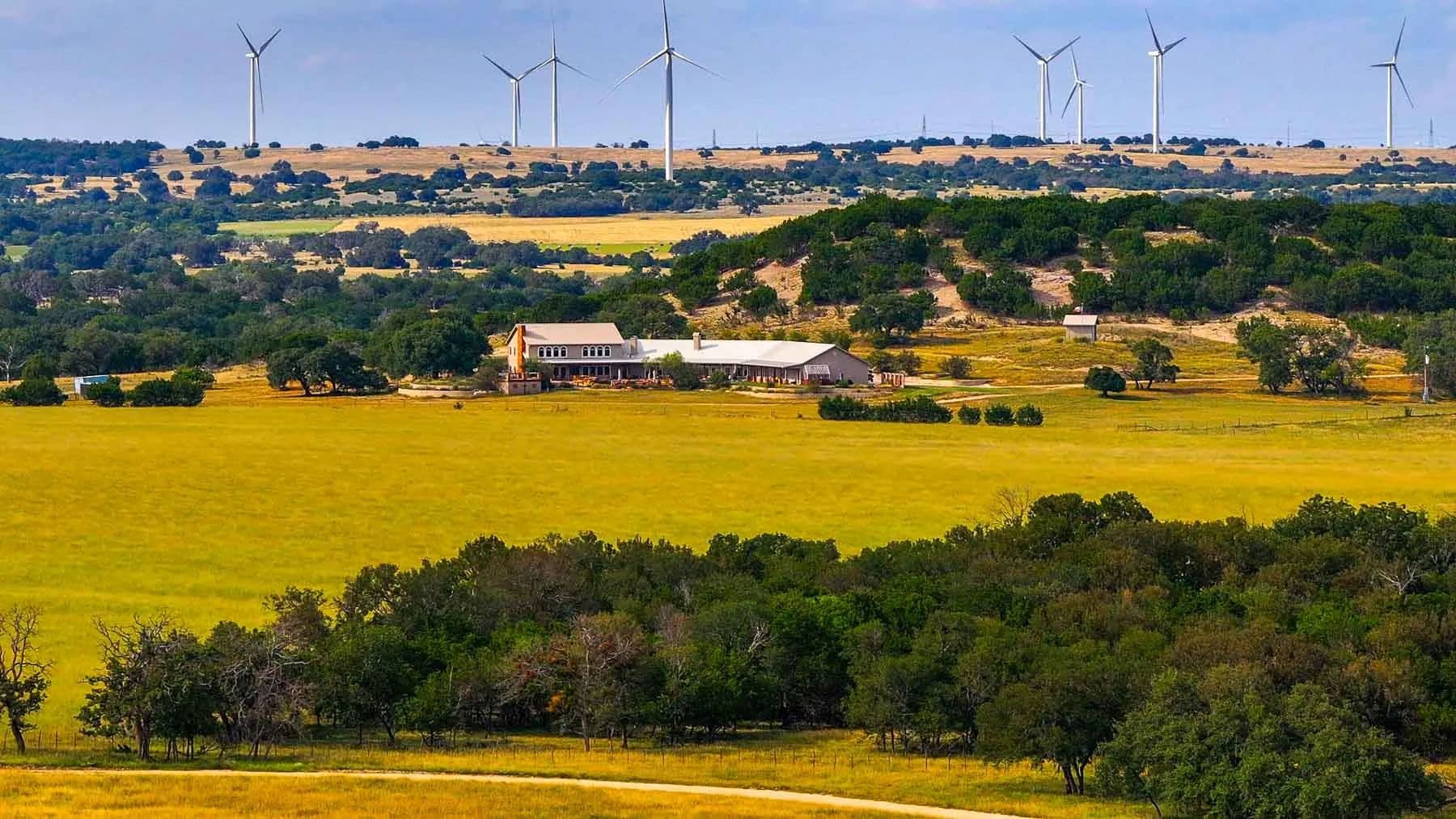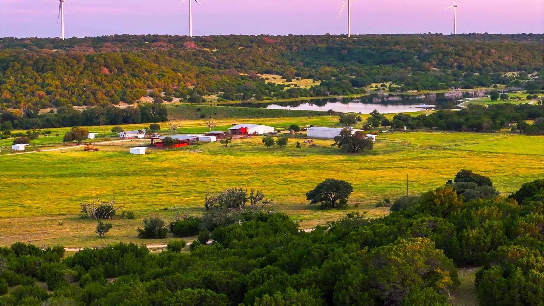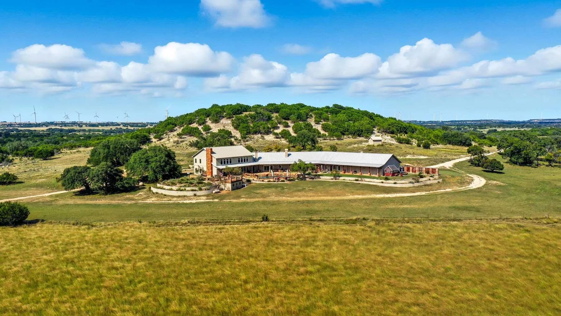 Horsefly Mountain Ranch is a diverse and well-appointed property offering a unique convergence of residential luxury, agricultural functions, and recreational appeal. Situated in Mills County near the town of Goldthwaite, this 1,610+/- acre ranch features an all-steel framed main residence, equestrian facilities, working pens, barns, and a variety of secondary guest quarters. Notably, the property benefits from a rare and extensive gravity-fed spring water system, making an off-grid lifestyle possible. Sustainability is further supported by income from hay production, cattle, and meat goat operations, as well as passive revenue from a wind energy lease with five turbines that generate approximately $50,000 annually. The landscape is a fair balance of open grazing areas, areas with dense brush cover, multiple stock ponds, and a crown jewel private fifteen-acre lake with excellent fishing, waterfowl, and recreational uses. Views of Bread Tray Mountain give a scenic backdrop, while proximity to Austin, Dallas, Waco, and resort destinations support convenience and desirability. Wildlife habitat, a portion of high fencing, internal cross fencing for rotational grazing, and the variety of recreational potential round out the property's appeal. From well-considered improvements, a strong balance of ag production, recreational appeal, and income generation, Horsefly Mountain Ranch represents a distinctive opportunity in Central Texas.