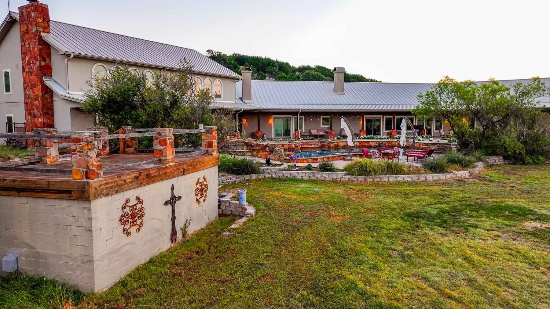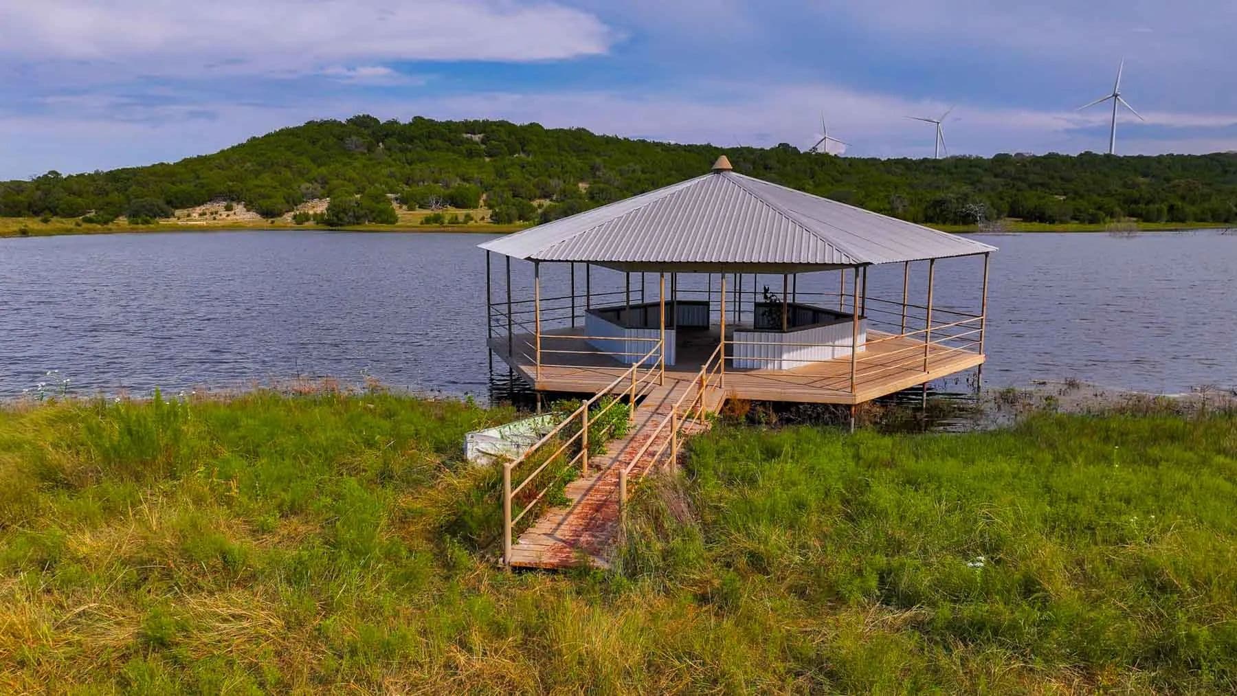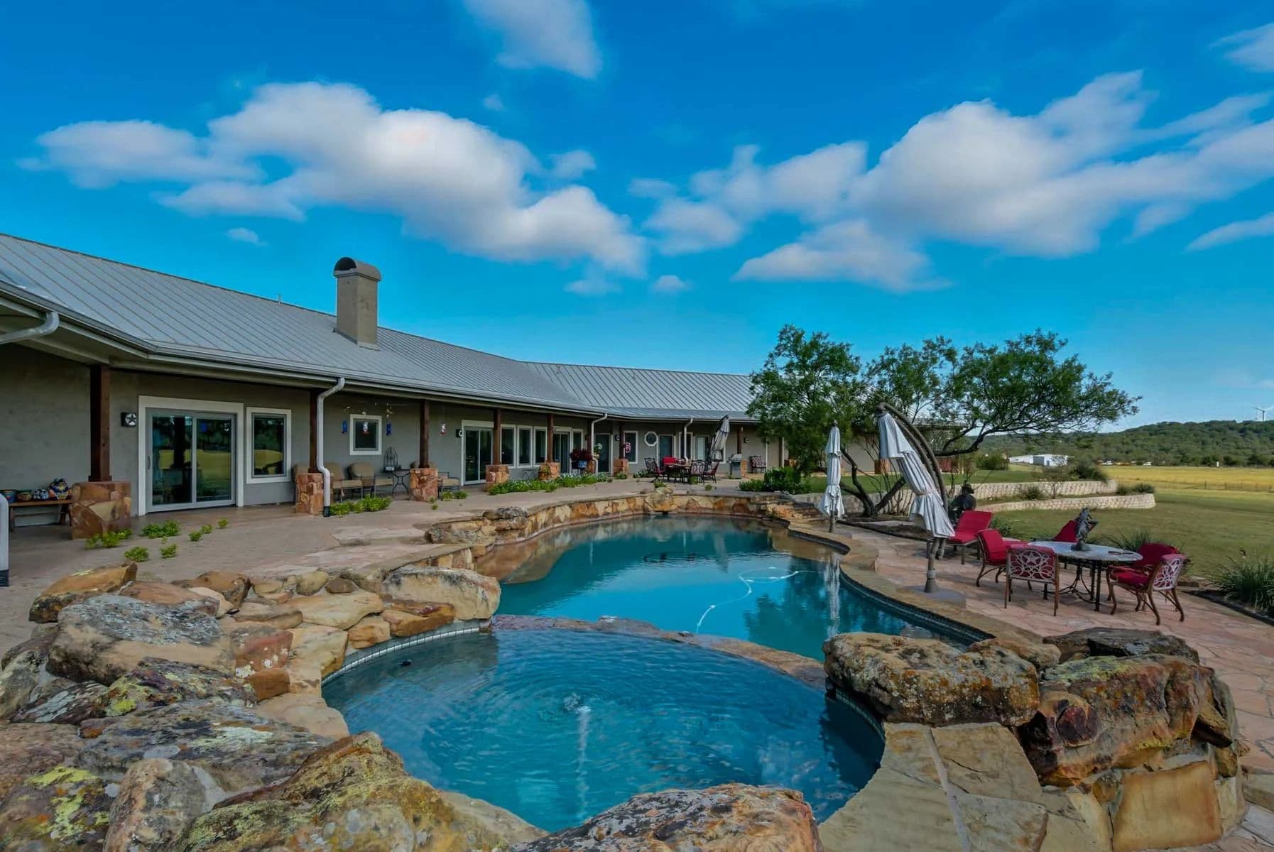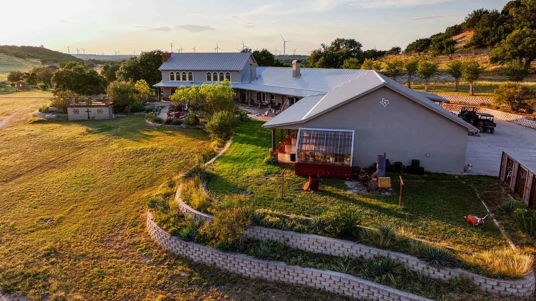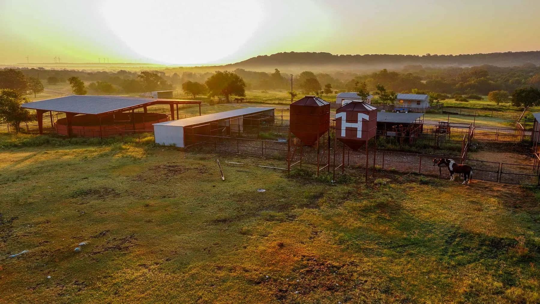 Horsefly Mountain Ranch is a diverse and well-appointed property offering a unique convergence of residential luxury, agricultural functions, and recreational appeal. Situated in Mills County near the town of Goldthwaite, this 1,610+/- acre ranch features an all-steel framed main residence, equestrian facilities, working pens, barns, and a variety of secondary guest quarters. Notably, the property benefits from a rare and extensive gravity-fed spring water system, making an off-grid lifestyle possible. Sustainability is further supported by income from hay production, cattle, and meat goat operations, as well as passive revenue from a wind energy lease with five turbines that generate approximately $50,000 annually. The landscape is a fair balance of open grazing areas, areas with dense brush cover, multiple stock ponds, and a crown jewel private fifteen-acre lake with excellent fishing, waterfowl, and recreational uses. Views of Bread Tray Mountain give a scenic backdrop, while proximity to Austin, Dallas, Waco, and resort destinations support convenience and desirability. Wildlife habitat, a portion of high fencing, internal cross fencing for rotational grazing, and the variety of recreational potential round out the property's appeal. From well-considered improvements, a strong balance of ag production, recreational appeal, and income generation, Horsefly Mountain Ranch represents a distinctive opportunity in Central Texas.