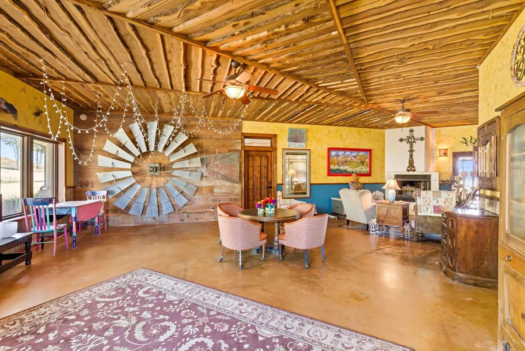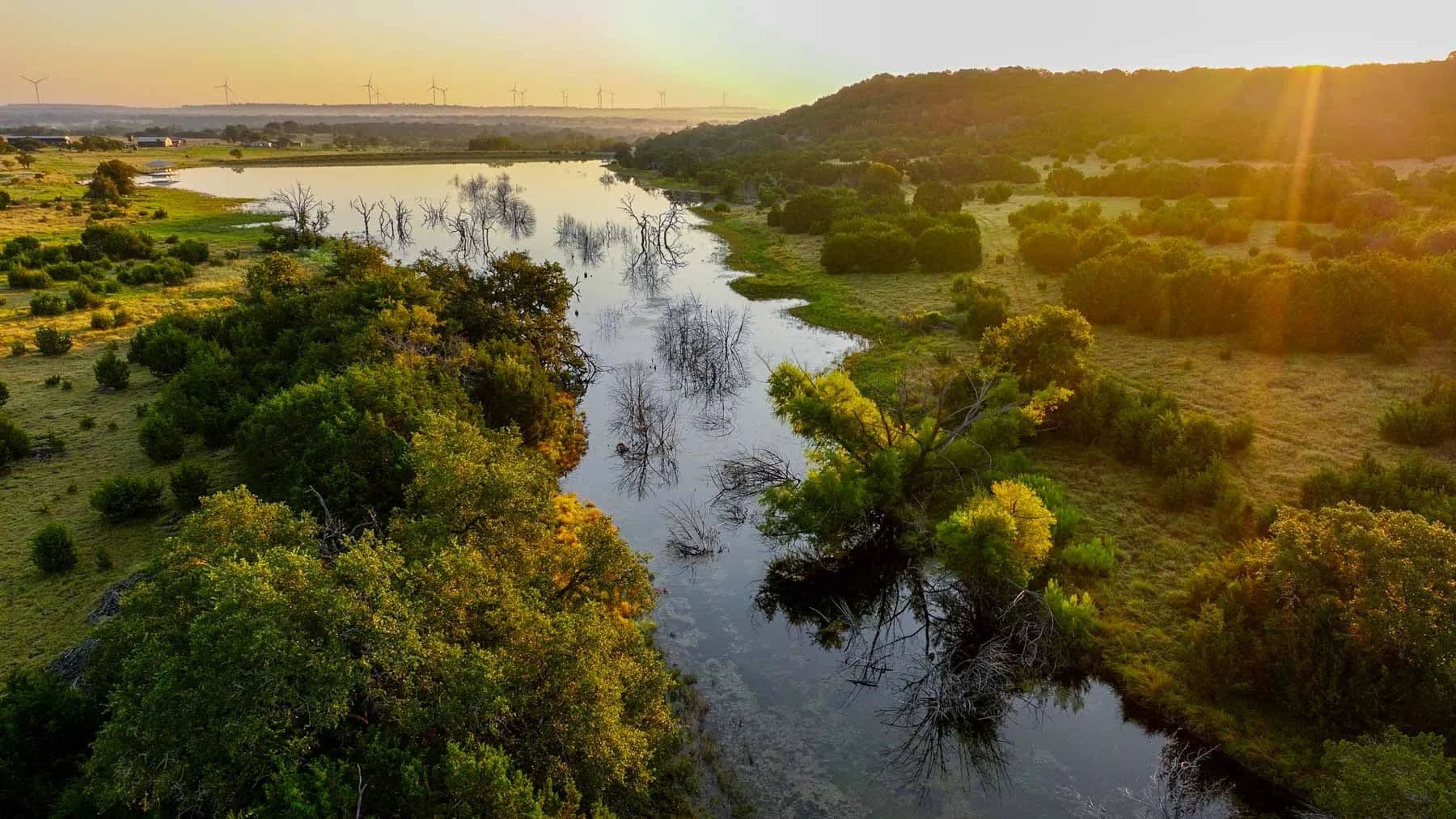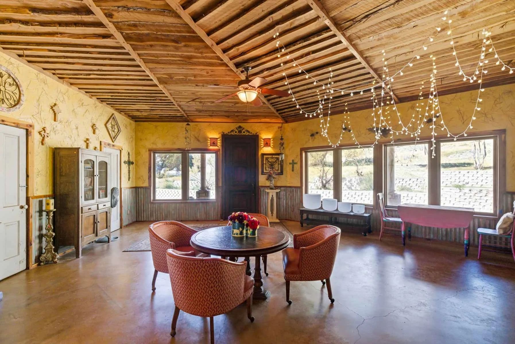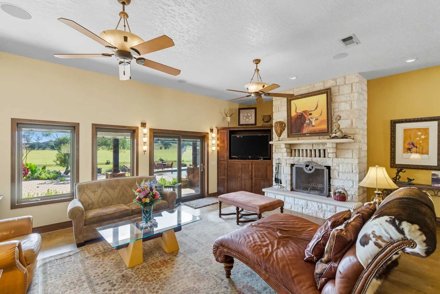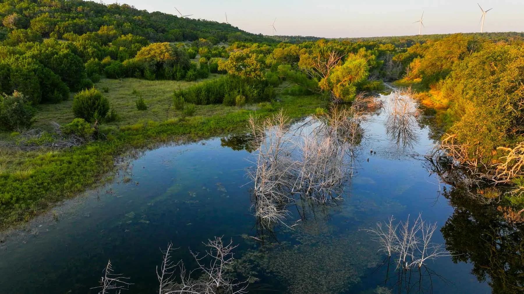 Horsefly Mountain Ranch is a diverse and well-appointed property offering a unique convergence of residential luxury, agricultural functions, and recreational appeal. Situated in Mills County near the town of Goldthwaite, this 1,610+/- acre ranch features an all-steel framed main residence, equestrian facilities, working pens, barns, and a variety of secondary guest quarters. Notably, the property benefits from a rare and extensive gravity-fed spring water system, making an off-grid lifestyle possible. Sustainability is further supported by income from hay production, cattle, and meat goat operations, as well as passive revenue from a wind energy lease with five turbines that generate approximately $50,000 annually. The landscape is a fair balance of open grazing areas, areas with dense brush cover, multiple stock ponds, and a crown jewel private fifteen-acre lake with excellent fishing, waterfowl, and recreational uses. Views of Bread Tray Mountain give a scenic backdrop, while proximity to Austin, Dallas, Waco, and resort destinations support convenience and desirability. Wildlife habitat, a portion of high fencing, internal cross fencing for rotational grazing, and the variety of recreational potential round out the property's appeal. From well-considered improvements, a strong balance of ag production, recreational appeal, and income generation, Horsefly Mountain Ranch represents a distinctive opportunity in Central Texas.