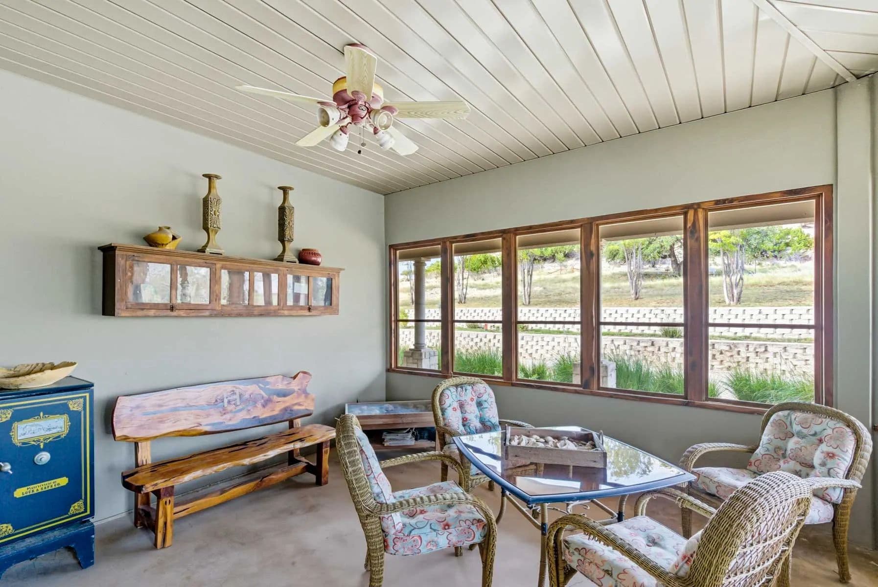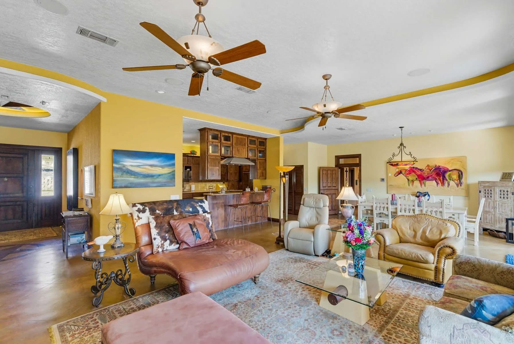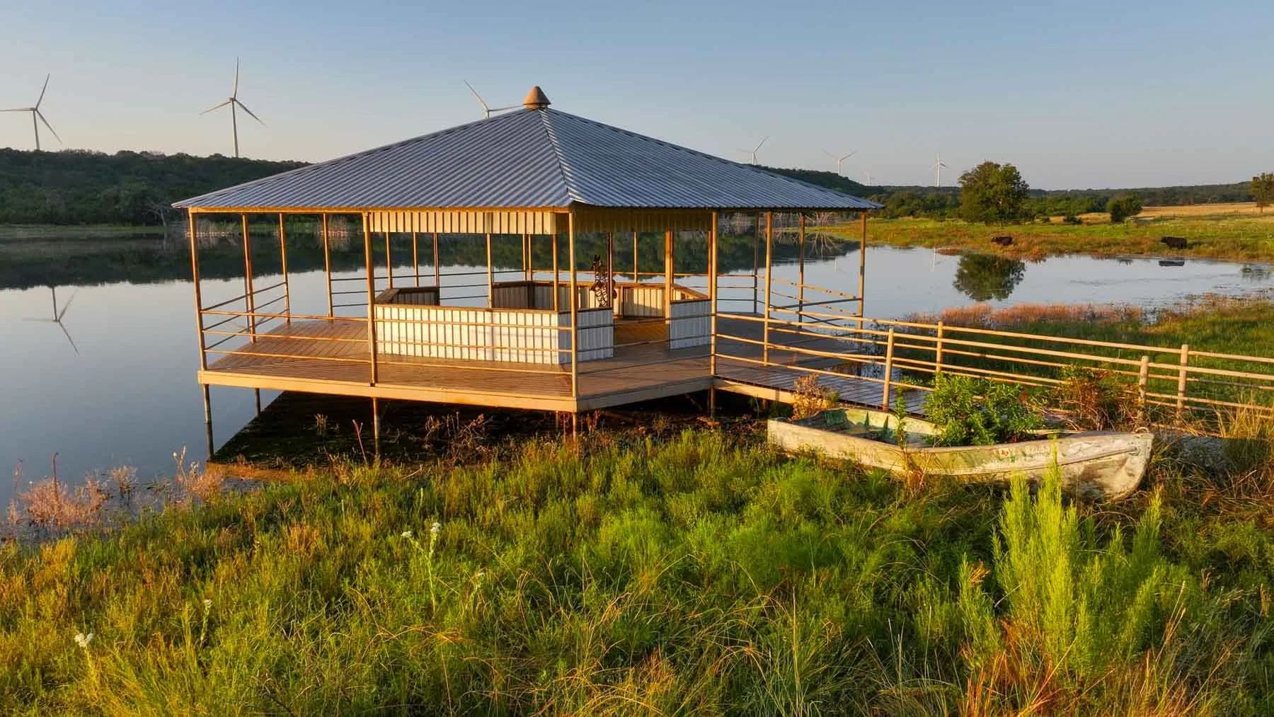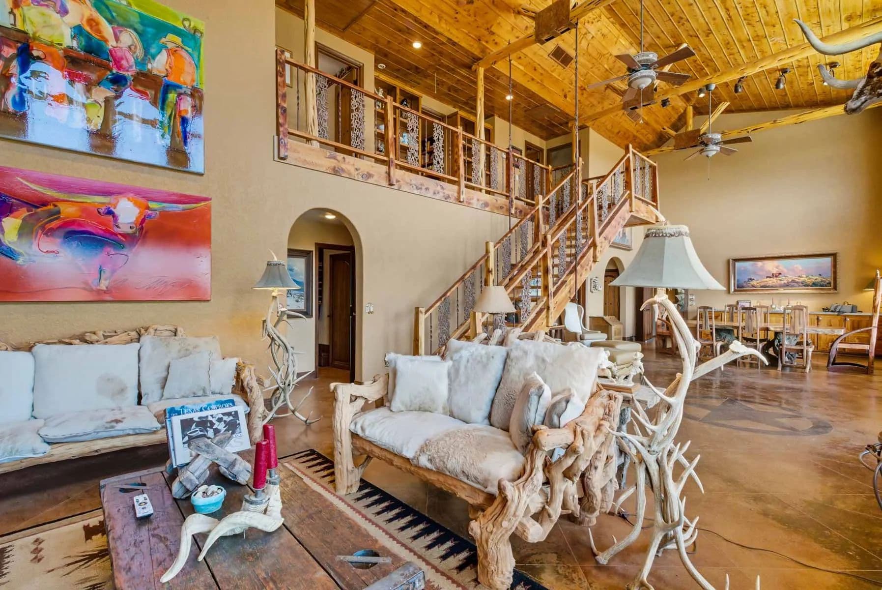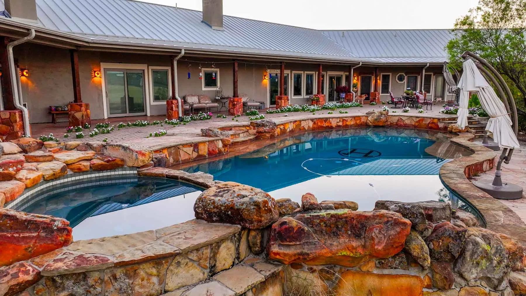 Horsefly Mountain Ranch is a diverse and well-appointed property offering a unique convergence of residential luxury, agricultural functions, and recreational appeal. Situated in Mills County near the town of Goldthwaite, this 1,610+/- acre ranch features an all-steel framed main residence, equestrian facilities, working pens, barns, and a variety of secondary guest quarters. Notably, the property benefits from a rare and extensive gravity-fed spring water system, making an off-grid lifestyle possible. Sustainability is further supported by income from hay production, cattle, and meat goat operations, as well as passive revenue from a wind energy lease with five turbines that generate approximately $50,000 annually. The landscape is a fair balance of open grazing areas, areas with dense brush cover, multiple stock ponds, and a crown jewel private fifteen-acre lake with excellent fishing, waterfowl, and recreational uses. Views of Bread Tray Mountain give a scenic backdrop, while proximity to Austin, Dallas, Waco, and resort destinations support convenience and desirability. Wildlife habitat, a portion of high fencing, internal cross fencing for rotational grazing, and the variety of recreational potential round out the property's appeal. From well-considered improvements, a strong balance of ag production, recreational appeal, and income generation, Horsefly Mountain Ranch represents a distinctive opportunity in Central Texas.