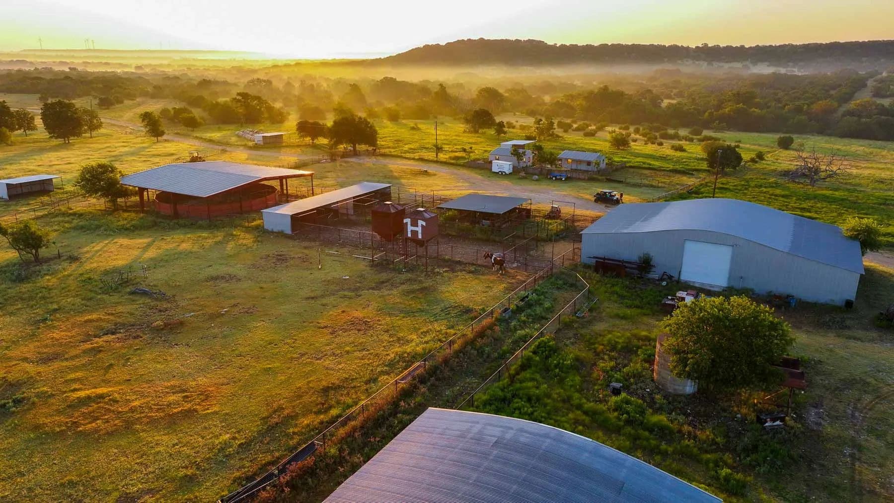 ~ Ranch-horse facilities, barns, working pens, and high fencing for livestock