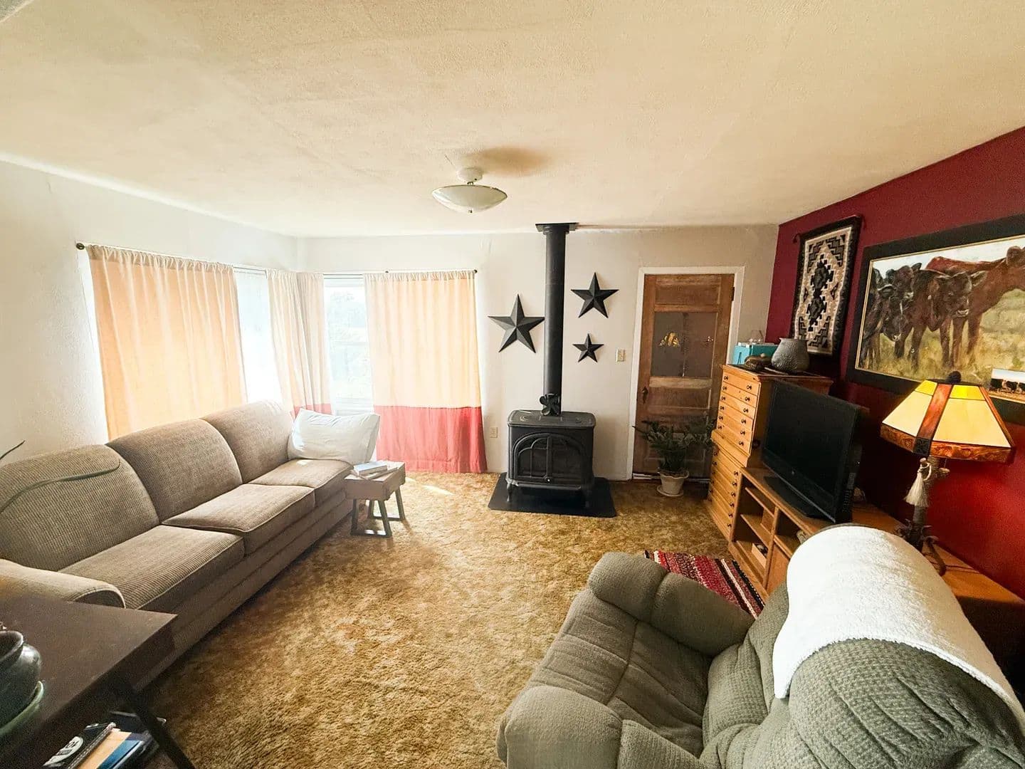 Secondary Residence: Approximately 2,600 sq ft including finished basement. Originally built in the 1940s and moved from Fort Morgan, the home was expanded in 1980. It offers four bedrooms and two bathrooms, a steel roof, wood stove, propane stoves on each floor, Andersen windows (2020), and steel doors. The house has no central A/C or furnace and portions retain original wiring.