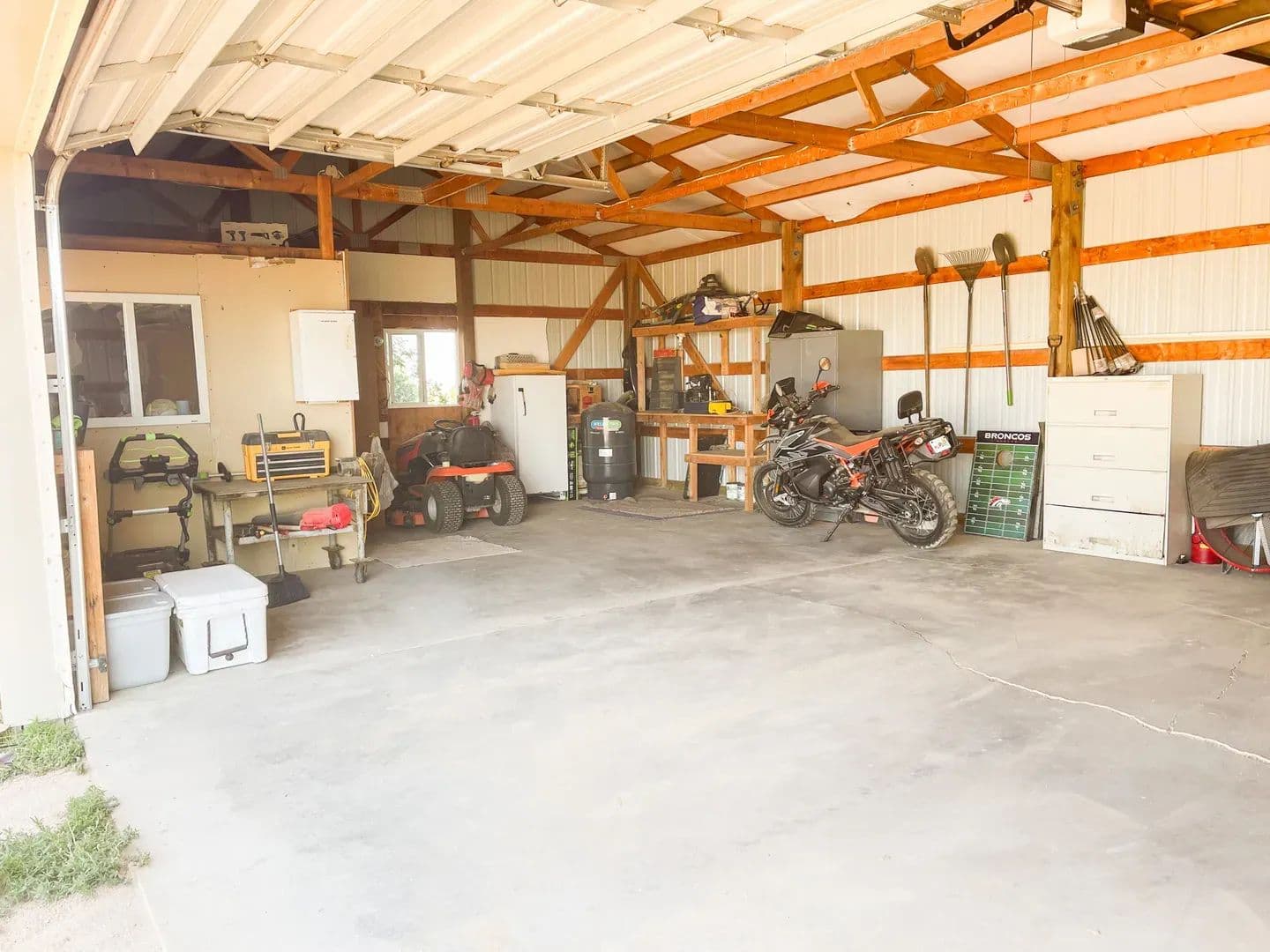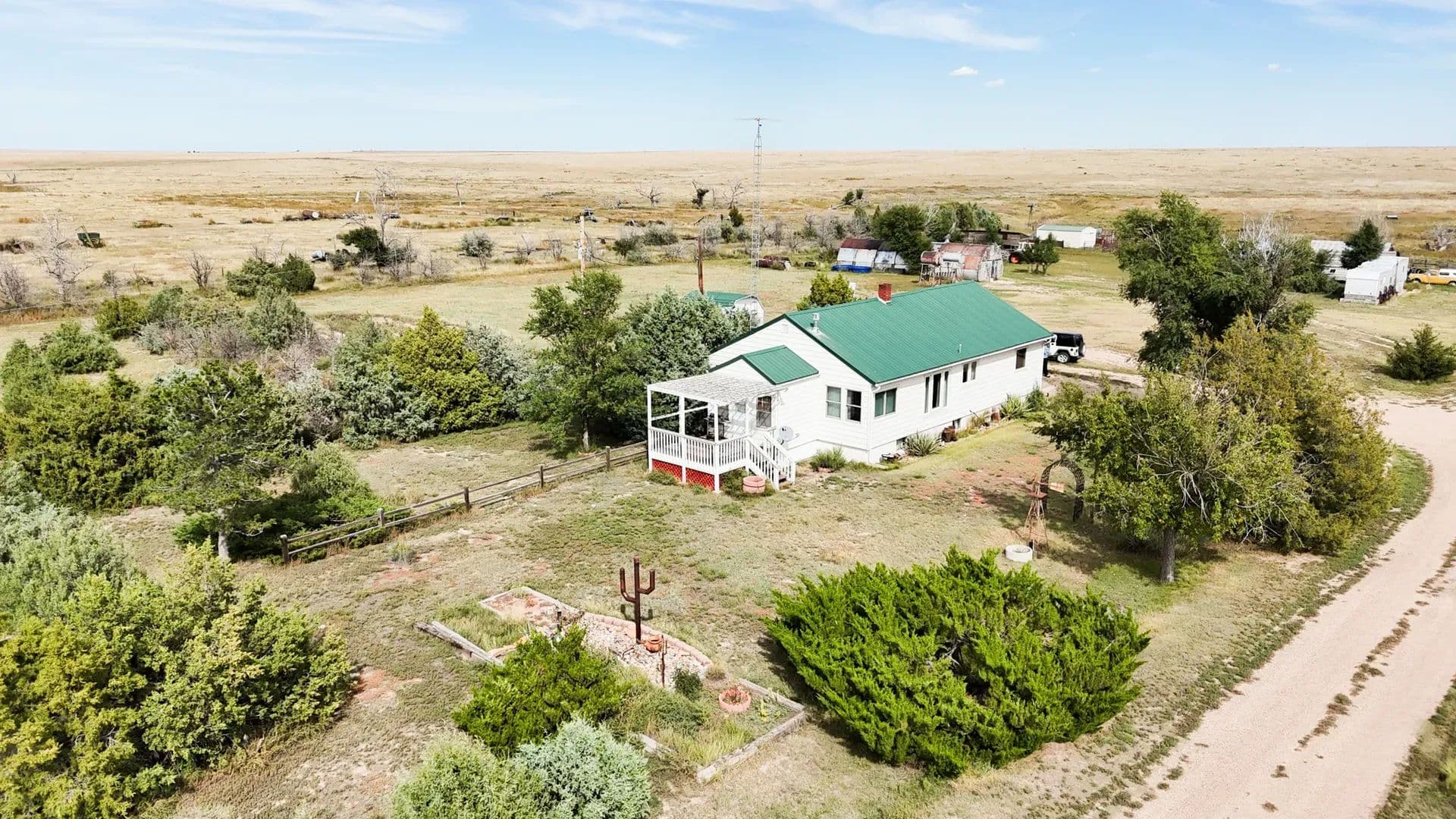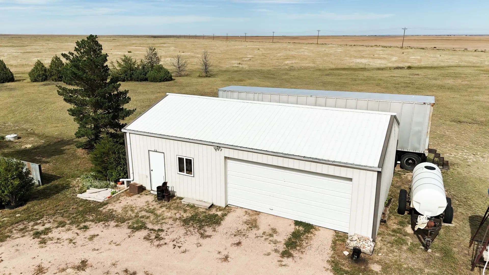 Main Residence: Built in 1995, this home totals 2,600 sq ft with a finished basement, 3 bedrooms, and 2 baths. It has a metal roof, Andersen window/door upgrades (2019), propane forced air heat, wood stove, and a 2,400-gallon cistern with a submersible pump in addition to ranch well access. The yard features mature landscaping and trees. Outbuildings include a 30′ x 40′ garage, garden shed, and two small corrugated metal animal shelters.