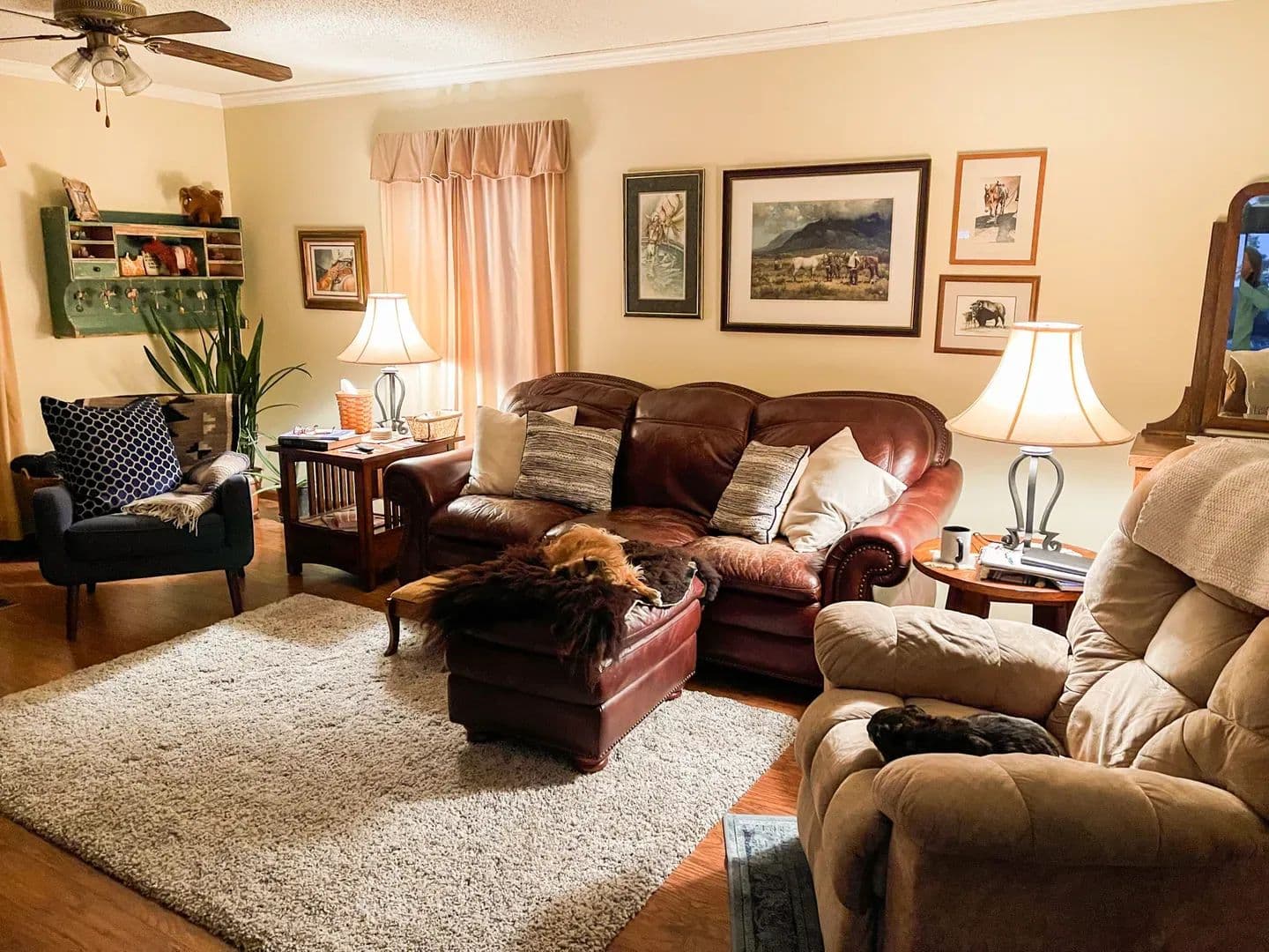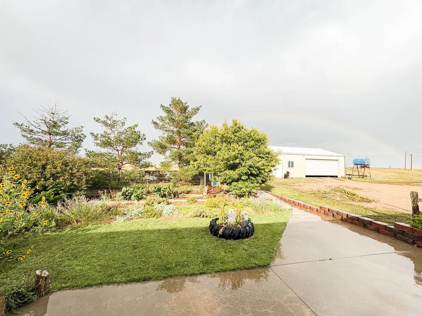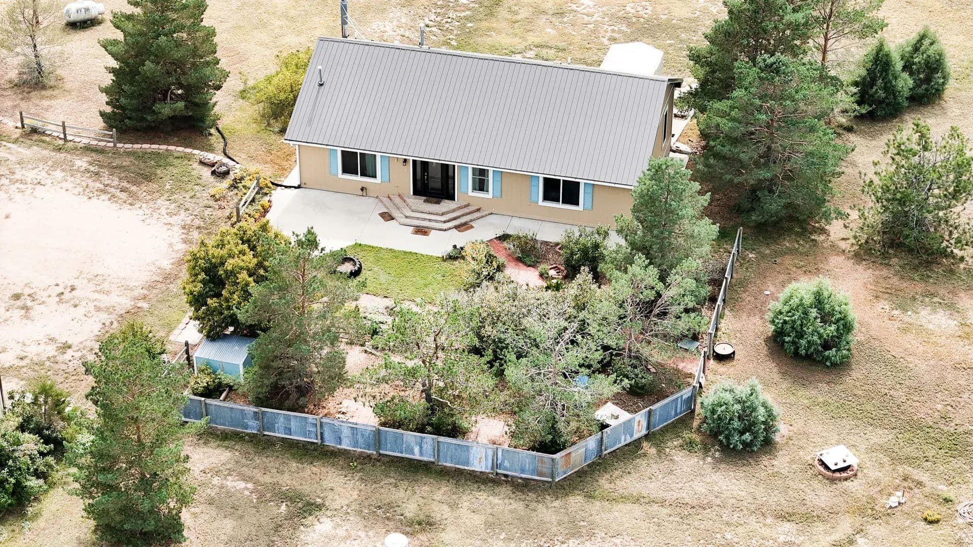 Main Residence: Built in 1995, this home totals 2,600 sq ft with a finished basement, 3 bedrooms, and 2 baths. It has a metal roof, Andersen window/door upgrades (2019), propane forced air heat, wood stove, and a 2,400-gallon cistern with a submersible pump in addition to ranch well access. The yard features mature landscaping and trees. Outbuildings include a 30′ x 40′ garage, garden shed, and two small corrugated metal animal shelters.