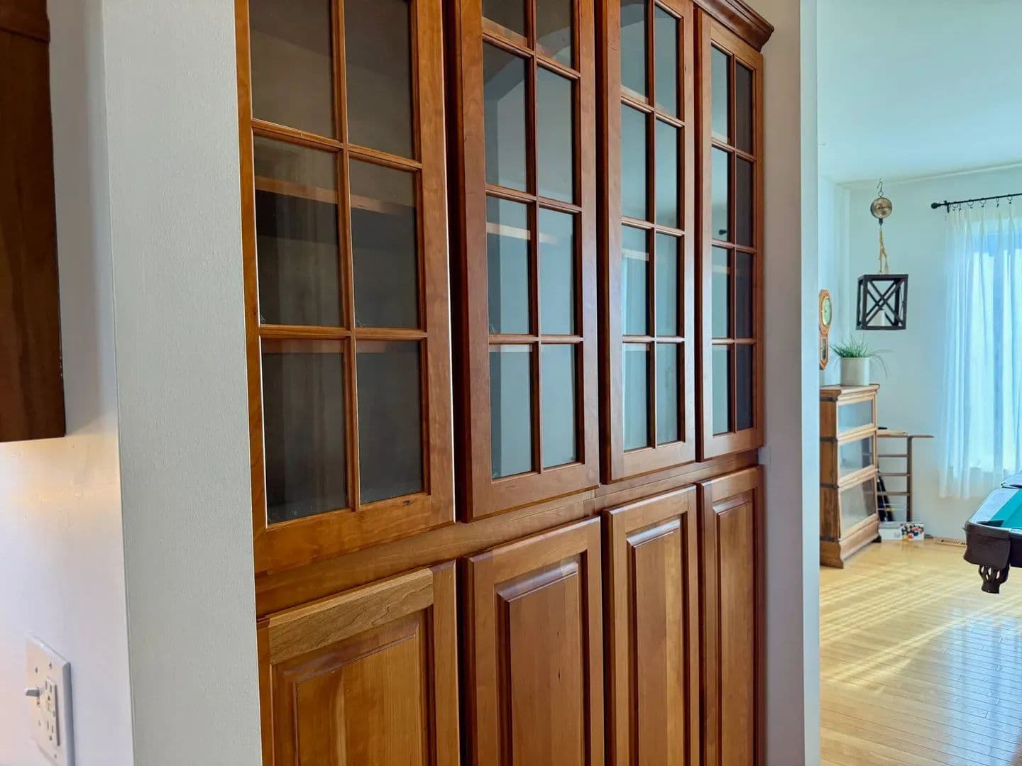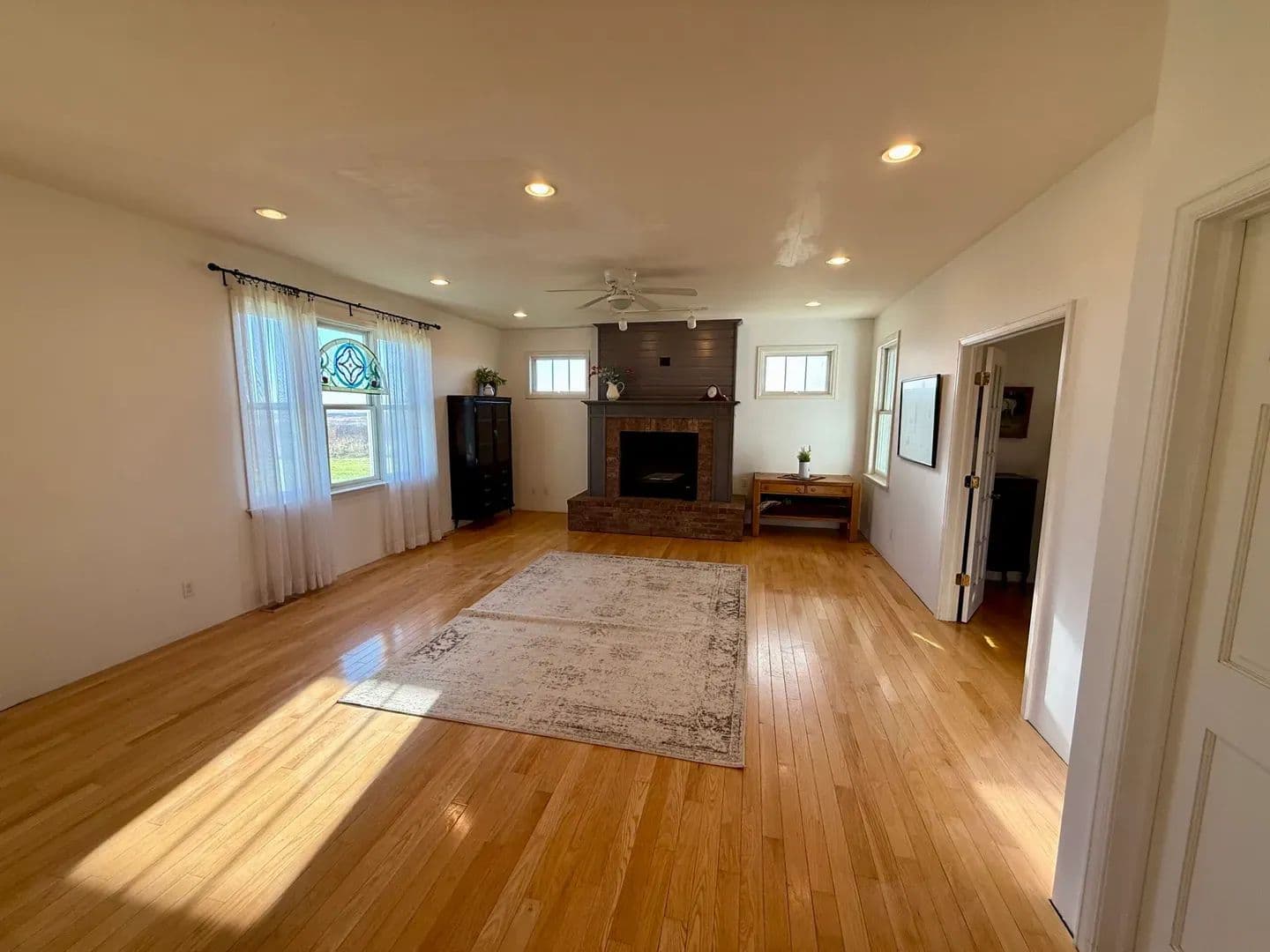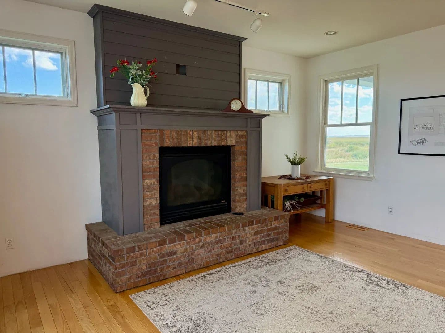 The living room is equally impressive, anchored by a large fireplace and enhanced by soaring ceilings that add a sense of grandeur. Throughout the home, you’ll find beautiful hardwood flooring and thoughtful custom touches that reflect quality craftsmanship.