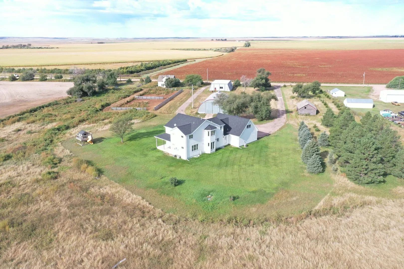 Just 5 minutes from Imperial, NE, this stunning 32± acre property offers peaceful country living with a custom 6-bed, 3.5-bath home built in 2003. Enjoy spacious living, two large quonset buildings for storage or projects, and breathtaking views of the Nebraska plains. A perfect blend of comfort, space, and rural charm—ideal for families, hobbyists, or anyone seeking wide-open skies.