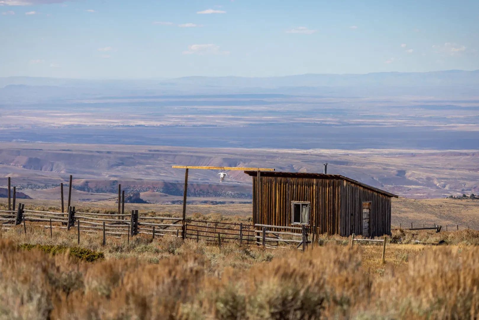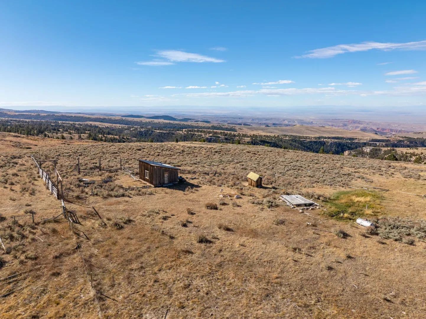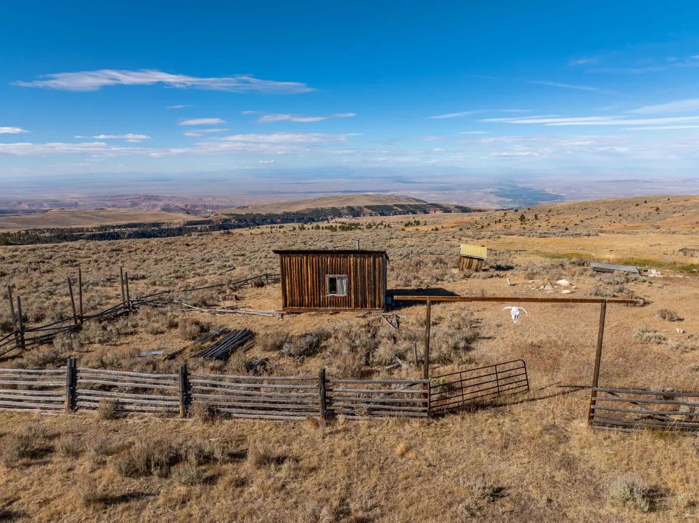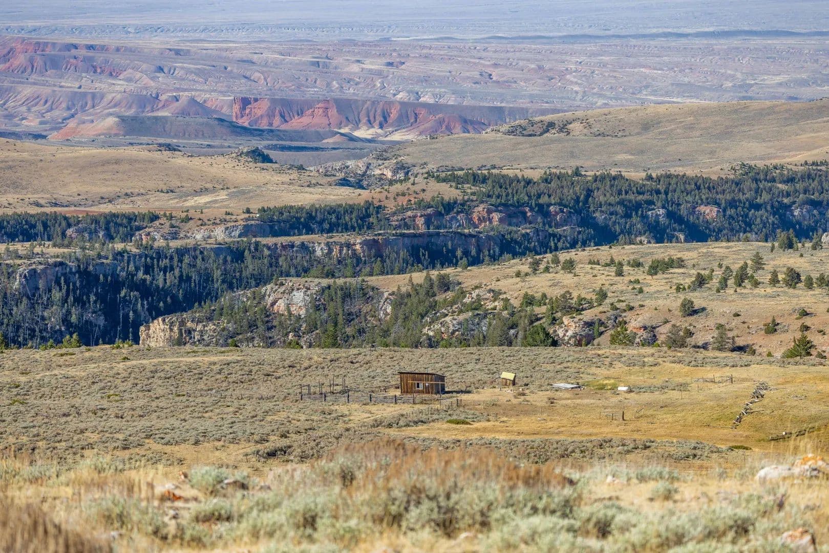 A historic log cabin with 100 mile views to the west overlooks Shell Valley.. Excellent lbuilding site.