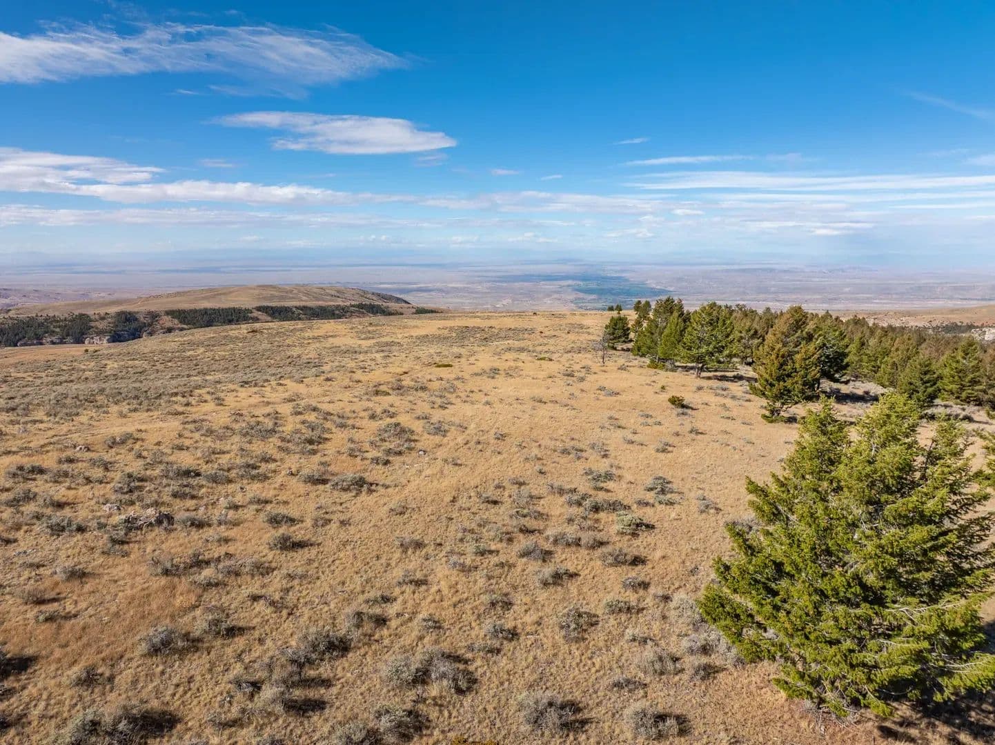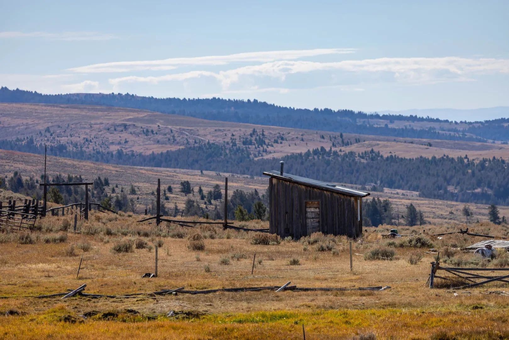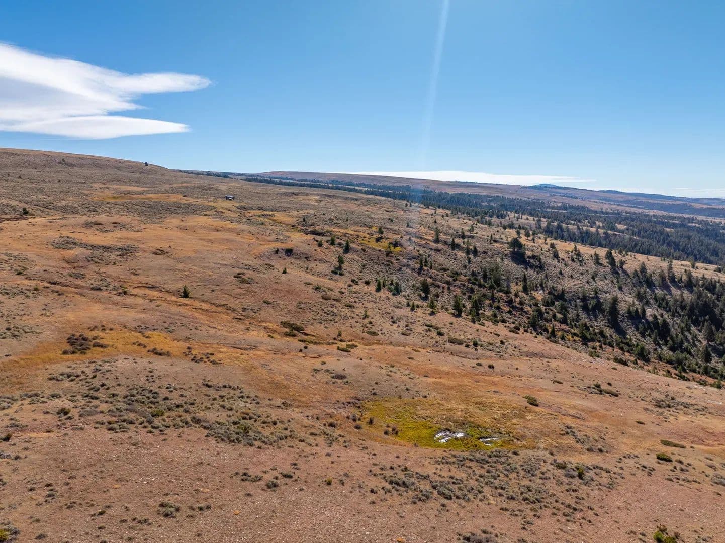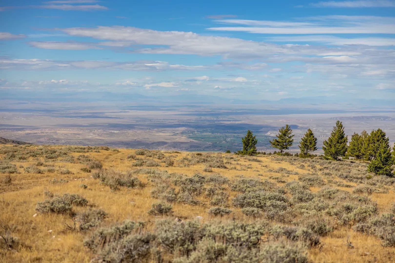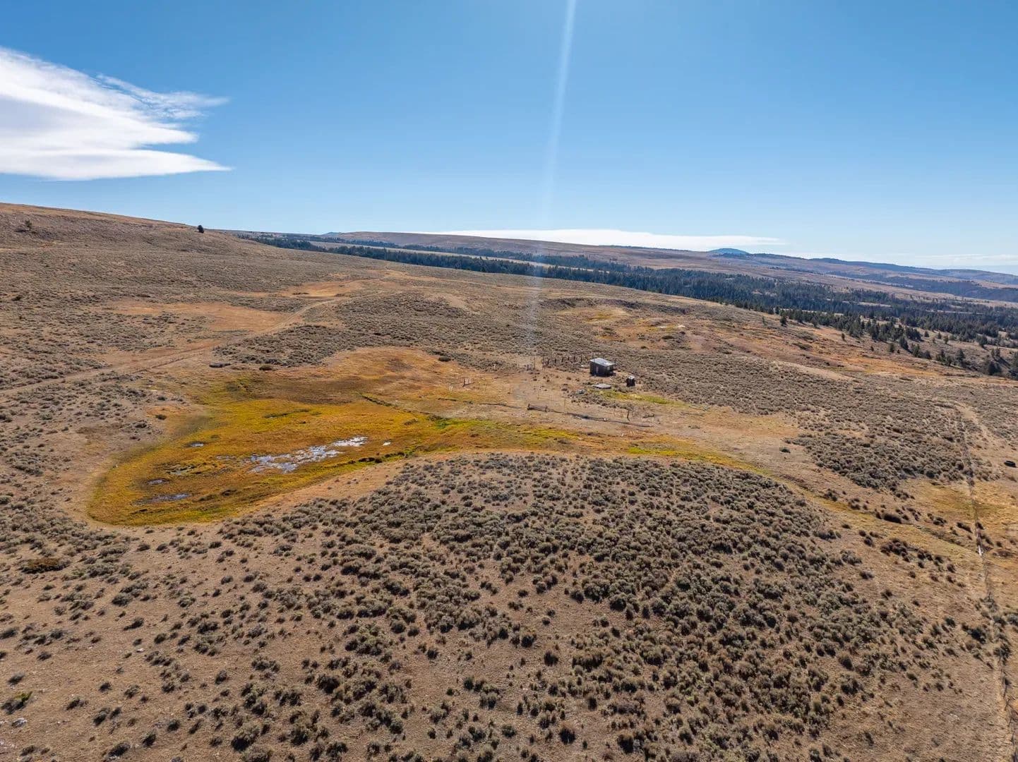 A historic log cabin with 100 mile views to the west overlooks Shell Valley.. Excellent lbuilding site.