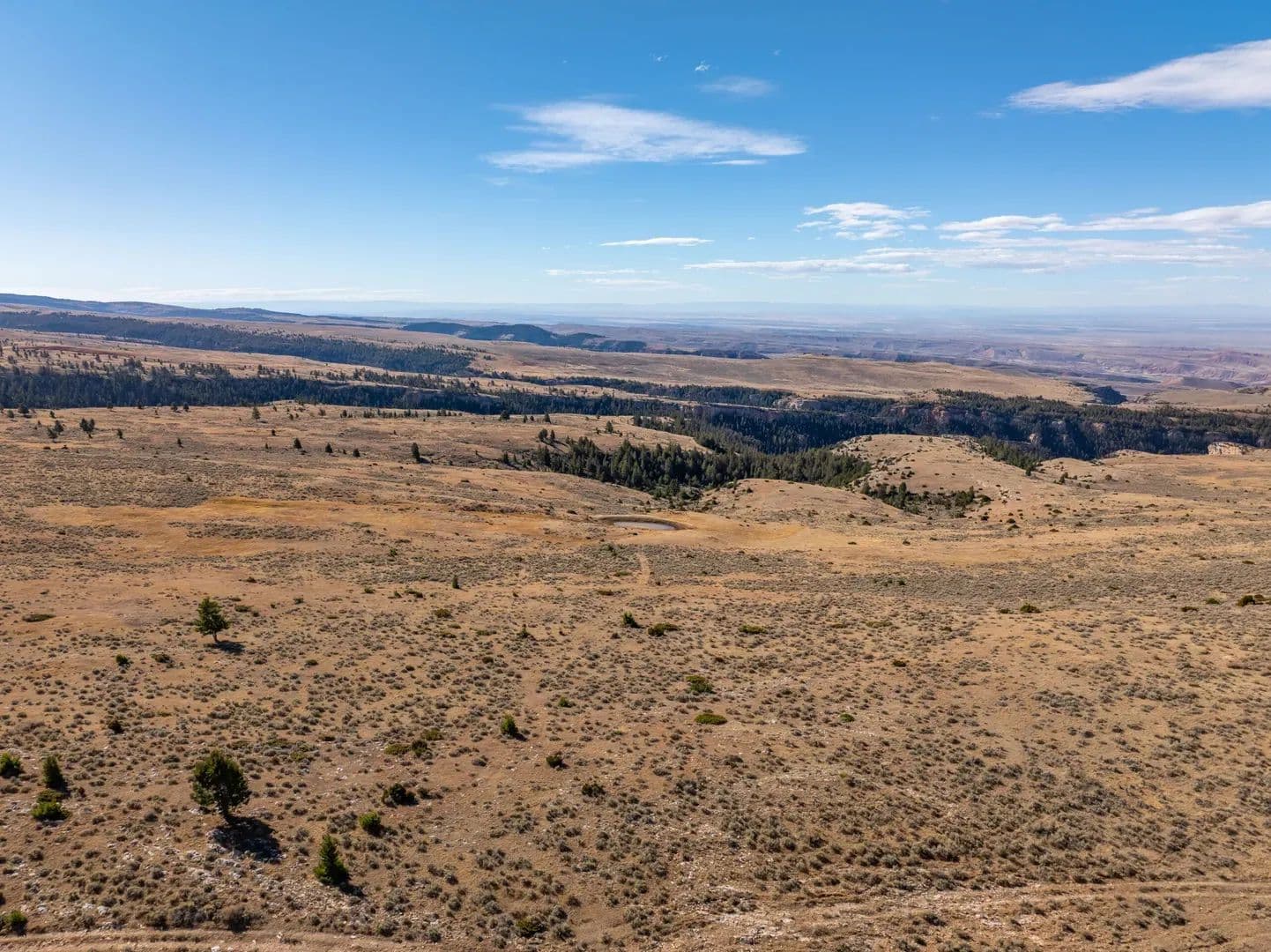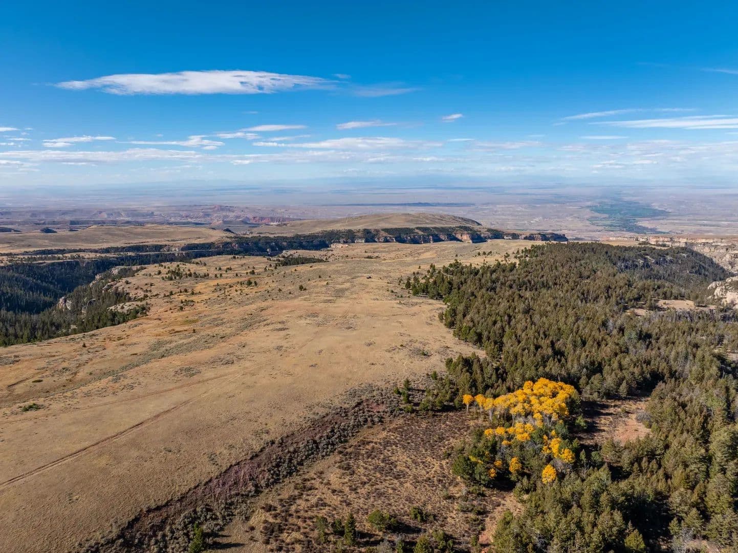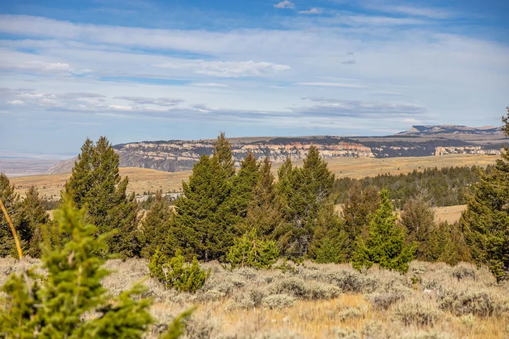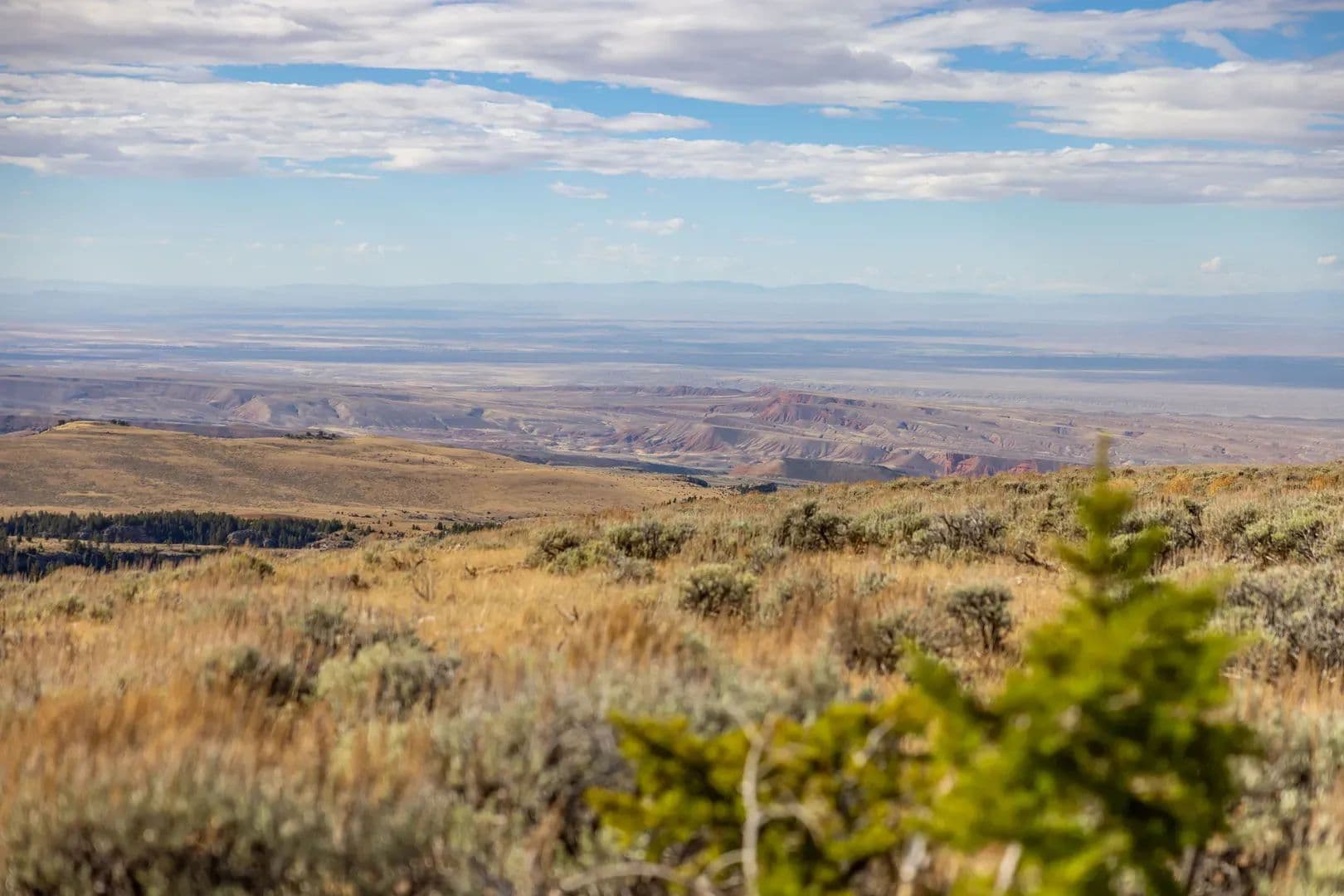 A historic log cabin with 100 mile views to the west overlooks Shell Valley.. Excellent lbuilding site.