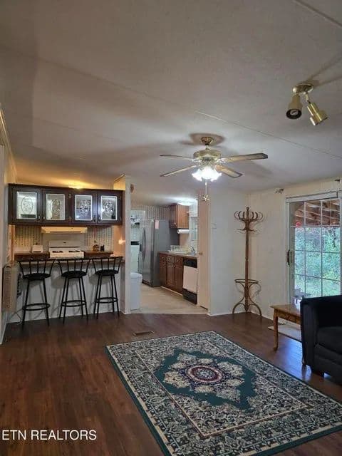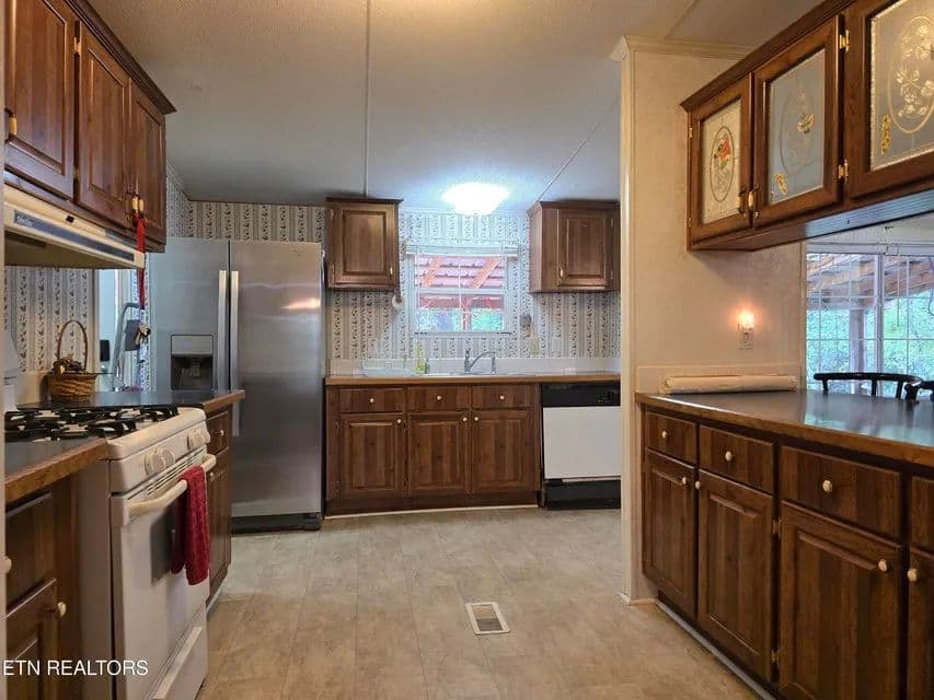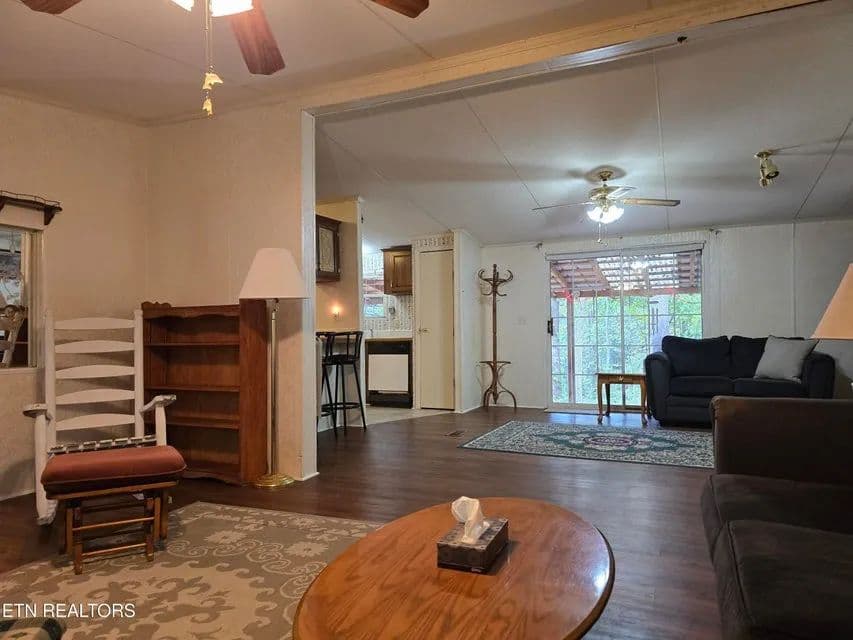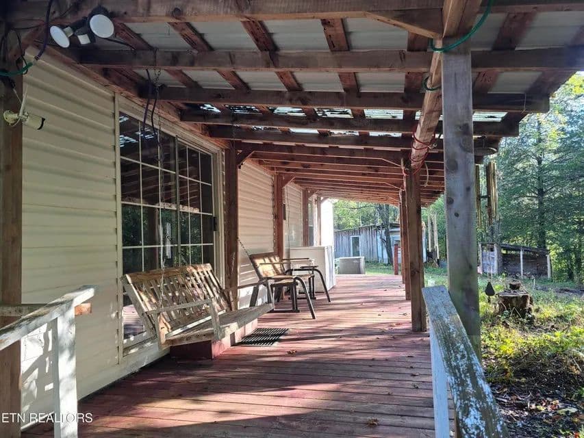 The 92 ACRES this home is on is exceptional property and constitutes the greater part of the value. THE HOME is very nice and delivers a spacious, modest, feeling for easy living, with enough of everything that is needed. The 2100 sq.ft 4bd/2bth home has a good floor plan. The living room, family room, kitchen, & dining room are all separated, but flow easily together with wide openings. You'll see by the pictures how this is. The living & family rooms cover the whole width of the home, more or less in its center. The floor plan is split. The main bdrm and its bath, with a garden tub area & separate shower, are large and take up one end of the house. The other bedrooms and a full-sized bath with a tub/shower are on the other end. Entry is through a large, covered front porch. Another covered, screened porch is very private at the back. This is an older home in good condition that is set on a concrete block foundation over a crawl space. It is served by a well, electricity, and propane gas. Personal touches can be added over time. The central air conditioning & the refrigerator/freezer are both nearly new, and there is a nice washer & dryer in the laundry room. The property is furnished. Most everything in the home will stay. THE YARD surrounding the homestead is long and wide. It is fairly level, partially fenced, and has several out buildings, including a big barn-like structure. Tucked away in the woods is an additional older double-wide. Its yard needs tending, but the trailer itself is very decent inside. It shouldn't take much to shape it up for living, but it is without water now and has been used for storage. The house well could be shared, or water might be piped in from a spring. The setting for the whole homestead area is quiet, and very private. Beautiful mountain views could be opened even more to you without giving up its hidden serenity. THE LAND This 92 acres is a great piece of very unique real estate. A driveway leads down from the road at the homestead through the woods that line it on both sides to a massive creek that runs through the property & along the boundary. The creek is truly beautiful. It can be crossed by AWD or 4WD without a bridge. A whole new world is opened driving over the creek across level shoals and up a slightly inclined driveway to a surprising, great big hay field under full sun. It is a grand rotunda of sky over an expansive field. To the back of the field is a tremendous, wooded mountain, perfect for hiking, hunting, & camping. It rises from the creek and from the back of the field to the very top of the ridge. The large field offers room for gardens, livestock and/or horses, or for whatever home you might like to build on the top of the grassy hill. Goats would love mountain areas. Within walking distance up the mountain from the hay field, there is lovely home site. It is an open meadow the woods with a stream that runs down along the side of it. A most amazing feature is where the big creek collides with a rock wall at the bluff that's at the edge on the bottom of the mountain. There, where it is forced to turn off, the creek has formed a large, amazing, natural pool. ...This property provides an opportunity to get quickly settled into your new adventure while enjoying the land in ways that are probably impossible to match. The potential for making it become all that you might design it to be is limitless. If you hope to own a rare-to-find, one-of-a-kind property that meets your immediate needs and provides for the plans you might be dreaming of, you will likely find it here. Just have your agent call us to arrange for a showing. The property and its contents are being sold ''As-Is''. The Buyer is welcome to have inspections under contract terms We will be happy to assist you if you do not have your own agent.