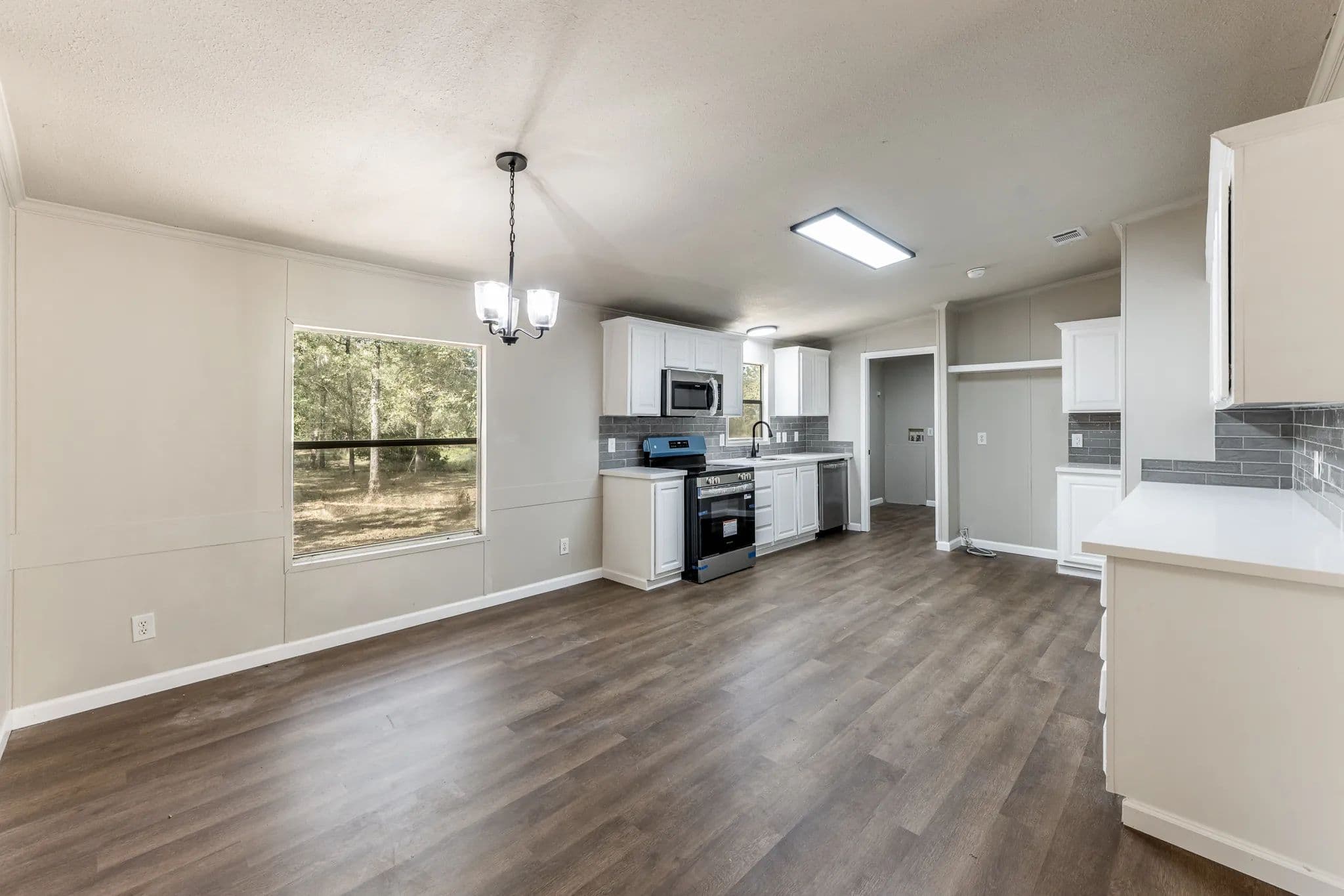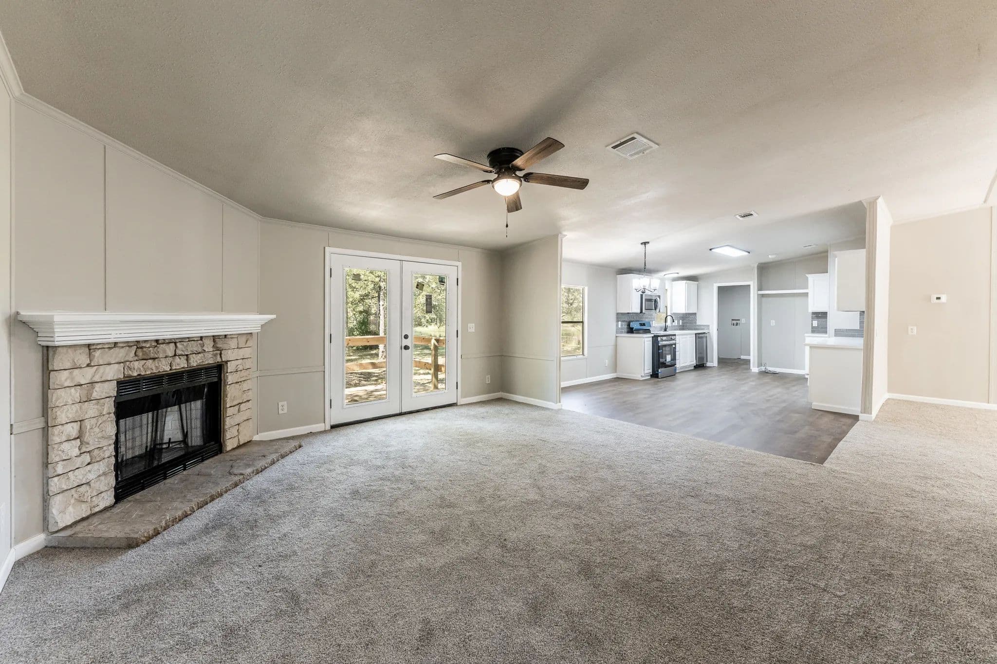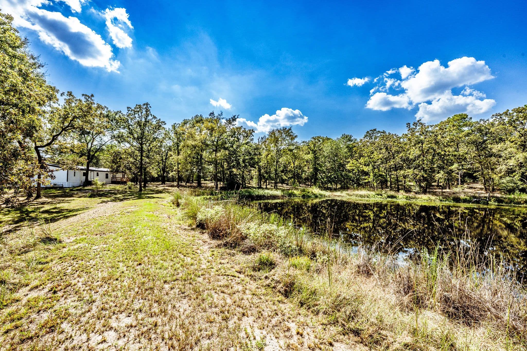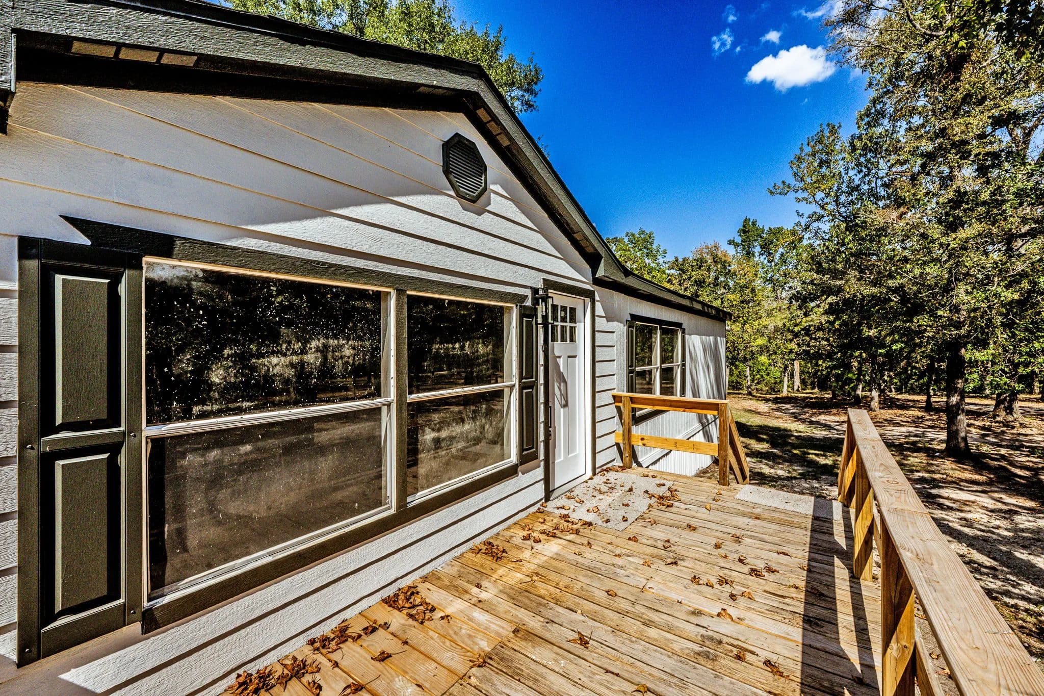 Discover peace and quiet in this fully updated mobile home nestled on 11.54 gorgeous acres in East Texas. Surrounded by mature hardwood trees and featuring a serene pond view from the backyard, this property offers the perfect blend of comfort and nature. Inside, the light and bright interior showcases a spacious, open floor plan with neutral tones and wood-look vinyl flooring for easy maintenance. The kitchen is a standout, featuring new appliances, a stylish tile backsplash, and a charming window over the sink that lets in natural light and brings the outdoors in. Fresh carpet, a cozy stone-surround fireplace, and elegant French doors leading to the backyard add to the home's inviting feel. Whether you're looking for a peaceful retreat, room to roam, or space to expand, this property delivers. Located just 10 minutes northeast of Huntsville, with convenient access to Highway 19 and I-45, this home offers country living with city access close by. Walker County is known for its scenic beauty—and this property is no exception.