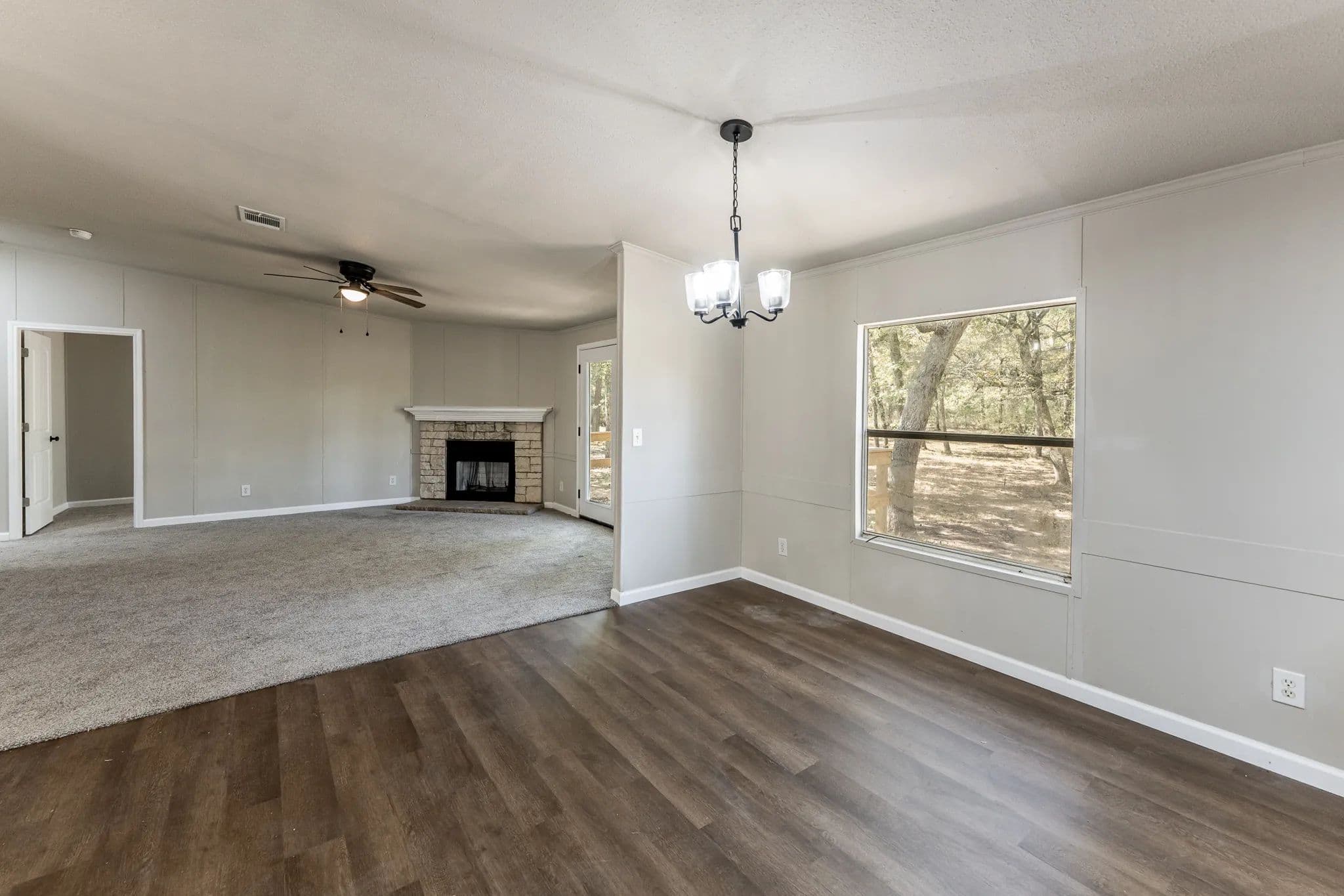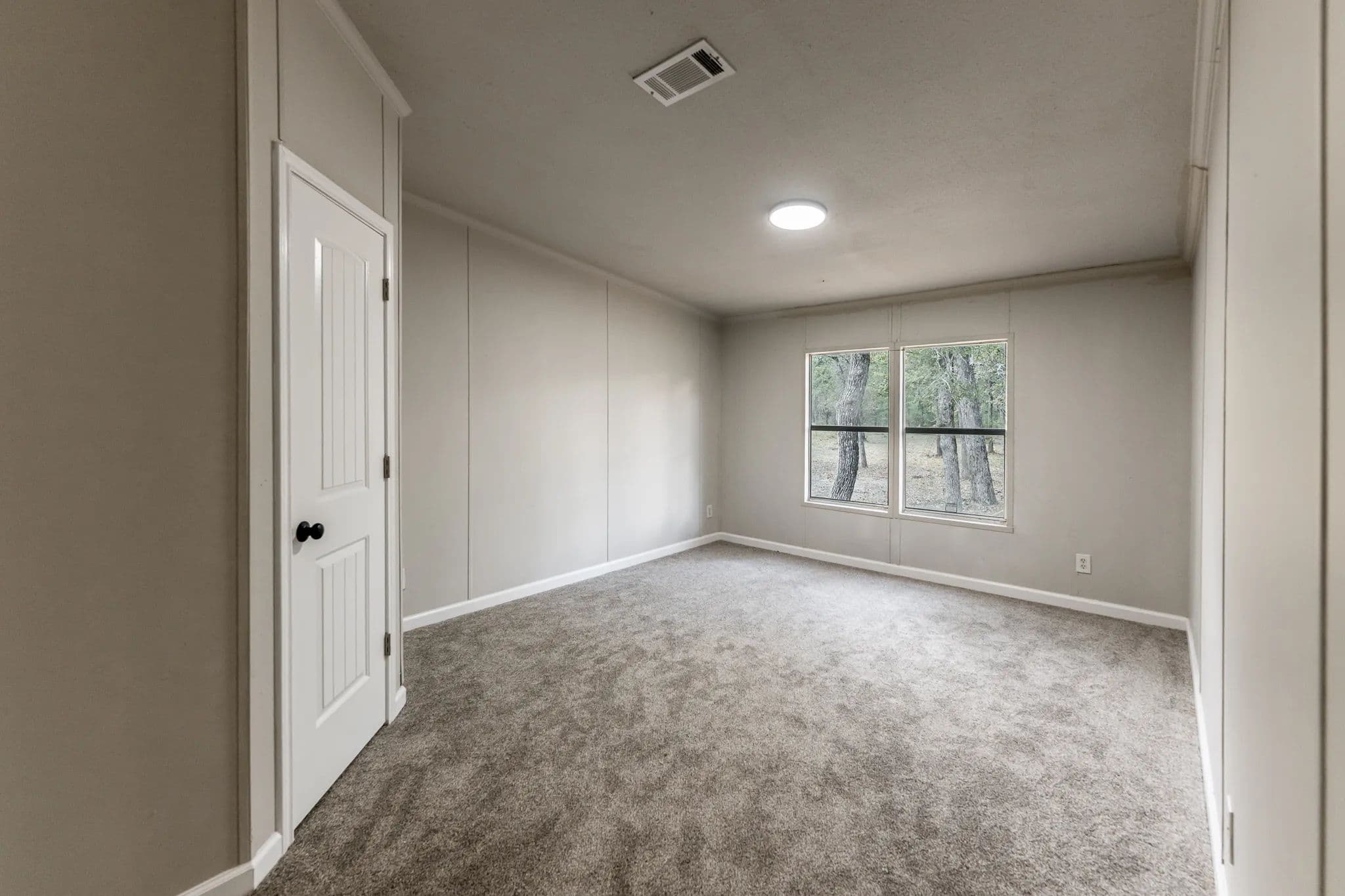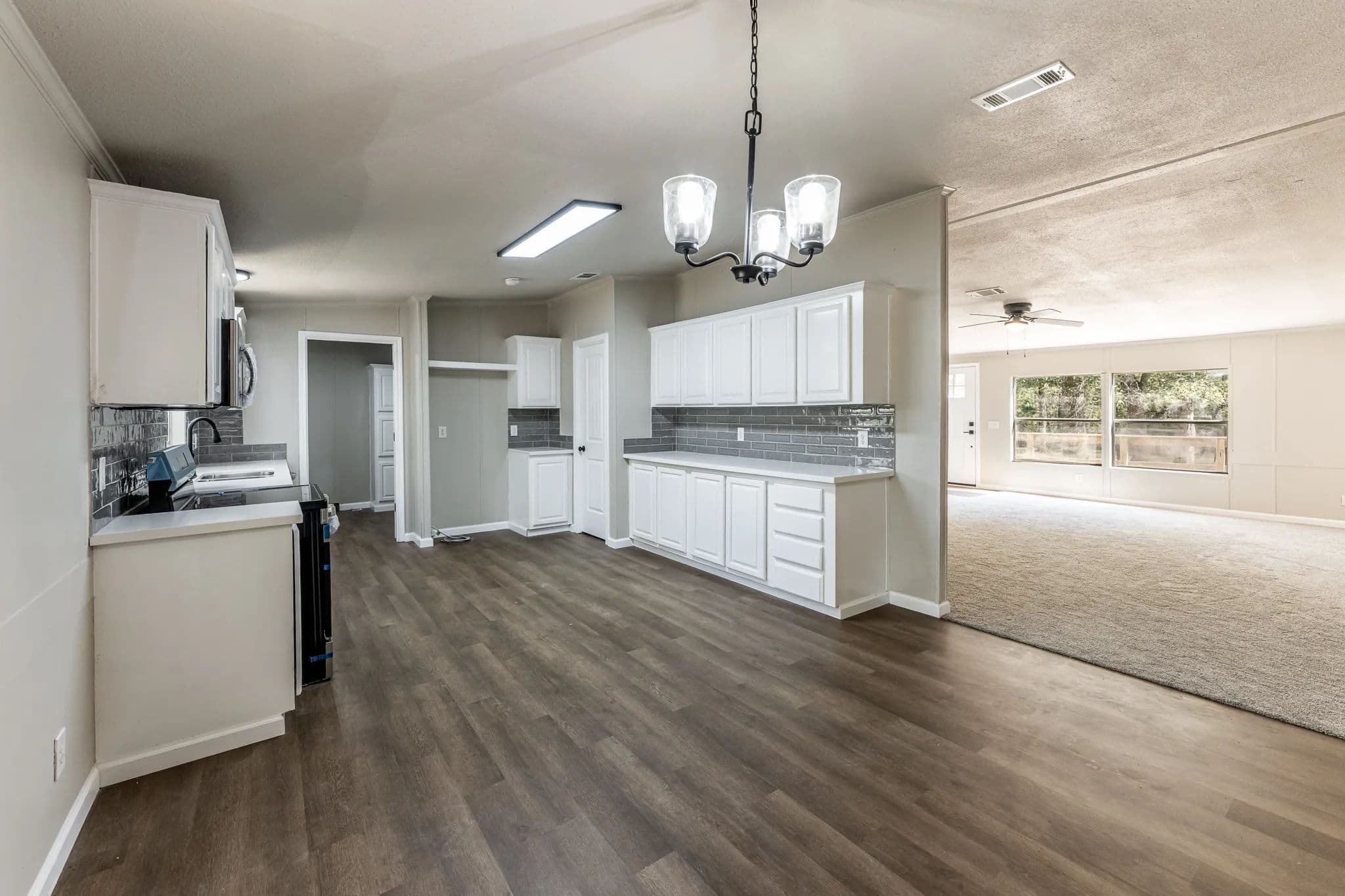 Discover peace and quiet in this fully updated mobile home nestled on 11.54 gorgeous acres in East Texas. Surrounded by mature hardwood trees and featuring a serene pond view from the backyard, this property offers the perfect blend of comfort and nature. Inside, the light and bright interior showcases a spacious, open floor plan with neutral tones and wood-look vinyl flooring for easy maintenance. The kitchen is a standout, featuring new appliances, a stylish tile backsplash, and a charming window over the sink that lets in natural light and brings the outdoors in. Fresh carpet, a cozy stone-surround fireplace, and elegant French doors leading to the backyard add to the home's inviting feel. Whether you're looking for a peaceful retreat, room to roam, or space to expand, this property delivers. Located just 10 minutes northeast of Huntsville, with convenient access to Highway 19 and I-45, this home offers country living with city access close by. Walker County is known for its scenic beauty—and this property is no exception.