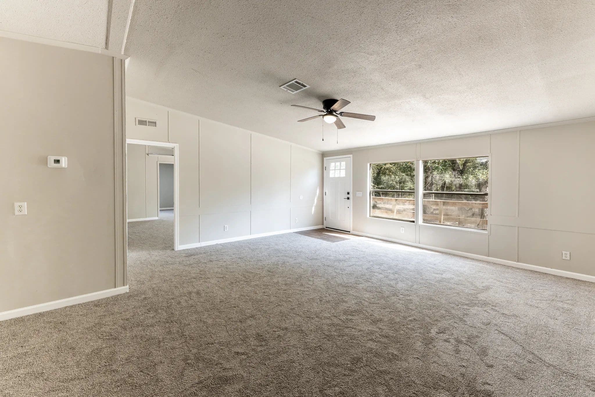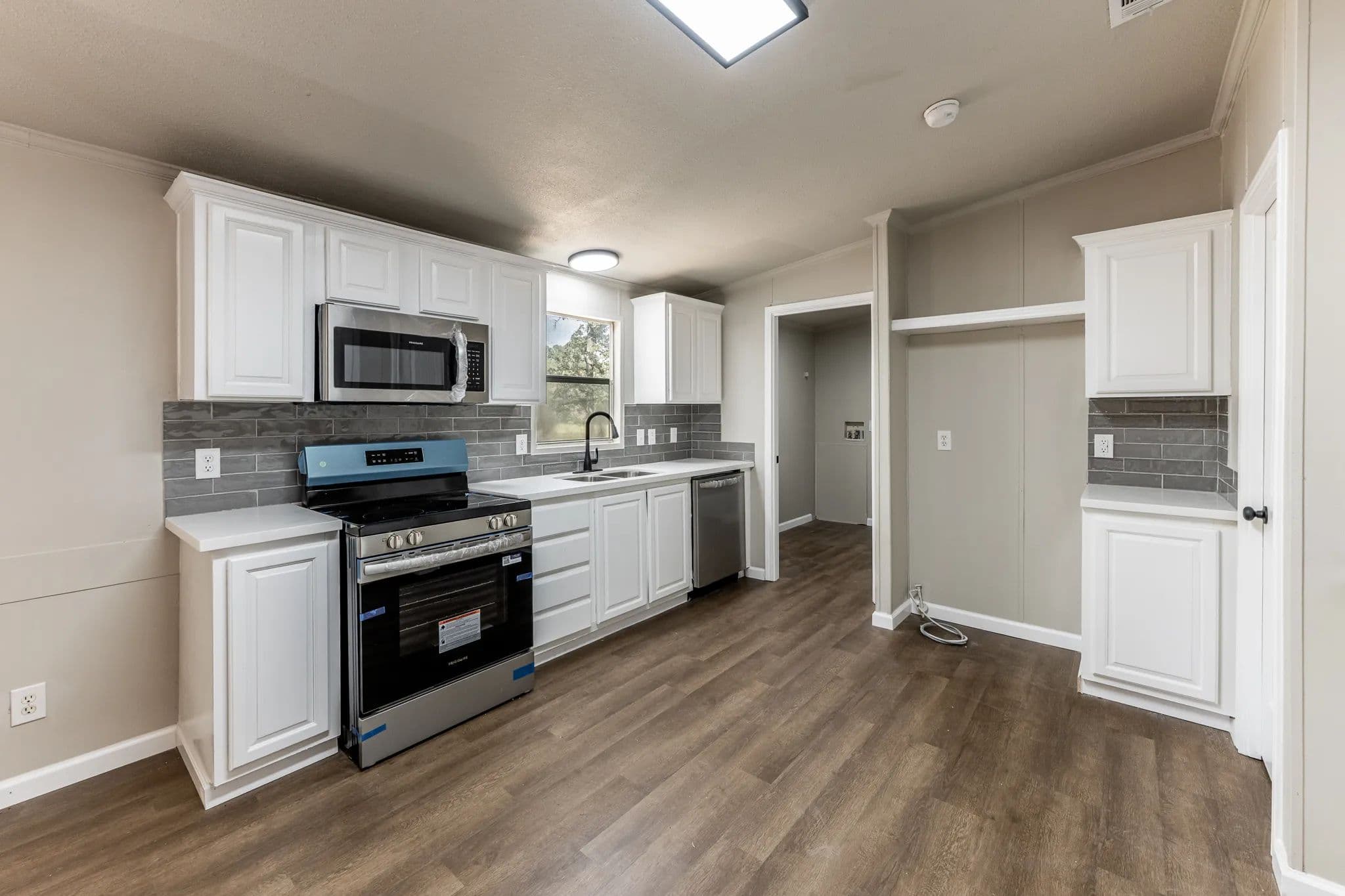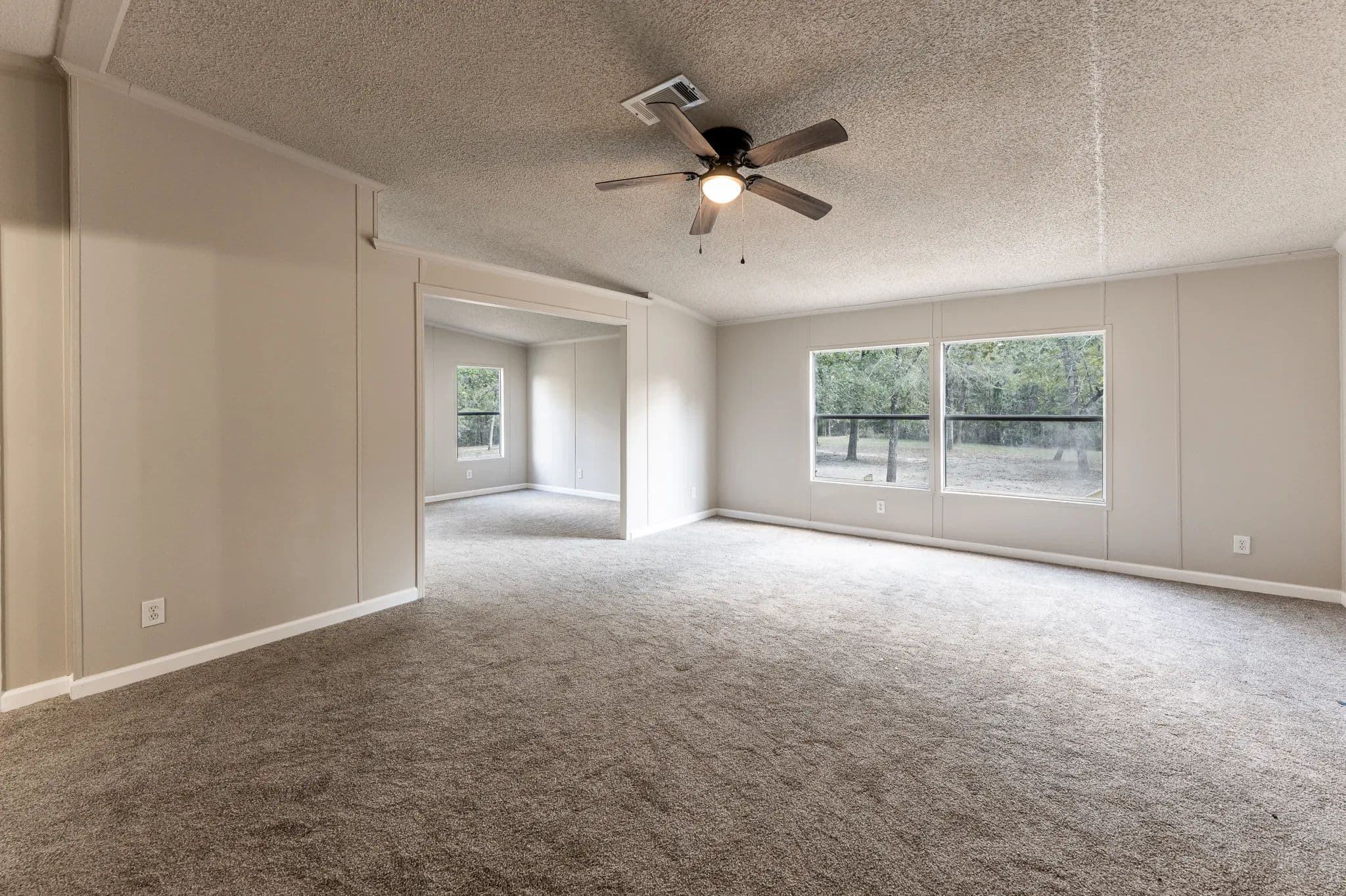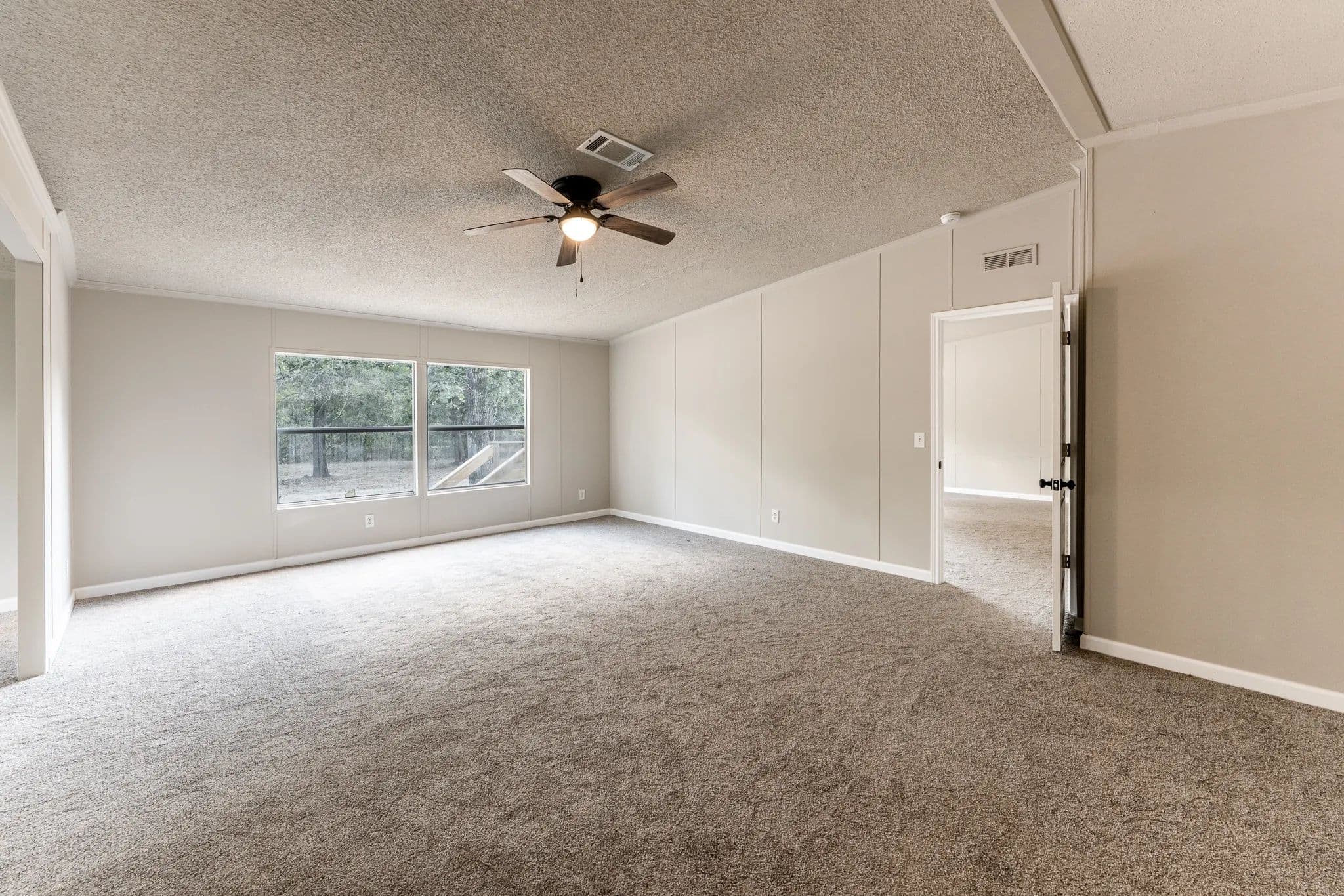 Discover peace and quiet in this fully updated mobile home nestled on 11.54 gorgeous acres in East Texas. Surrounded by mature hardwood trees and featuring a serene pond view from the backyard, this property offers the perfect blend of comfort and nature. Inside, the light and bright interior showcases a spacious, open floor plan with neutral tones and wood-look vinyl flooring for easy maintenance. The kitchen is a standout, featuring new appliances, a stylish tile backsplash, and a charming window over the sink that lets in natural light and brings the outdoors in. Fresh carpet, a cozy stone-surround fireplace, and elegant French doors leading to the backyard add to the home's inviting feel. Whether you're looking for a peaceful retreat, room to roam, or space to expand, this property delivers. Located just 10 minutes northeast of Huntsville, with convenient access to Highway 19 and I-45, this home offers country living with city access close by. Walker County is known for its scenic beauty—and this property is no exception.