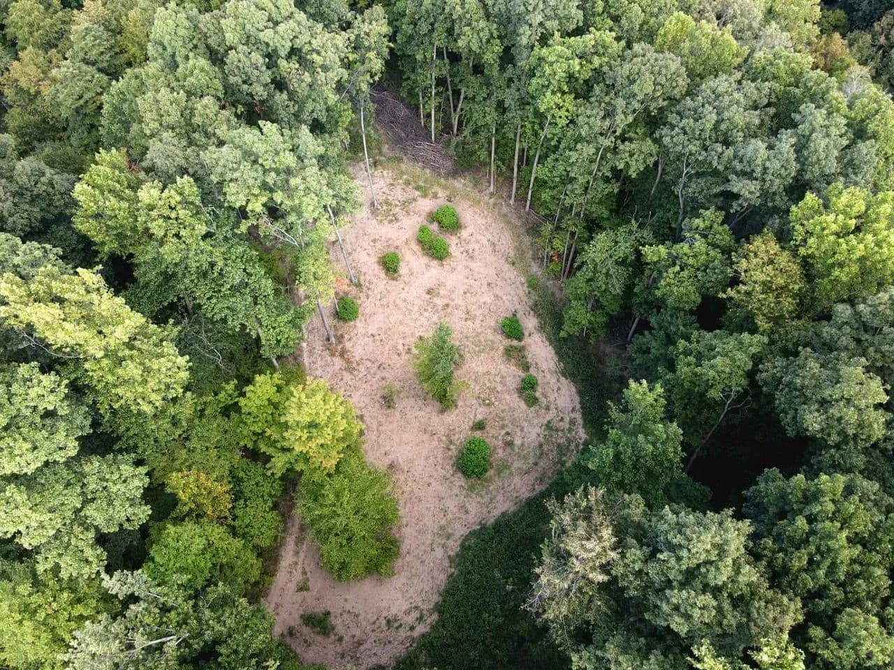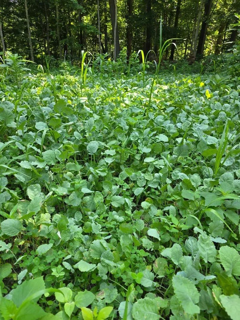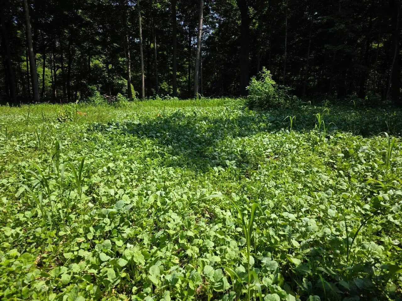 Established food plots and fruit trees planted specifically for deer — a turnkey setup for hunters or wildlife lovers