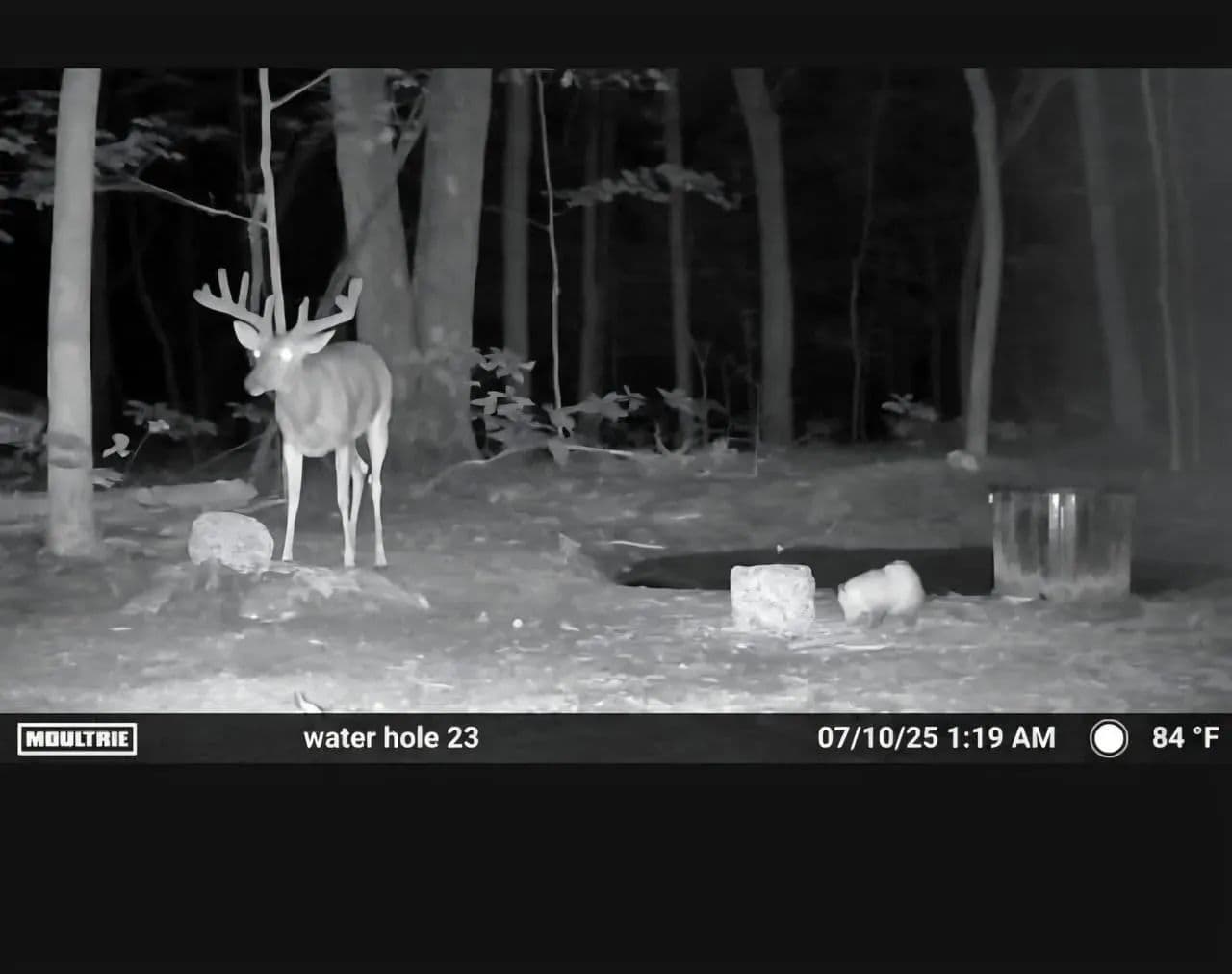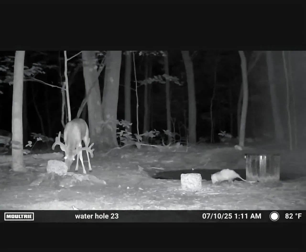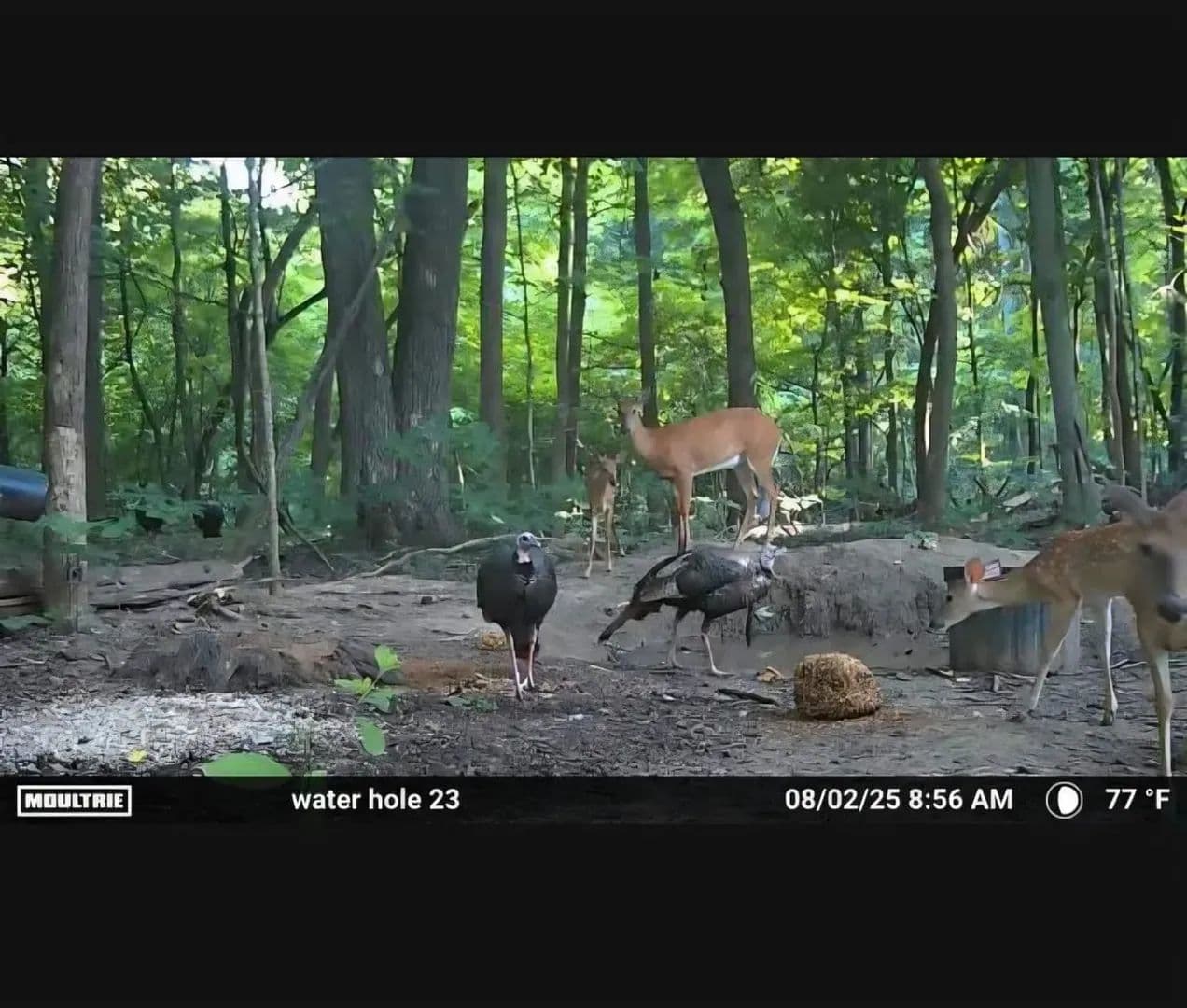 Established food plots and fruit trees planted specifically for deer — a turnkey setup for hunters or wildlife lovers